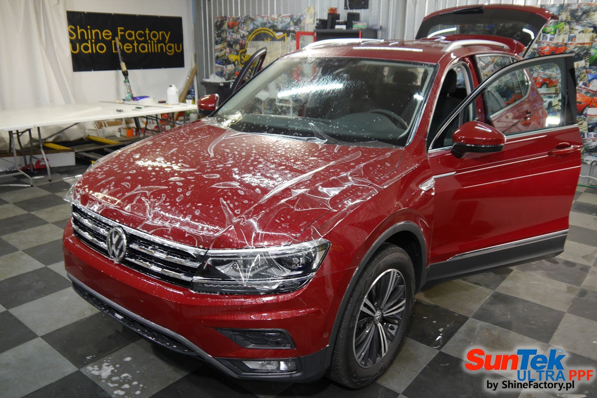 Aplikacja grubych bezbarwnych folii ochronnych staje się powoli standardem w idealnym zabezpieczeniu nowego auta. Tym razem mieliśmy przyjemność zająć się VW Tiguan z praktycznie zerowym przebiegiem, w celu możliwie najlepszego w tej chwili zabezpieczenia lakieru czyli aplikacji bezbarwnych folii ochronnych.