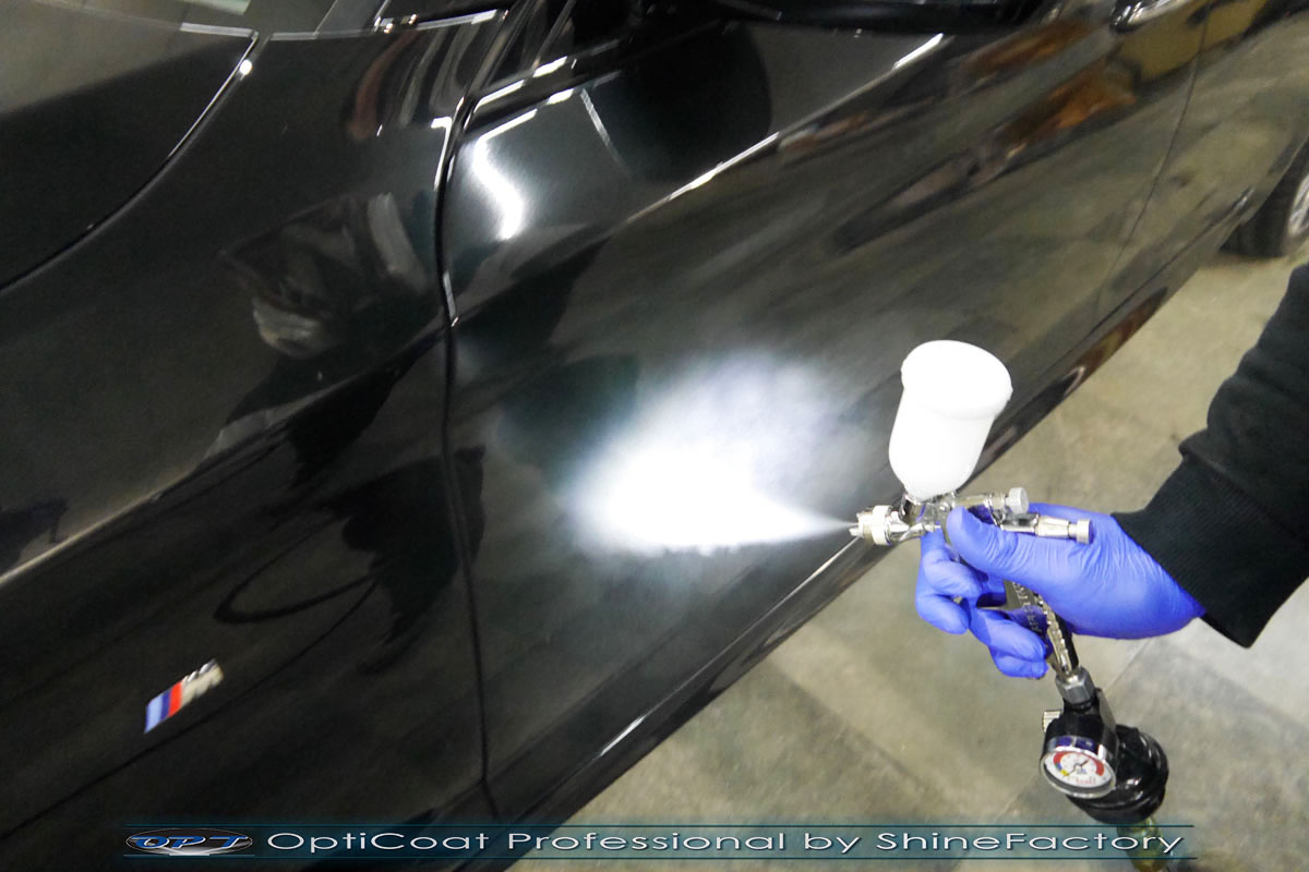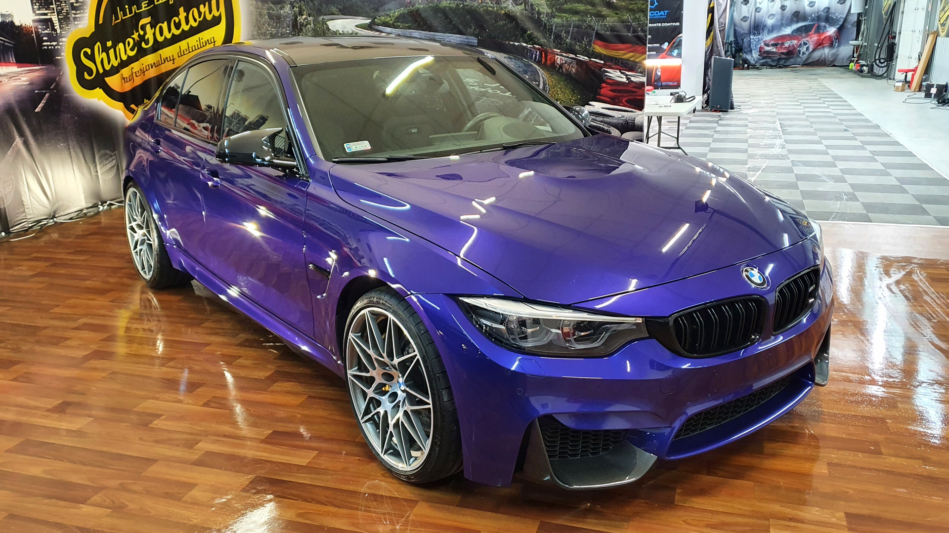 Witamy. Tym razem chcemy przedstawić fotorelację z prac nad BMW M3, z już większym przebiegiem, które trafiło do nas w celu odświeżenia oraz zabezpieczenia lakieru pakietem powłok ceramicznych. Prace nad nadwoziem rozpoczęliśmy od dokładnego oczyszczenia i odtłuszczenia, następnie lakier przeszedł korektę w celu usunięcia zmatowień lakieru oraz swirli. Po tych czynnościach przeszliśmy do aplikacji powłok na wszelkie elementy jak lakier, szyby (bezapelacyjnie najlepszą powłoką Gtechniq G1), felgi (pancerny CQ DLUX), detale itp itd. Najważniejsze, na sam lakier zaaplikowaliśmy maksymalnie grubą natryskową warstwę kompozytu ceramicznego (100% powłoki na aucie) opartego na SiC- OptiCoat Professional połączoną z powłoką GlossCoat, która zapewni ochronę, zminimalizowane brudzenie oraz ułatwione do maksimum mycie. Nie zapomnieliśmy także zająć się całym wnętrzem, materiały zostały wyprane, skóry i plastiki wyczyszczone i zaimpregnowane, dzięki temu wygląda ponownie jak nowe. Dzięki detailingowi oraz finalnemu pokryciu ceramiką auto odmieniło się nie do poznania oraz przez długi czas będzie cieszyło oko idealną prezentacją lakieru i maksymalnym blaskiem. Zapraszamy do szerokiej fotorelacji i zdjęć efektu końcowego!