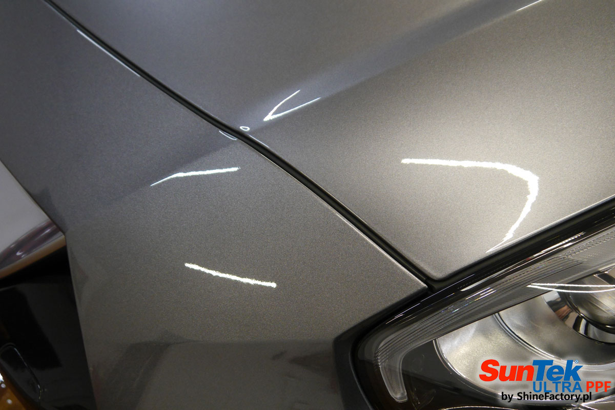 Oklejone zostało praktycznie całe auto w celu ochrony przed wszelkimi uszkodzeniami jak np. odpryski od kamieni, piaskowanie od żwiru drogowego, mocniejszymi rysami, obiciami czy nawet drobnymi obcierkami parkingowymi.