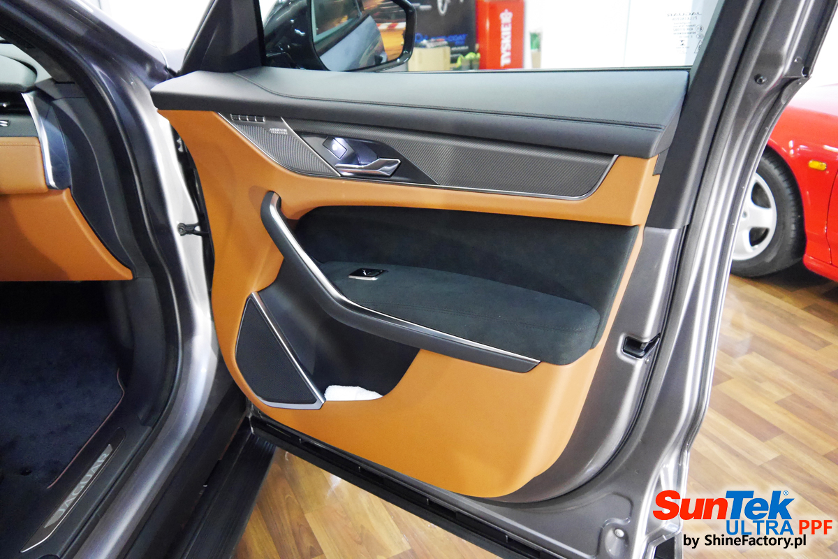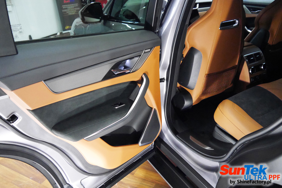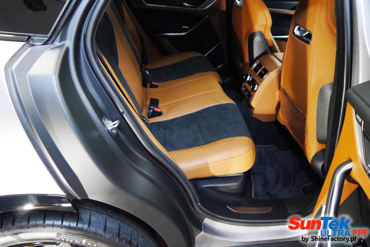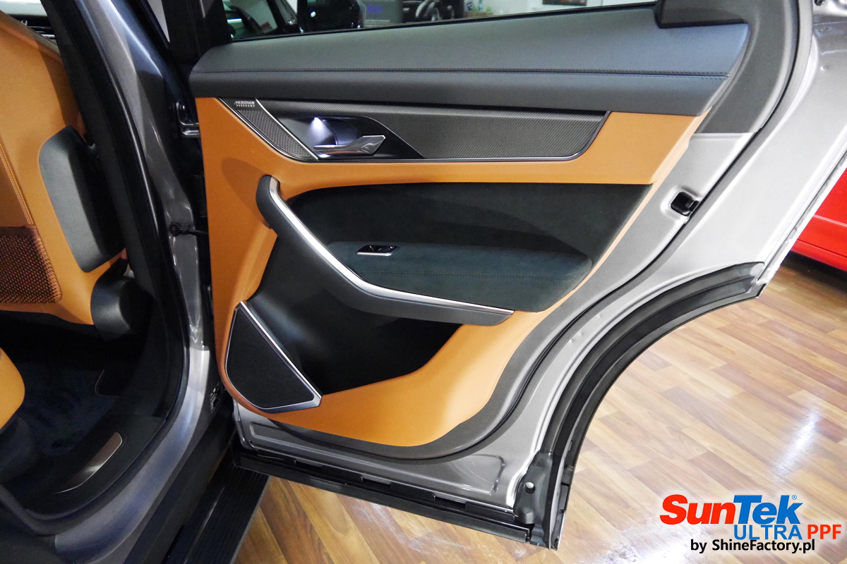 Oklejone zostało praktycznie całe auto w celu ochrony przed wszelkimi uszkodzeniami jak np. odpryski od kamieni, piaskowanie od żwiru drogowego, mocniejszymi rysami, obiciami czy nawet drobnymi obcierkami parkingowymi.