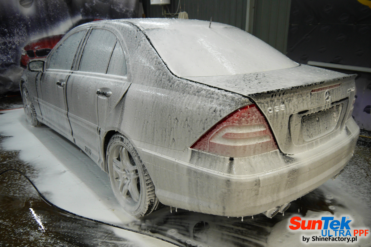 Zabezpieczenie frontów aut bezbarwnymi foliami ochronnymi staje się powoli standardem, coraz częściej także zabezpieczane w ten sposób są auta w całości co daje do tego czasu nieosiągalne perfekcyjne zabezpieczenie i efekt wizualny. Tym razem mieliśmy przyjemność zająć się Mercedesem AMG C55 naszego stałego klienta. Decyzja wz. z zabezpieczeniem padła na bezkompromisowe połączanie znakomitych bezbarwnych folii ochronnych SunTek Ultra PPF z 10 letnią gwarancją oraz pakietu powłok ceramicznych. Standardowo prace zaczęliśmy od bardzo dokładnego oczyszczenia nadwozia z wszelkich naleciałości. Kolejno zajęliśmy się inspekcją lakieru i skorygowaniem oraz doprowadzeniem go do możliwej perfekcji. Po przygotowaniu przeszliśmy do zabezpieczenia każdego cm auta, najpierw aplikując bezbarwne folie ochronne. Folie zazwyczaj aplikuje się na najbardziej narażone el. auta jak przód, tym razem zdecydowaliśmy się praktycznie całe auto pokryć najlepszymi na świecie regeneracyjnymi foliami SunTek Ultra aby uzyskać 100% ochronę lakieru, który będzie całkowicie izolowany od środowiska zewnętrznego i nic nie będzie wstanie go uszkodzić. Po aplikacji folii przeszliśmy do zabezpieczania wszelkich el. auta powłokami, zaaplikowaliśmy pakiet powłok na całe auto, folie, szyby (Gtechniq G1), felgi (powłoka grafenowa), elementy nielakierowane, a także całe wnętrze wraz z zaimpregnowaniem delikatnych skór. Po kilkudziesięciu godzinach pracy Mercedes nabrał perfekcyjnego wyglądu, połysku oraz co najważniejsze najmocniejszej praktycznie pancernej ochrony na lata. Zapraszamy do szerokiej fotorelacji!