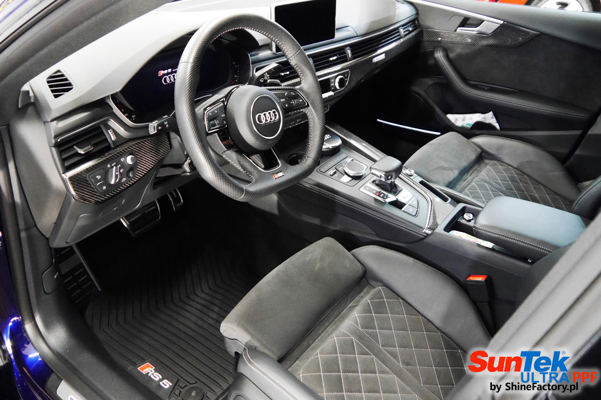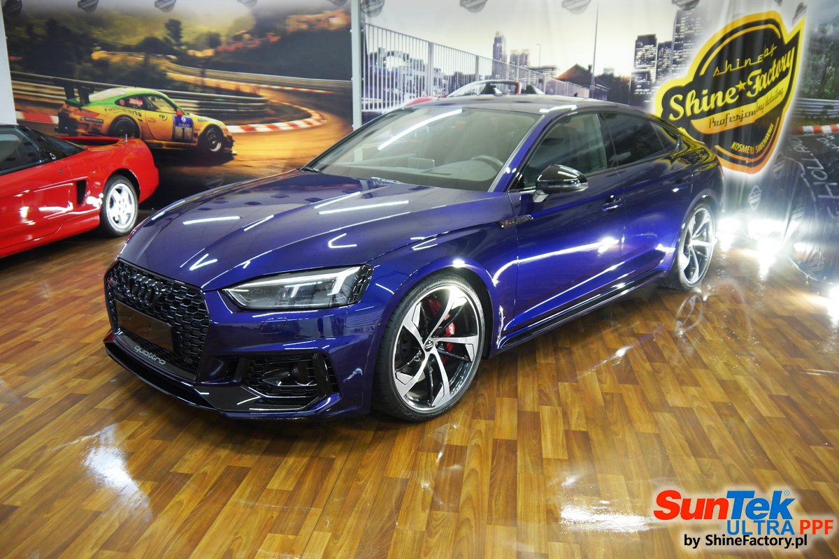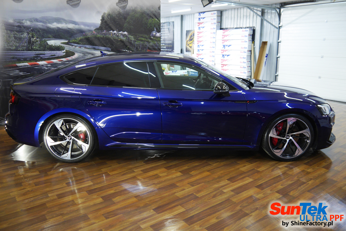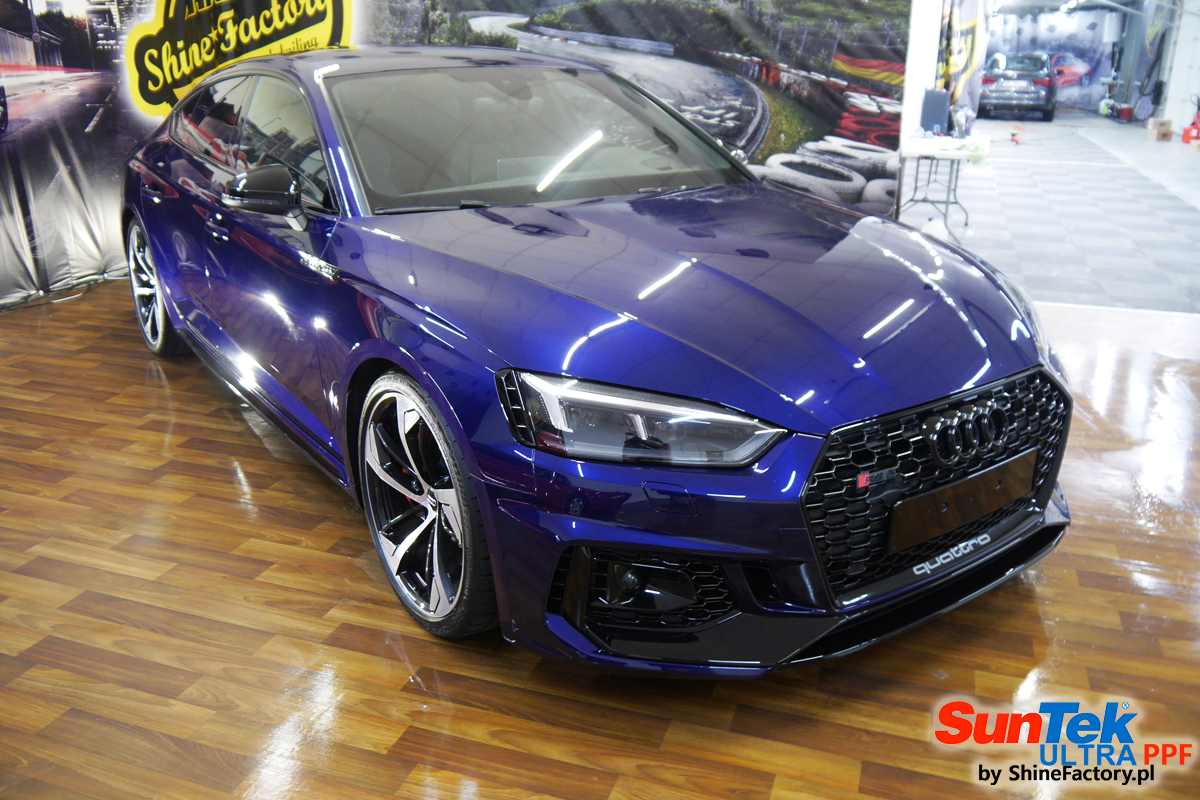 Oczywiście prace rozpoczęliśmy od dokładnego oczyszczenia całego nadwozia z naleciałości. Przeprowadziliśmy delikatną korektę i odtłuściliśmy planowane do oklejenia elementy auta. Następnie przystąpiliśmy do aplikacji bezbarwnych folii ochronnych na najbardziej narażone na mocne uszkodzenia el. auta, oczywiście zdecydowaliśmy się jak zawsze wybrać produkt bezkonkurencyjny i nowoczesny na rynku, czyli folie regeneracyjne SunTek Ultra PPF. Po kilkudziesięciu godzinach pracy Audi nabrało perfekcyjnego wyglądu, połysku oraz co najważniejsze najmocniejszej praktycznie pancernej ochrony na lata. Zapraszamy do fotorelacji!