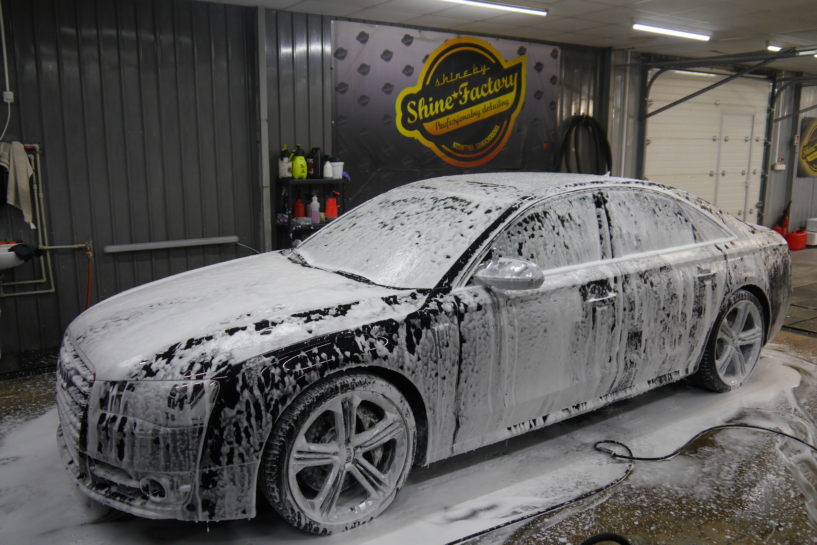 Zabezpieczenie frontów aut bezbarwnymi foliami ochronnymi staje się powoli standardem, coraz częściej także zabezpieczane w ten sposób są auta w całości co daje do tego czasu nieosiągalne perfekcyjne zabezpieczenie i efekt wizualny. Tym razem mieliśmy przyjemność zająć się Audi S8. Decyzja wz. z zabezpieczeniem padła na bezkompromisowe połączanie znakomitych bezbarwnych folii ochronnych SunTek Ultra PPF z 10 letnią gwarancją oraz pakietu powłok ceramicznych. Standardowo prace zaczęliśmy od bardzo dokładnego oczyszczenia nadwozia z wszelkich naleciałości. Kolejno zajęliśmy się inspekcją lakieru i skorygowaniem oraz doprowadzeniem go do możliwej perfekcji. Po przygotowaniu przeszliśmy do zabezpieczenia każdego cm auta, najpierw aplikując bezbarwne folie ochronne. Folie zazwyczaj aplikuje się na najbardziej narażone el. auta jak przód, tym razem zdecydowaliśmy się praktycznie całe auto pokryć najlepszymi na świecie regeneracyjnymi foliami SunTek Ultra aby uzyskać 100% ochronę lakieru, który będzie całkowicie izolowany od środowiska zewnętrznego i nic nie będzie wstanie go uszkodzić. Po aplikacji folii przeszliśmy do zabezpieczania wszelkich el. auta powłokami, zaaplikowaliśmy pakiet powłok na całe auto, folie, szyby (Gtechniq G1), felgi (powłoka grafenowa), elementy nielakierowane, a także całe wnętrze wraz z zaimpregnowaniem delikatnych skór. Po kilkudziesięciu godzinach pracy Audi nabrało perfekcyjnego wyglądu, połysku oraz co najważniejsze najmocniejszej praktycznie pancernej ochrony na lata. Zapraszamy do szerokiej fotorelacji!