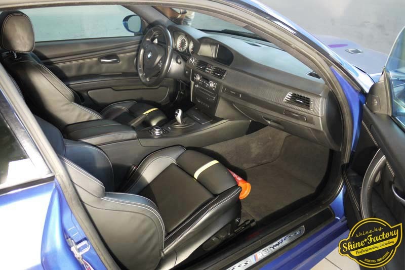 Witamy Was. Zapraszamy do relacji z detalingu wnętrza BMW M3 E92. Pierwszorzędnie umyliśmy auto aby się nam lepiej pracowało a właścicielowi lepiej odbierało auto. Oczyściliśmy jak najdokładniej wszelkie elementy wnętrza oraz zaimpregnowaliśmy dedykowanymi kosmetykami. Oczyściliśmy i zaimpregnowaliśmy wszystkie elementy skórzane preparatami Lederzentrum, dzięki czemu nabrały matowo satynowego wyglądu i ochrony. Wypraliśmy także ekstrakcyjnie wszystkie dywany oraz oczyściliśmy dokładnie bagażnik auta. Finalnie wyozonowaliśmy całe wnętrze.