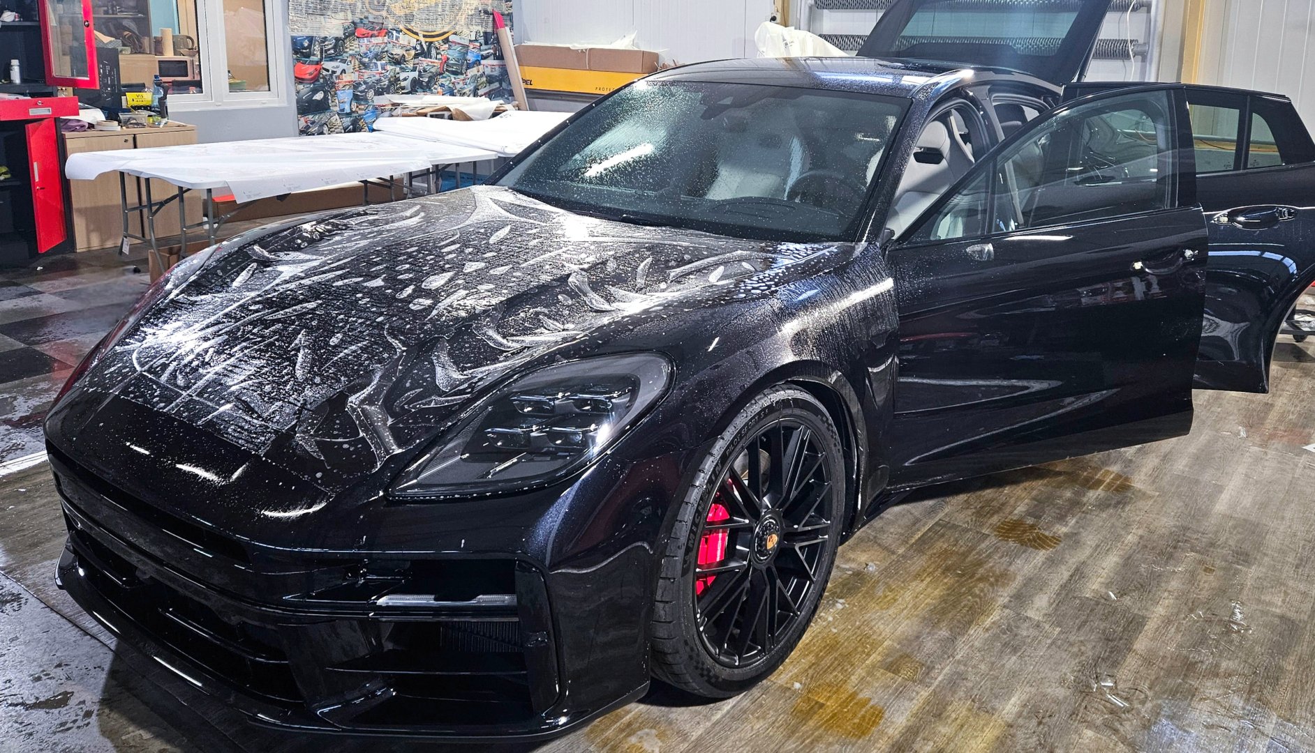 Kluczowym elementem tej realizacji była precyzja aplikacji. Oklejenie zostało wykonane z najwyższą dokładnością, możliwą wyłącznie dzięki wieloletniemu doświadczeniu naszego zespołu oraz pracy w kontrolowanych warunkach profesjonalnej hali detailingowej. Każdy element został idealnie dopasowany do dynamicznych linii nadwozia Panamery GTS, z perfekcyjnie ukrytymi krawędziami.