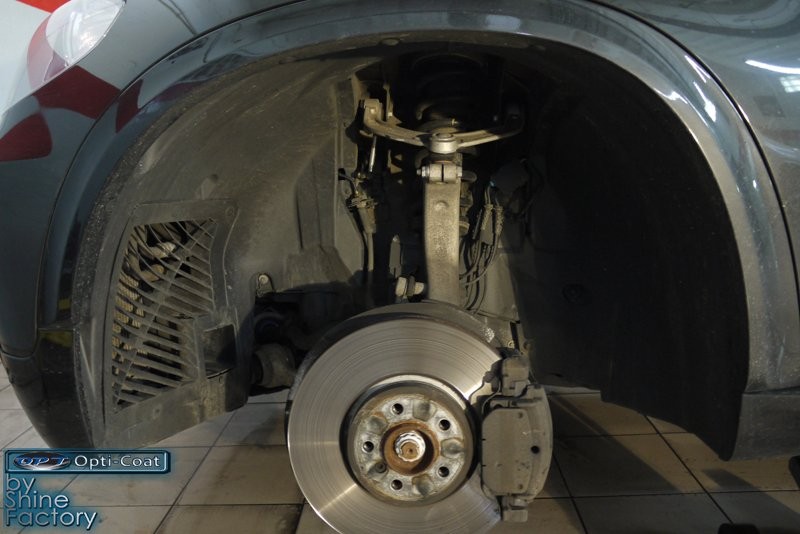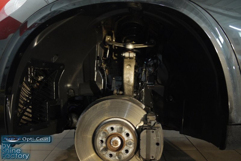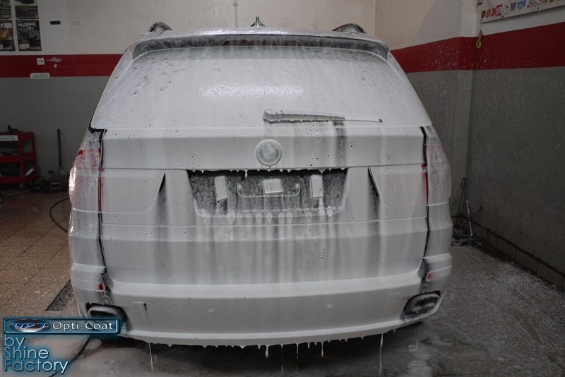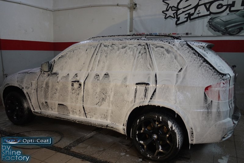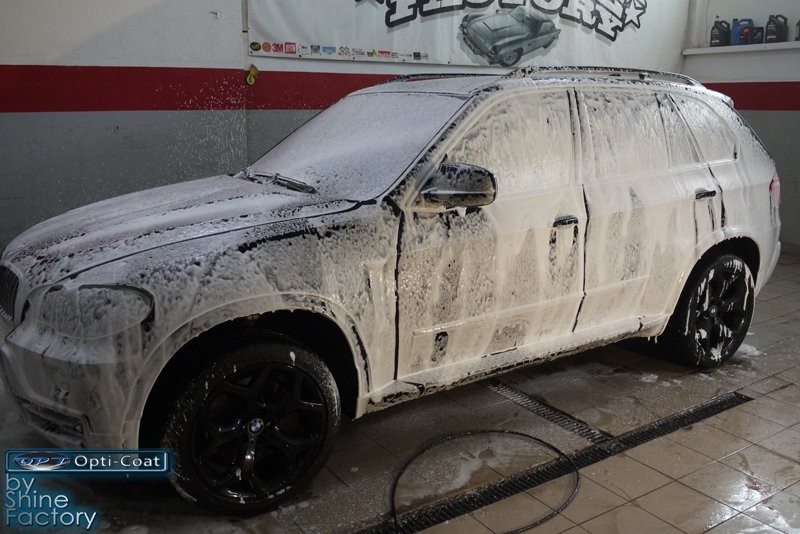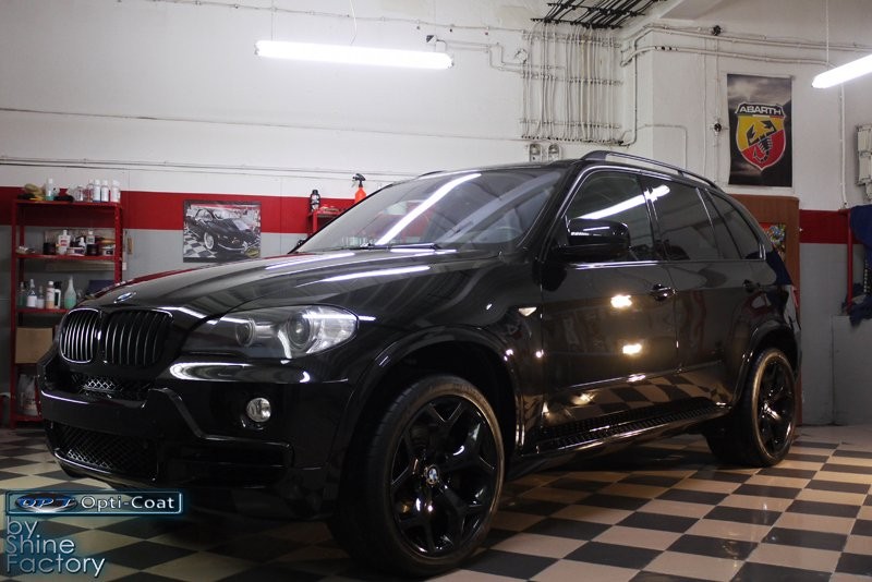 Witamy. Dziś chcemy zaprezentować Wam prace nad BMW X5 którym mieliśmy przyjemność zajmować się jakiś czas temu. Na aucie wykonaliśmy nasz najszerszy pakiet usług. Zajęliśmy się nadkolami auta, bardzo dokładnie czarnymi kołami które zostały ściągnięte spolerowane oraz zabezpieczone, komora silnika V8 została oczyszczona i zabezpieczona. Całe wnętrze poddane detailingowi wraz z oczyszczeniem i impregnacją skór. Głównym zadaniem oraz najbardziej czasochłonną czynnością była korekta mocno zniszczonego lakieru, dzięki pozbyciu się zmatowienia i mikrorys uzyskaliśmy idealną prezentację a po zabezpieczaniu powłoką ceramiczną maksymalną ochronę. Zapraszamy do relacji.
