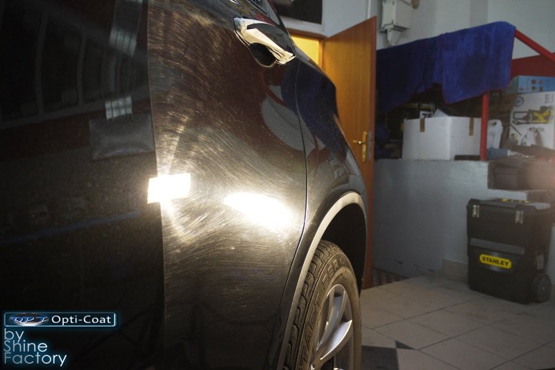 Witamy i zapraszamy na fotorelację z prac i efektu końcowego odświeżenia bardzo mocno zmęczonego BMW X6. Naszym głównym zadaniem było skorygowanie bardzo zniszczonego (strasznie zmatowiałego i porysowanego) lakieru oraz zabezpieczenie go powłoką ochronną. Zajęliśmy się także każdym detalem na zewnątrz auta (końcówkami wydechów, lampami, szybami itp), nadkolami i wnętrzem felg oraz komorą silnika. Wnętrze auta zostało oczyszczone i zabezpieczone w każdym detalu, skórzana tapicerka oczyszczona oraz zaimpregnowana. Dzięki tym zabiegom auto zmieniło się zdecydowanie nie do poznania. Zapraszamy do relacji gdzie sami to zobaczycie.
