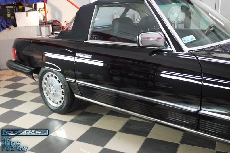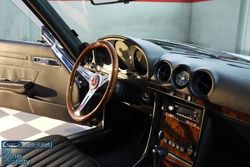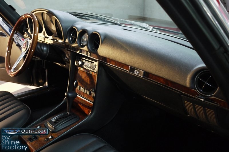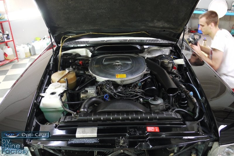 Dziś chcemy przedstawić Państwu fotorelację z prac nad Mercedesem SL W107 w wersji cabrio. Nad autem spędziliśmy kilka długich dni. Auto po wielu poprawkach lakierniczych oraz polerskich wymagało bardzo dużo pracy i poprawek aby doprowadzić lakier i wszystkie elementy do ideału. Mercedes oczywiście przeszedł nasz pełen pakiet prac wraz z zabezpieczeniem lakieru powłoką ceramiczną. Po dokładnym oczyszczeniu nadwozia, nadkoli oraz wnętrza felg przeprowadziliśmy najcięższy etap prac czyli korektę strasznie zniszczonego czarnego niemetalicznego lakieru co dało nam niesamowity efekt końcowy. Oczywiście dokładnie zajęliśmy się całym wnętrzem oraz komorą silnika. Po detailingu wszelkich innych elementów nadwozia jak chromy, szyby, spolerowanie frontów felg, lamp itp itd Mercedes zmienił się nie do poznania! Najlepiej zobaczcie to Sami w fotorelacji, zapraszamy!