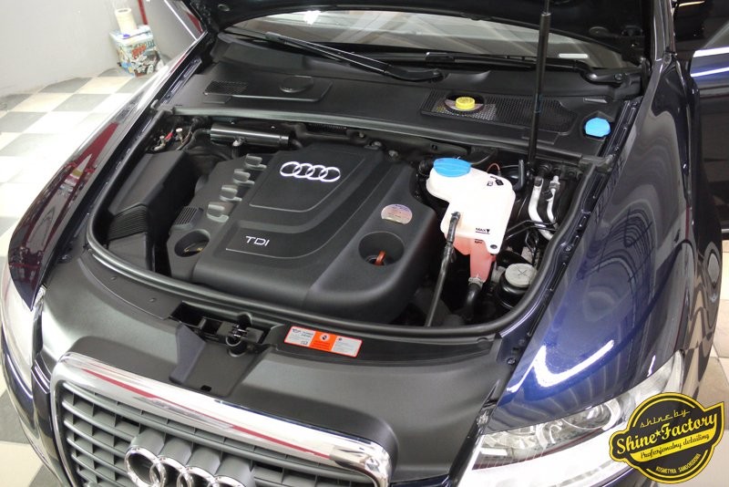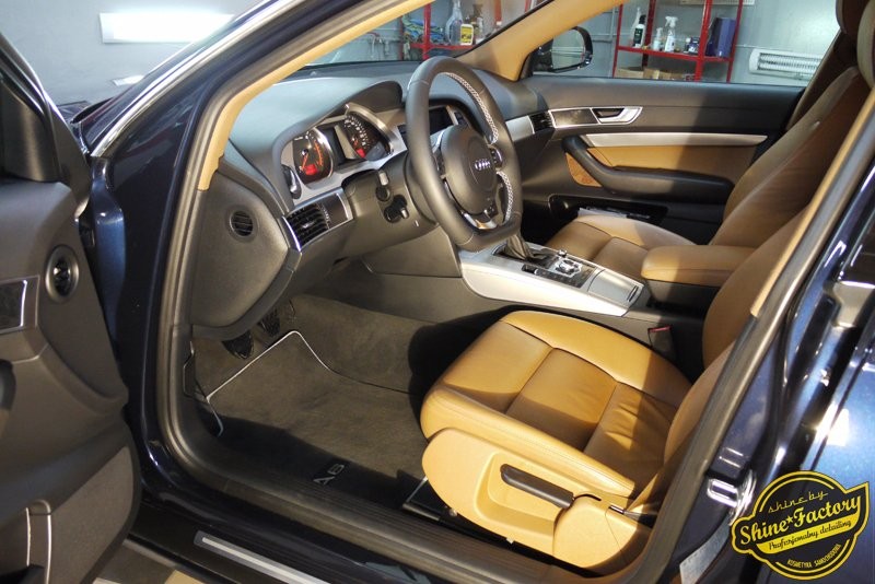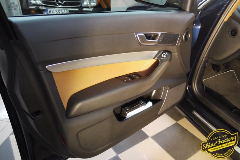 Tym razem chcemy pokazać kilka zdjęć z prac i efektu końcowego Audi A6 w ciekawej konfiguracji, granatowy lakier z jasną skórzaną tapicerką. Nowe auto, naszego stałego klienta, zaraz po kupnie trafiło do nas na standardowy maksymalny pakiet. Oczyściliśmy dokładnie felgi od wewnątrz wraz z nadkolami, zajęliśmy się komorą silnika oraz kompletnie wnętrzem gdzie oczyściliśmy i zabezpieczyliśmy wszelkie detale wraz ze skórzana tapicerką. Zniszczony lakier został poddany bardzo mocnej korekcie dzięki czemu usunęliśmy zarysowania, zmatowienia i otrzymaliśmy odpowiedni efekt wizualny. Finalnie każdy element auta został zabezpieczony odpowiednią powłoką ochronną. Zapraszamy do fotorelacji i zdjęć w mocnym letnim słońcu.