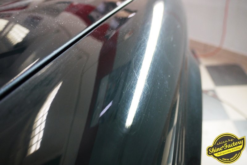 Witamy Was z nową fotorelacją! Dziś zapraszamy do obejrzenia zdjęć z prac Jaguara XJ-R w klasycznym niemetaliczny zielnym kolorze. Auto przeszło nasz pełen pakiet MaxShine. Zaczęliśmy od oczyszczenia nadkoli oraz wnętrza felg, nie pominęliśmy także zacisków hamulcowych które następnie zostały porządnie zabezpieczone. Po dogłębnym oczyszczeniu nadwozia zajęliśmy się renowacją zniszczonego lakieru, po kilku dniach korekty uzyskaliśmy perfekcyjny efekt wizualny usuwając zmatowienie, rysy oraz swirle, nadając lakierowi maksymalny połyski oraz głębie. Uwagę zwróciliśmy także na wszelkie inne detale nadwozia jak szyby, elementy chromowane, nielakierowane, klosze lamp itp itd. W między czasie zajęliśmy się z osobna każdym elementem wnętrza które oczyściliśmy i zabezpieczyliśmy odpowiednimi kosmetykami. Nie zapomnieliśmy zająć się komorą silnika. Finalnie całe auto zostało zabezpieczone kompletem powłok ochronnych wybranych z całego rynku. Po wielu godzinach prac auto zmieniło się bardzo mocno oraz nabrało trwałej idealnej prezentacji. Zapraszamy do fotorelacji!