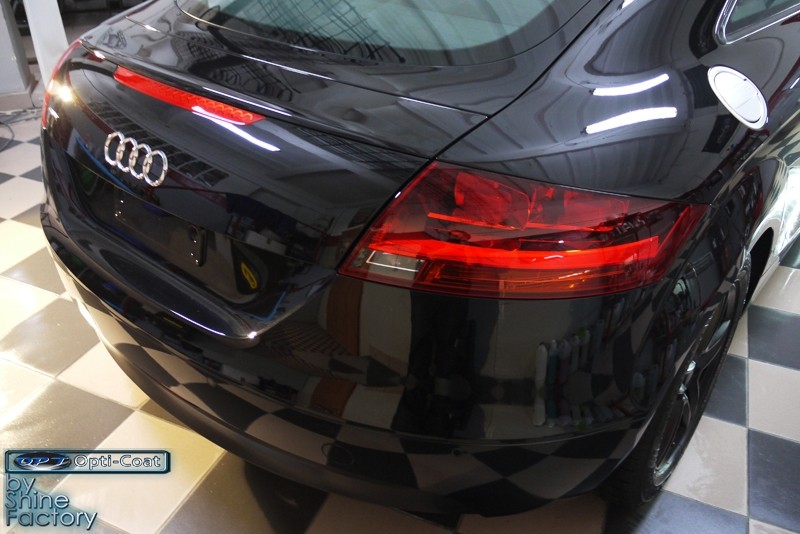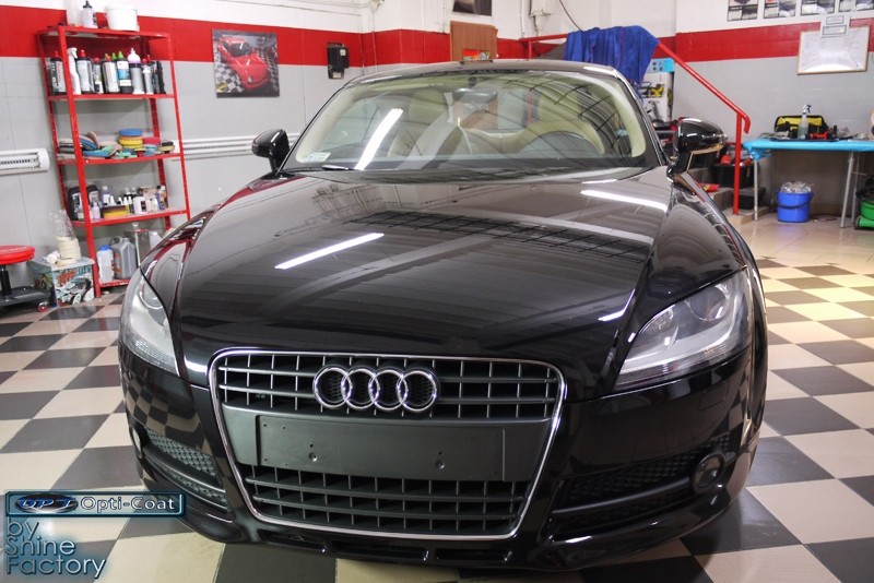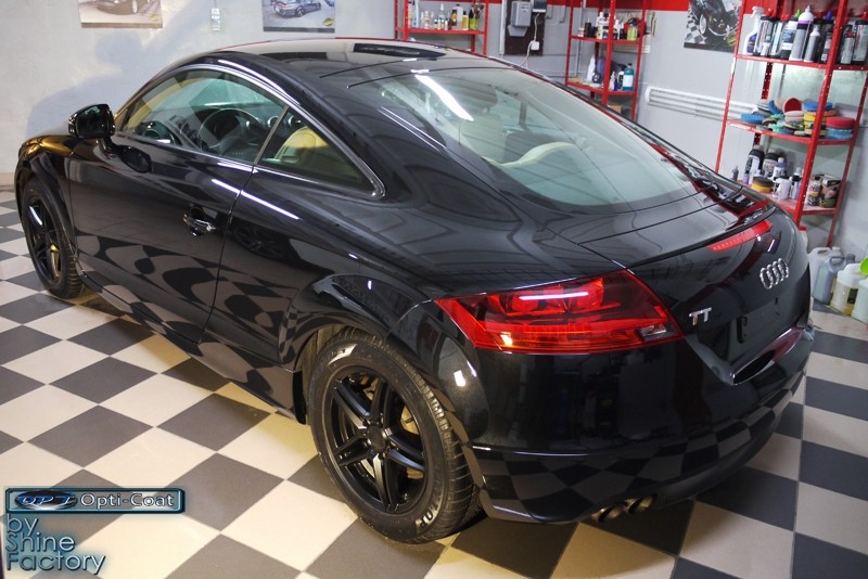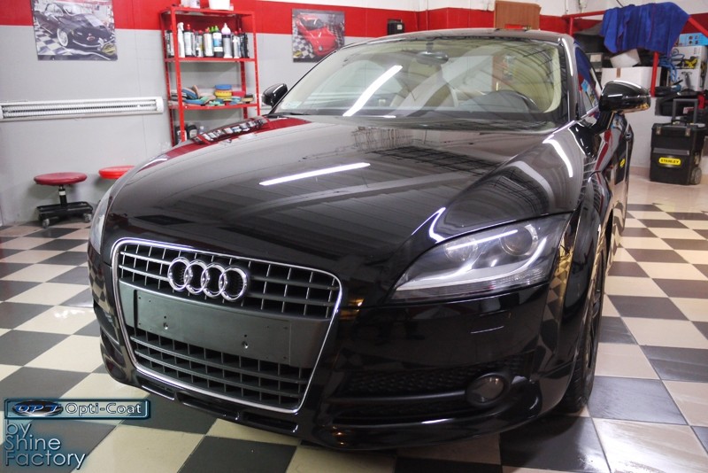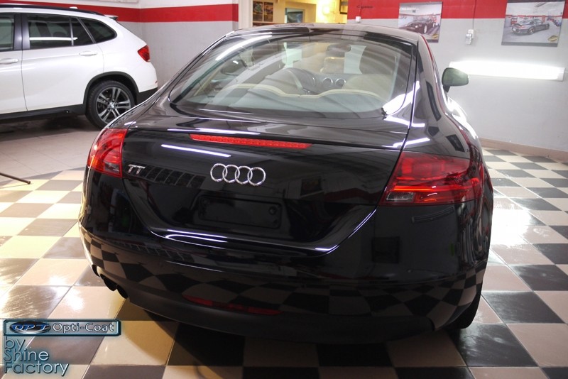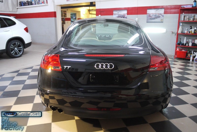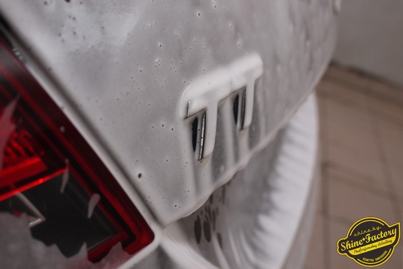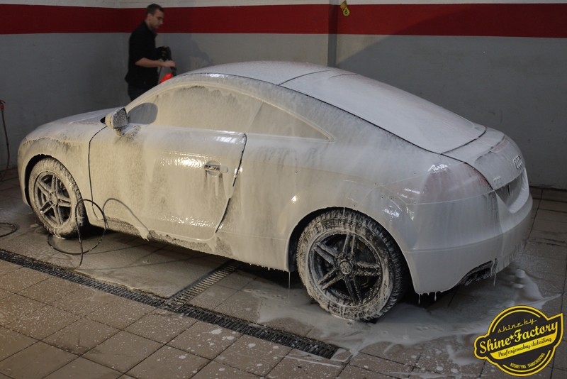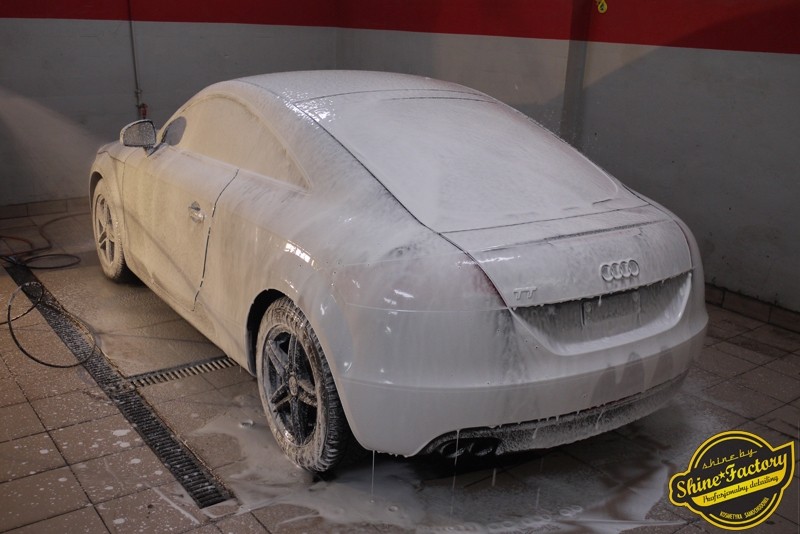 Tym razem chcemy zaprezentować relacje z prac nad Audi TT. Auto poddaliśmy pełnemu pakietowi usług. Najpierw usunęliśmy z nadwozia bardzo mocne wgniecenie drzwi i usunęliśmy w tym miejscu poważną obcierkę lakieru. Następnie dokładnie oczyściliśmy felgi, lakier i wszelkie detale. Kolejnym krokiem było przeprowadzenie pełnej korekty piekielnie mocno zniszczonego lakieru który zabezpieczyliśmy finalnie grubą powłoką ceramiczną OptiCoat 2 dzięki czemu lakier został wzmocniony oraz uodporniony na długi czas przez warunkami atmosferycznymi dzięki czemu przez długi czas będzie wyglądał perfekcyjnie. Po zadbaniu o wszelkie detale jak szyby (zabezpieczenie hydrofobowe), klosze lamp (renowacja i zabezpieczenie), felgi (powłoka kwarcowa), chromy, nadkola, tworzywa sztuczne, wydech itp itd. auto nabrało idealnego wyglądu. Nie zapomnieliśmy także doprowadzić całego wnętrza do idealnego stanu, oczyściliśmy i zabezpieczyliśmy wszelkie detale, wypraliśmy jasne wykładziny oraz całą skórzaną tapicerkę a także komorę silnika. Zapraszamy do bardzo szerokiej relacji i zdjęć z efektu końcowego!