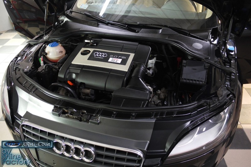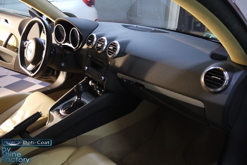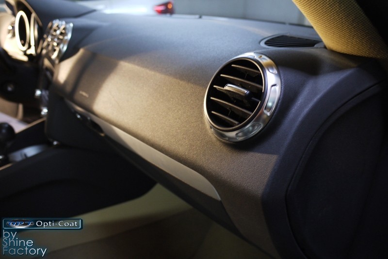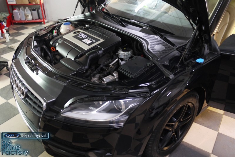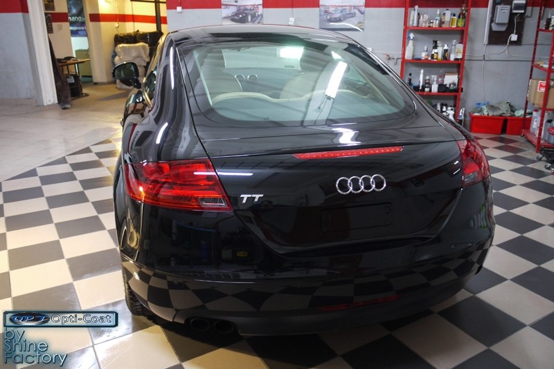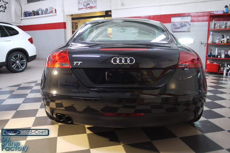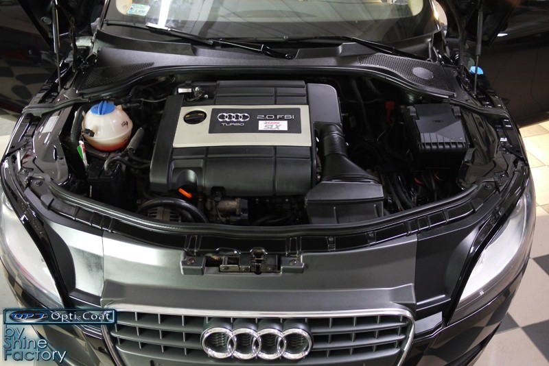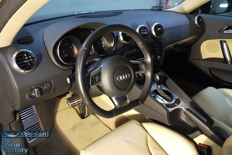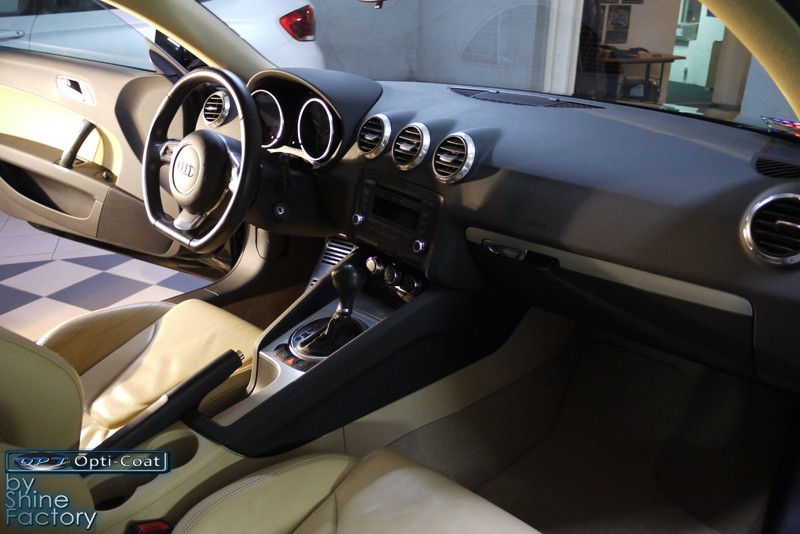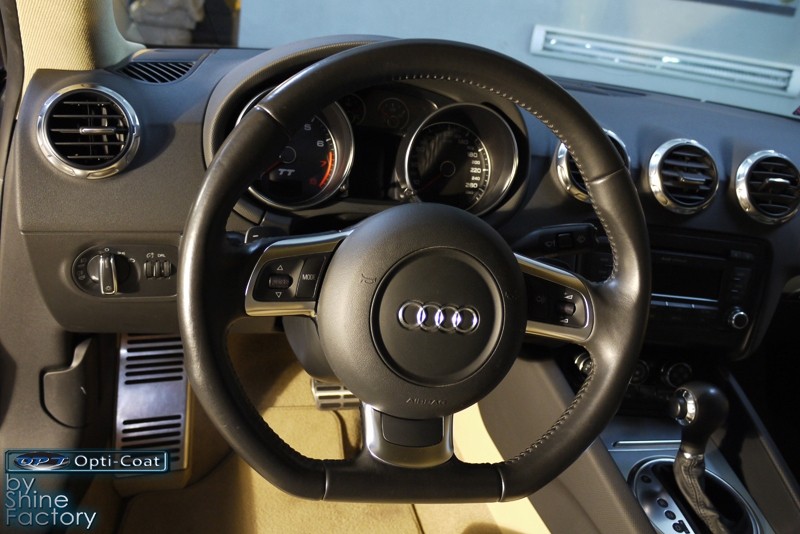 Tym razem chcemy zaprezentować relacje z prac nad Audi TT. Auto poddaliśmy pełnemu pakietowi usług. Najpierw usunęliśmy z nadwozia bardzo mocne wgniecenie drzwi i usunęliśmy w tym miejscu poważną obcierkę lakieru. Następnie dokładnie oczyściliśmy felgi, lakier i wszelkie detale. Kolejnym krokiem było przeprowadzenie pełnej korekty piekielnie mocno zniszczonego lakieru który zabezpieczyliśmy finalnie grubą powłoką ceramiczną OptiCoat 2 dzięki czemu lakier został wzmocniony oraz uodporniony na długi czas przez warunkami atmosferycznymi dzięki czemu przez długi czas będzie wyglądał perfekcyjnie. Po zadbaniu o wszelkie detale jak szyby (zabezpieczenie hydrofobowe), klosze lamp (renowacja i zabezpieczenie), felgi (powłoka kwarcowa), chromy, nadkola, tworzywa sztuczne, wydech itp itd. auto nabrało idealnego wyglądu. Nie zapomnieliśmy także doprowadzić całego wnętrza do idealnego stanu, oczyściliśmy i zabezpieczyliśmy wszelkie detale, wypraliśmy jasne wykładziny oraz całą skórzaną tapicerkę a także komorę silnika. Zapraszamy do bardzo szerokiej relacji i zdjęć z efektu końcowego!