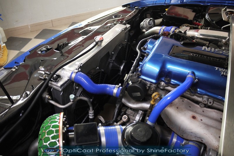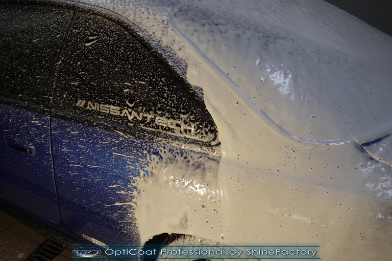 Tym razem chcemy zaprosić Państwa do fotorelacji z prac nad pięknym Nissanem 200SX. Auto choć już powoli klasyczne, ten egzemplarz zawstydził by niejedno nowe auto świeżością i stanem technicznym. Właściciel włożył bardzo dużo serca w perfekcyjną odbudowę mechaniczną auta, nam natomiast powierzył Nissana w celu przeprowadzenia finalnego detailingu i dopieszczenia do ideału. Standardowo zaczęliśmy od ściągnięcia kół, detailingu wnętrza felg oraz nadkoli. Następnie po oczyszczeniu nadwozia przeszliśmy do gruntownej korekty lakieru. Auto było całe powtórnie polakierowane w piękny niebieski kolor z modelu GTR, my w kilak dni wydobyliśmy z niego niewiarygodny idealny wygląd usuwając zmatowienie i niedoskonałości lakiernicze, finalnie zabezpieczając prawdopodobnie najlepszą powłoka ochronna na rynku, testowaną przez TUV ceramiką OptiCoat Professional 9H++. Zajęliśmy się także niewiarygodną komorą silnika oraz usportowionym aczkolwiek seryjnym wnętrzem auta gdzie oczyściliśmy i zabezpieczyliśmy wszystkie mocno zabrudzone elementy. Po zajęciu się i zabezpieczeniu pakietem powłok wszystkich innych elementów jak klosze lamp, el. chromowane czy nielakierowany, felgi itp auto zyskało perfekcyjny trwały wygląd. Zapraszamy do bardzo szerokiej fotorelacji. Film z działania powłoki- https://www.youtube.com/watch?v=OJtJxKS59kY