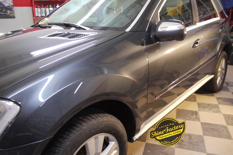 Tym razem chcemy przedstawić fotorelację z ratowania Mercedesa ML, który w nieodpowiedzialny sposób został odśnieżony metalową łopatą. Dzięki temu auto zyskało bardzo dużo głębokich uszkodzeń lakieru a także szyb. Mercedes praktycznie przeznaczony do lakierowania, dzięki kilkudniowym skomplikowanym zabiegom odzyskał pierwotny salonowy wygląd. W bezpieczny i trwały sposób udało się usunąć wszystkie głębokie rysy z lakieru oraz szyb, dla finalnego wyglądu auto zostało zabezpieczone pakietem powłok ochronnych. Czym byłby detailing bez zajęcia się felgami, nadkolami, komorą silnika oraz wnętrzem, wszystkim bardzo dokładnie się zajęliśmy i auto odzyskało salonowy wygląd. Zapraszamy do ciekawej i bardzo szerokiej fotorelacji.
