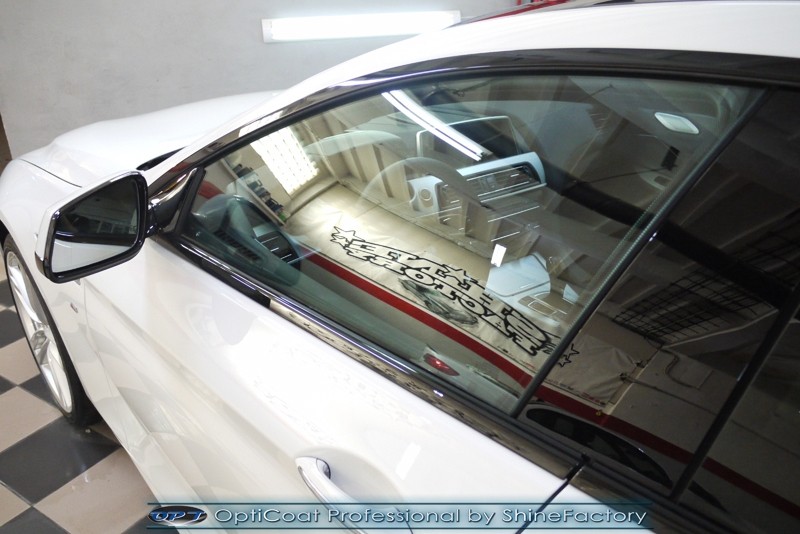 Witamy! Dziś pragniemy zaprosić do szerokiej fotorelacji z zabezpieczenia salonowej limuzyny o sportowym zacięciu spod znaku BMW, mianowicie BMW 6 GranTurismo. Nasz stały klient poprosił o maksymalnie dobre zabezpieczenie każdego detalu auta w pakiecie NewShine. Zdecydowaliśmy się zabezpieczyć każdy element auta najlepszymi powłokami z rynku, sam lakier testowaną w laboratoryjny sposób przez TUV powłoką ceramiczną OptiCoat Professional. Oczywiście najpierw auto musiało zostać w specjalistyczny sposób dokładnie oczyszczone, następnie koniecznością było usunięcie z lakieru niedoskonałości, niestety salon nie popisał się i niektóre elementy były w mocny sposób zniszczone, należało je poprawić przed aplikacją tak zaawansowanego zabezpieczenia. Po korekcie, dokładnym przygotowaniu i odtłuszczeniu oraz precyzyjnym zaaplikowaniu powłoki OC PRO lakier pokryliśmy dodatkową warstwą GlossCoat która zapewniła maksymalny połysk i śliskość lakieru na wiele lat. Oczywiście całe wnętrze zostało zabezpieczone różnymi kosmetykami w najdrobniejszym detalu wraz z zaimpregnowaniem delikatnych skór. Nie zapomnieliśmy, także o zabezpieczeniu nadkoli, wnętrza felg czy komory silnika. BMW po kilku dniach prac nabrało czystej i bardzo połyskliwiej bieli oraz co najważniejsze najlepszej ochrony co zapewni zminimalizowane brudzenie oraz banalne utrzymanie auta w perfekcyjnym stanie na wiele lat. Zapraszamy do szerokiej fotorelacji i zdjęć efektu końcowego! Film z działania powłoki po 10tyś km- https://www.youtube.com/watch?v=_elwZzQ94Dk