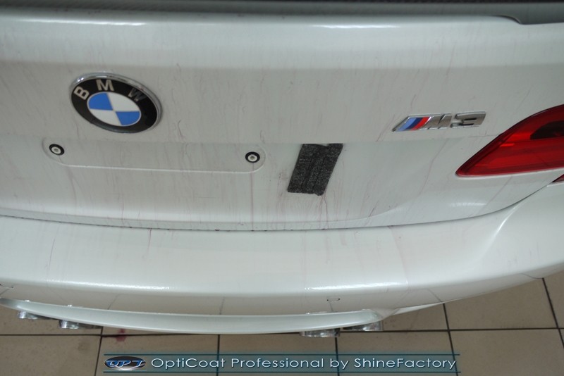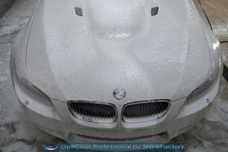 Tym razem chcemy zaprosić Państwa do fotorelacji z zabezpieczenia pięknego BMW M3 w perłowym białym lakierze. Właścicielowi zależało na możliwie najlepszemu zabezpieczeniu auta. Standardowo prace zaczęliśmy od dogłębnego oczyszczenia całego nadwozia, jest to konieczne do prawidłowego przebiegu dalszych prac. BMW posiadające niewielki przebieg musiało przejść delikatną korektę lakieru aby uwidocznić piękno perłowego lakieru oraz przygotować odpowiednio powierzchnię pod aplikację powłoki ceramicznej. Po korekcie, odtłuszczeniu i przygotowaniu powierzchni całe auto zostało zabezpieczone pakietem powłok ceramicznych/kwarcowych a sam lakier naszą topową powłoką ochronną Optimum OptiCoat Professional. Powłoka nadała finalny efekt oblania szkłem oraz idealnych właściwości ochronnych. Przeprowadziliśmy także pełen pakiet detailingu wnętrza które wraz ze skórami zostało oczyszczone i zabezpieczone odpowiednimi kosmetykami. Zapraszamy do fotorelacji!