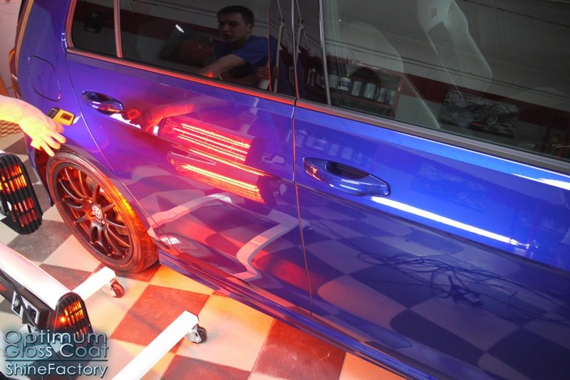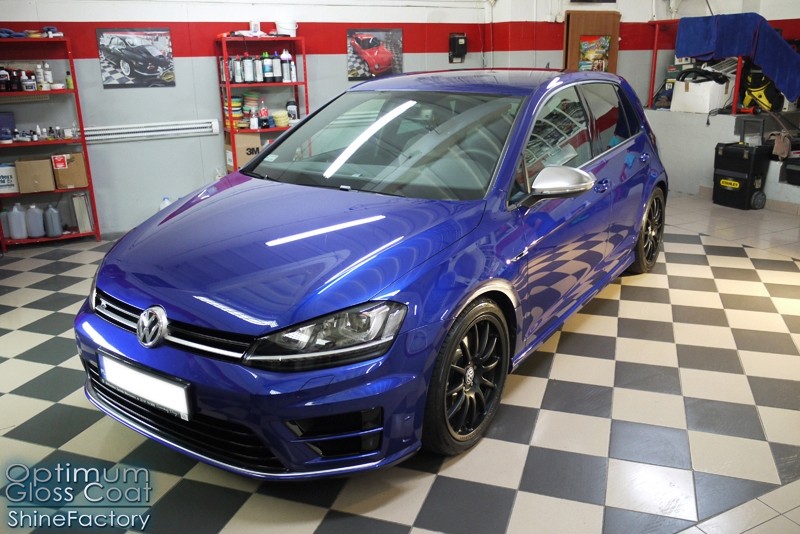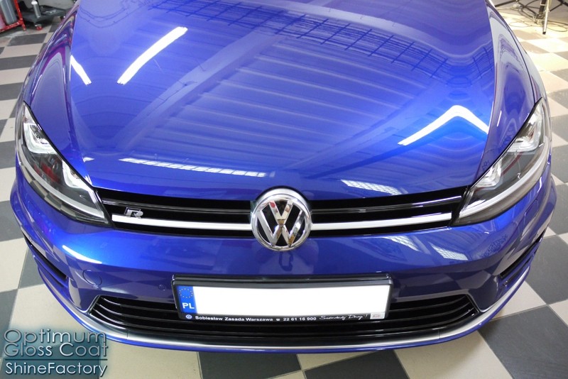 Witamy i zapraszamy do fotorelacji z zabezpieczenia kolejnego nowego VW Golfa R w swoim pięknym charakterystycznym niebieskim kolorze. Auto oczywiście pierwszorzędnie zostało dogłębnie oczyszczone z zabrudzeń (smoła, naleciałości drogowe) które już po krótkim użytkowaniu wżarły się w niezabezpieczony lakier, następnie usunęliśmy kilka głębszych uszkodzeń i bardzo delikatnie odświeżyliśmy maszynowo lakier. Następnie zaaplikowaliśmy powłokę Optimum GlossCoat oraz wygrzeliśmy w celu utwardzenia lampami IR w odpowiedniej temperaturze. Po zadbaniu o wszelkie inne detale auto zyskało idealny efekt wizualny i porządną ochronę na bardzo długi czas. Zapraszamy do zdjęć.
