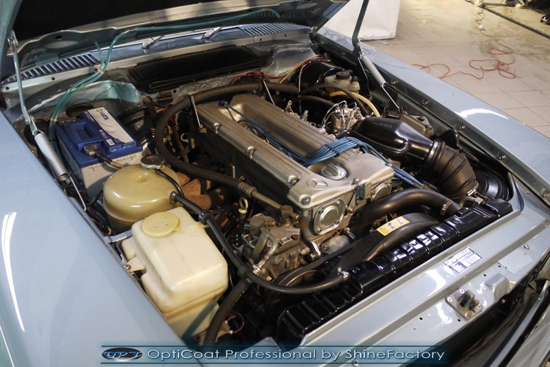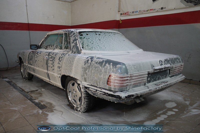 Dziś chcemy przedstawić fotorelację z detailingu Mercedesa SL (R107). Auto po wieloletniej restauracji trafiło do nas w celu finalnego dopracowania i ochrony lakieru najlepszym możliwym zabezpieczeniem, czyli powłoką OptiCoat Professional certyfikowaną przez TUV. Na aucie przeprowadzimy pełen pakiet zaczynając od detailingu nadkoli oraz felg od wewnątrz. Następnie po dokładnym oczyszczeniu auta z zewnątrz przeszliśmy do mozolnego doprowadzenia lakieru do ideału, usunęliśmy bardzo dużo zmatowień i innych uszkodzeń pozostawionych przez lata eksploatacji i poprawek lakierniczych. Po pracach polerskich całe nadwozie i wszelkie inne elementy zostały zabezpieczone pakietem powłok oraz utwardzone lampami IR. Zajęliśmy się, także całym wnętrzem, które w każdym detalu zostało oczyszczone i zabezpieczone warz z el. skórzanymi. Nie zapomnieliśmy, także zająć się całą komorą silnika. Po wielu godzinach prac nad samym lakierem i detalami auta, zabezpieczeniu powłoką ceramiczną PRO, otrzymaliśmy finalny efekt wizualny a przede wszystkim najlepszą ochronę. To wszystko zobaczycie w bardzo szerokiej fotorelacji. Zapraszamy.