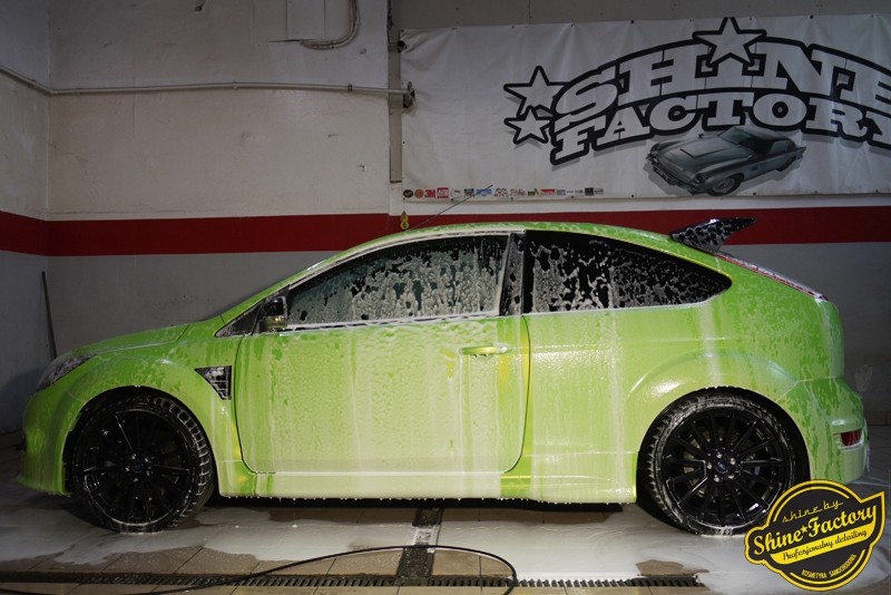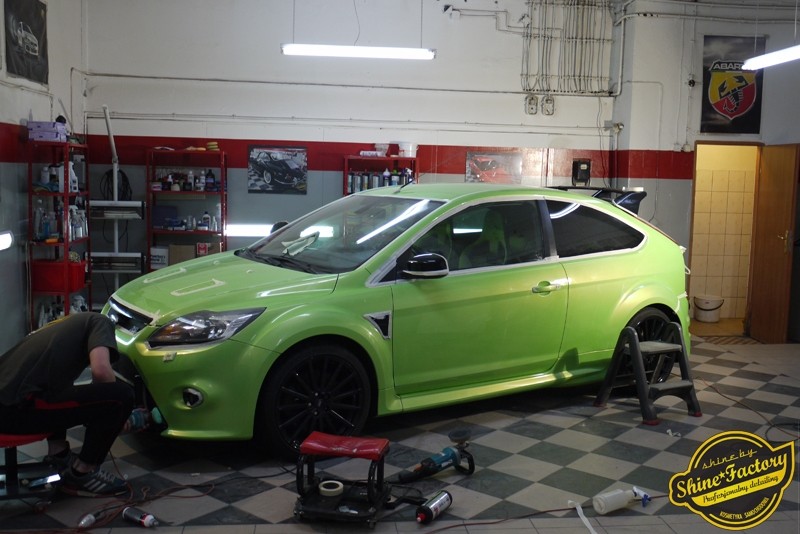 Ford Focus RS w oszałamiającym zielonym kolorze trafił do nas w celu pełnego detailingu zewnętrznego i zabezpieczenia pakietem powłok ochronnych. Pierwszorzędnie dogłębnie oczyściliśmy całe auto z naleciałości jak smoła czy bardzo duża ilość metalicznych osadów. W celu osiągnięcia maksymalnego efektu wizualnego i doprowadzenia tego wielowarstwowego lakieru do perfekcji przeprowadziliśmy pełną korektę, usunęliśmy zmatowienie i mikrorysy z lakieru jak i wszelkich czarnych elementów nadwozia. Finalnie na całe auto jak szyby, felgi, el. nielakierowane, lampy itp zostały zabezpieczone pakietem powłok kwarcowych. Sam lakier powłoką ceramiczną Optimum Professional 9H certyfikowaną przez TUV, która po utwardzeniu lampami IR nadała bardzo trwałej ochrony a w połączeniu z korektą perfekcyjny połysk, głębie koloru i wyeksponowanie metaliku tego pięknego lakieru. Zapraszamy do pełnej fotorelacji.