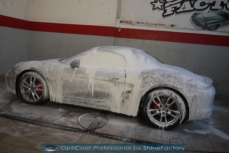 Witamy! Pragniemy zaprosić do szerokiej fotorelacji z zabezpieczenia sportowego cabrio które trafiło do nas wprost z salonu, mianowicie najnowszego Porsche Boxster. Wymagane było maksymalnie dobre zabezpieczenie każdego detalu auta w pakiecie NewShine. Zdecydowaliśmy się zabezpieczyć każdy element auta najlepszymi powłokami z rynku, sam lakier testowaną w laboratoryjny sposób przez TUV powłoką ceramiczną OptiCoat Professional. Oczywiście najpierw auto musiało zostać w specjalistyczny sposób dokładnie oczyszczone, następnie koniecznością przed aplikacją tak zaawansowanego zabezpieczenia konieczne było skorygowanie niedoskonałości pozostawionych przez salon/fabrykę. Po korekcie, dokładnym przygotowaniu i odtłuszczeniu oraz precyzyjnym zaaplikowaniu powłoki OC PRO lakier pokryliśmy dodatkową warstwą GlossCoat która zapewniła maksymalny połysk i śliskość lakieru na wiele lat. Oczywiście całe wnętrze zostało zabezpieczone różnymi kosmetykami w najdrobniejszym detalu wraz z zaimpregnowaniem delikatnych skór. Nie zapomnieliśmy, także o zabezpieczeniu nadkoli, wnętrza felg czy komory silnika. Porsche po kilku dniach prac nabrało maksymalnego połysku i ekspozycji bogatego ziarna metaliku oraz co najważniejsze najlepszej ochrony co zapewni zminimalizowane brudzenie oraz banalne utrzymanie auta w perfekcyjnym stanie na wiele lat. Zapraszamy do szerokiej fotorelacji i zdjęć efektu końcowego!