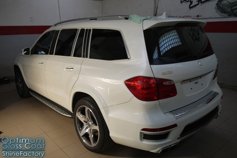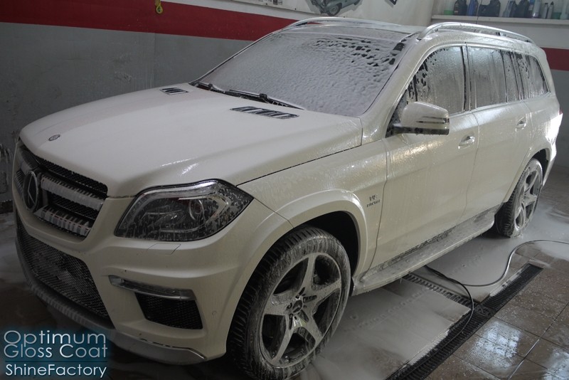 Mercedes GL w białym perłowym lakierze trafił do nas po kilku latach eksploatacji w celu odświeżenia i zabezpieczenia. Zaczęliśmy od dokładnego i dogłębnego oczyszczenia mocno zabrudzonego nadwozia, biały lakier posiadał na sobie wszelkie możliwe naleciałości jak brud, smoła, kropki wżartych opiłków metalicznych oraz owadów itp itd. W celu zwiększenia połysku i wyeksponowania perłowego lakier po oczyszczeniu został odświeżony poprzez korektę. W miedzy czasie prac nad lakierem całe wnętrze zostało bardzo dokładnie oczyszczone i z osobna zabezpieczone najwyższej klasy kosmetykami, wszystkie skórzane fotele i elementy oczyszczone oraz zaimpregnowane kosmetykami Lederzentrum. Finalnie całe nadwozie zostało pokryte pakietem powłok ochronnych (felgi, szyby, el. nielakierowane, chromowane, lampy) sam lakier powłoką Optimum GlossCoat. Wykonaliśmy także detailing komory potężnego silnika V8 bi-turbo. Zapraszamy do relacji.