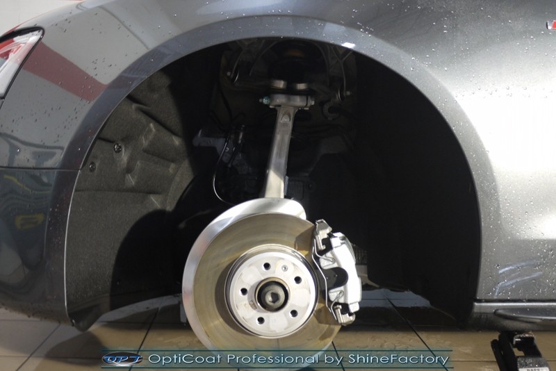Tym razem chcemy przedstawić relację z zabezpieczenia nowego auta prosto z salonu. Audi A5 w stalowym kolorze, trafiło do nas zaraz po wyjeździe z salonu w celu jak najmocniejszego zabezpieczenia każdego detalu auta. Prace zaczęliśmy od detailingu nadkoli oraz wnętrza felg. Następnie całe auto zostało dokładnie oczyszczone z zabrudzeń oraz pozostawionych transportowych zabezpieczeń. Lakier ogólnie w zaskakująco dobrym stanie posiadał tylko miejscowe uszkodzenia po wżartych w niezabezpieczony lakier ptasich odchodach oraz owadach, po usunięciu niedoskonałości mogliśmy spokojnie dokładnie odtłuścić lakier i zaaplikować powłokę ceramiczną 9H++ opartą na SiC Optimum OptiCoat Professional aby zapewnić maksymalny połysk i śliskość lakieru na wiele lat. Po aplikacji pakietu powłok na szyby oraz felgi całe auto zostało wygrzane lampami IR w danej temperaturze w celu utwardzenia powłok. Oczywiście zajęliśmy się także wnętrzem auta, zabezpieczając z osobna wszelki elementy oraz skóry. Zapraszamy do fotorelacji.