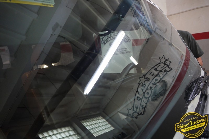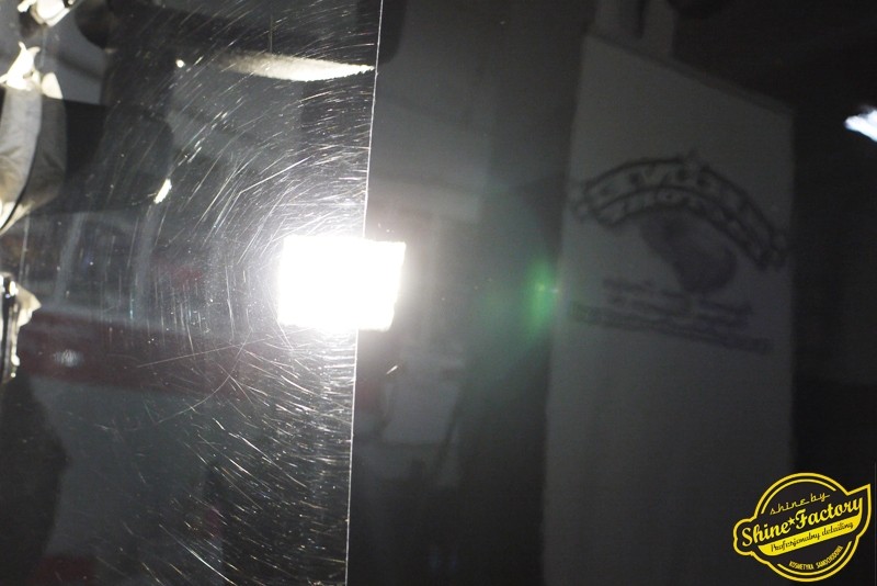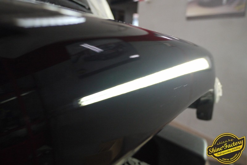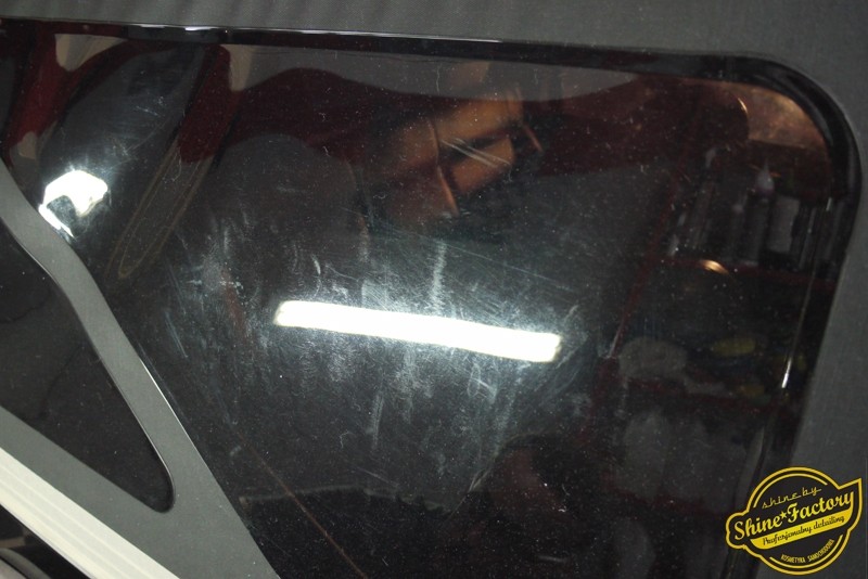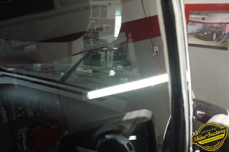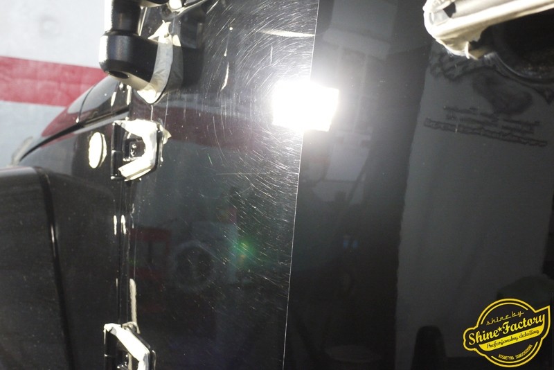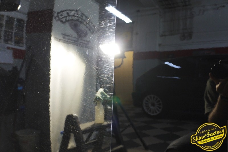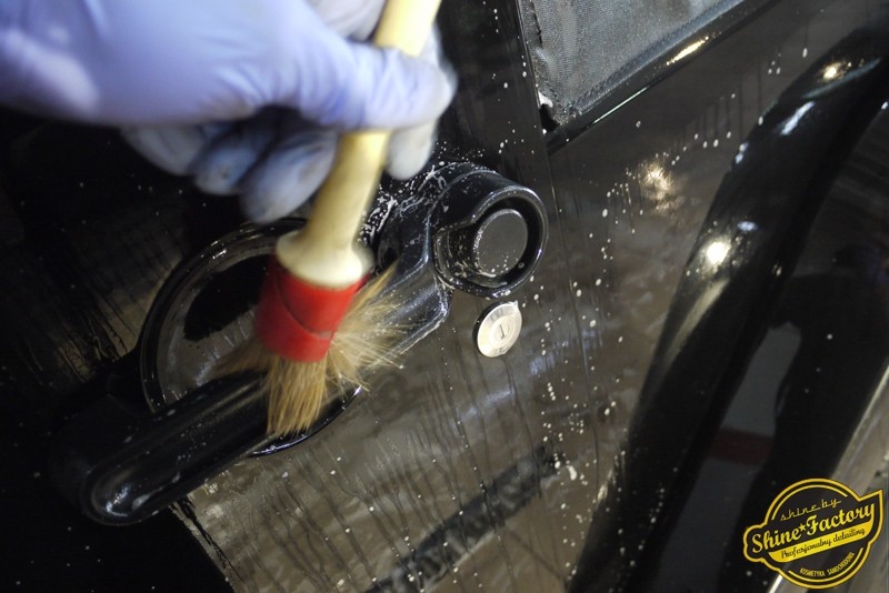 Zapraszamy do relacji z detailingu bardzo ciekawego auta jakim jest Jeep Wrangler. Egzemplarz którym mieliśmy przyjemność się zająć posiadał czarny niemetaliczny lakier, który w trakcie korekty ze zniszczonego szarego zmienił się w piękną głęboką czerń. Oczywiście zaczęliśmy od dokładnego oczyszczenia całego nadwozia oraz wszystkich detali i elementów auta. Było to konieczne przed prawidłową korektą, następnie podczas renowacji staraliśmy się dotrzeć do wszelkich zakamarków i usunąć zmatowienie/mikrorysy oraz uzyskać głęboka czerń bez najmniejszej skazy. Po wymagającej korekcie na lakier zaaplikowaliśmy naszą topową powłokę ceramiczną Professional posiadającą certyfikat TUV oraz wygrzaliśmy dodatkowo lampi IR w odpowiedniej temperaturze co zapewni wieloletnią ochronę, piękny wygląd oraz ułatwione do maksimum mycie auta. Prócz samego lakieru zajęliśmy się mnóstwem innych detali, odświeżyliśmy winylowe szyby, odżywiliśmy materiałowy dach, usunęliśmy z przednich szyb głębokie pojedyncze rysy oraz oczywiście zabezpieczyliśmy wszelkie inne el. nielakierowane, opony, el. chromowane, matowe felgi itp itd. Po kilku dniach prac auto nabrało perfekcyjnej prezentacji, zapraszamy do szerokiej fotorelacji!