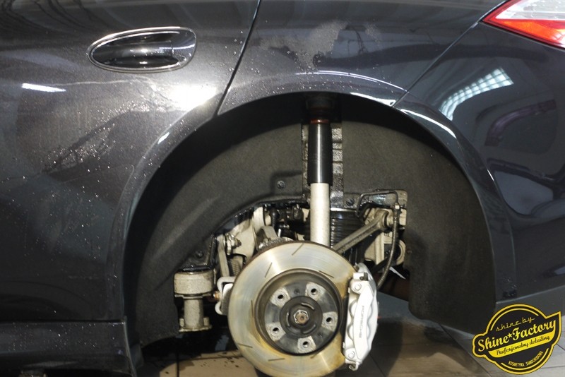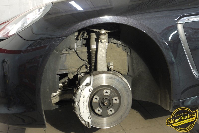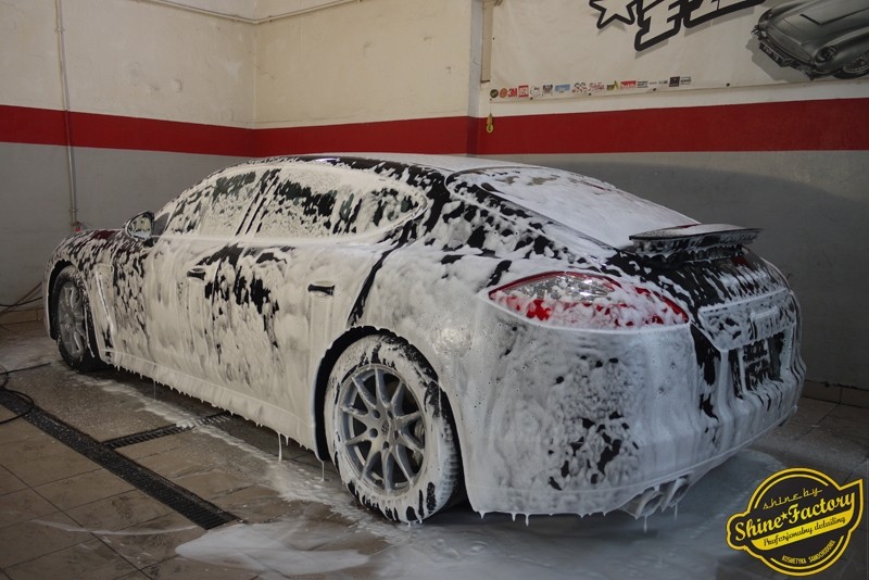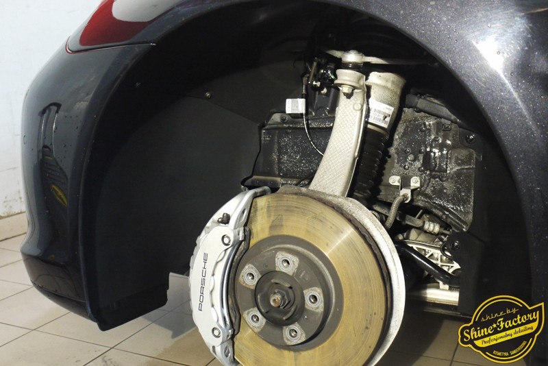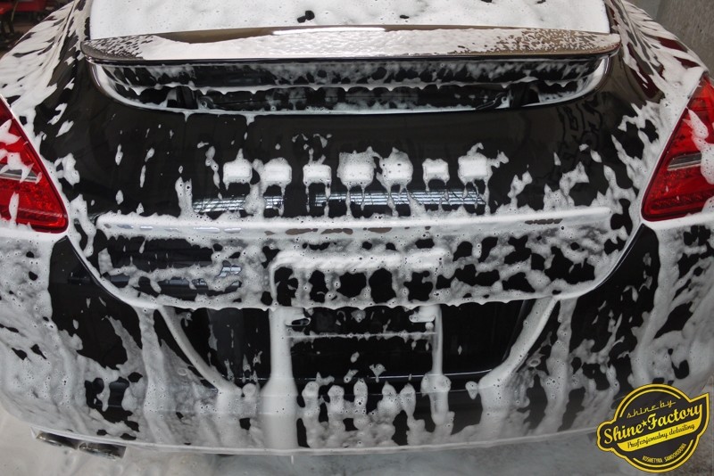 Witamy Was! Dziś chcemy przedstawić pełną fotorelację z prac nad Porsche Panamera w mocno metalicznym lakierze. Auto trafiło do nas w celu idealnego detailingu i możliwie najlepszego zabezpieczenia. Porsche przeszło nasz najszerszy pakiet prac dlatego też zaczęliśmy od detailngu felg oraz nadkoli a także dogłębnego oczyszczenia lakieru. Następnie przystąpiliśmy do najbardziej czasochłonnego i najważniejszego etapu prac czyli korekty zniszczonego lakier, usunęliśmy wszelkie niedoskonałości i zmatowienie, po kilku dniach prac nabrał idealnego wyglądu oraz był gotowy do zabezpieczanie powłoką ceramiczną. Finalnie zastosowaliśmy wyjątkową powłokę 9H++ Optimum OptiCoat Professional potwierdzoną testami TUV która finalnie została utwardzono w odpowiedniej temp. lampami IR. Oczywiście zajęliśmy się także zabezpieczeniem pakietem powłok wszelkich innych elementów jak szyby, felgi, elementy nielakierowane czy nawet końcówki wydechu, oczywiście po przygotowaniu i możliwej renowacji. Nie zapomnieliśmy także o detailingu wszelkich elementów wnętrza oraz całej komory silnika wielkiego silnika . Po kilkudziesięciu godzinach pracy kilku osób auto nabrało perfekcyjnego wyglądu oraz najlepszej z możliwej ochrony. Zapraszamy do bardzo szerokiej fotorelacji!