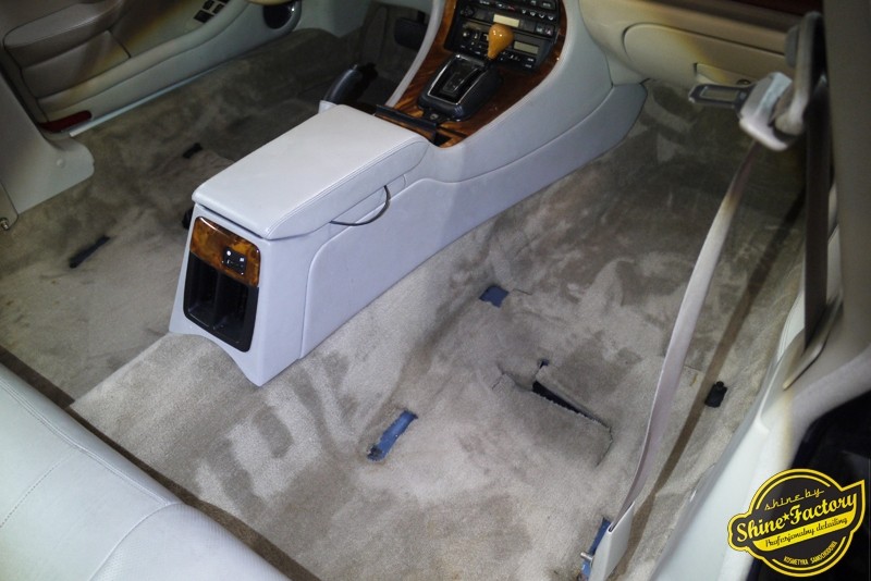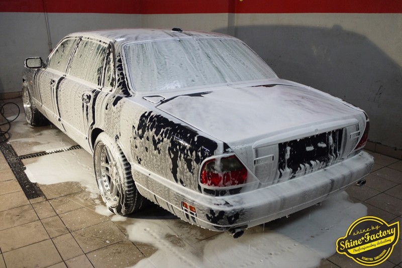 Tym razem chcemy przedstawić bardzo szeroką fotorelację z detailingu i rewitalizacji Jaguara XJ. Ta wyjątkowa limuzyna, na pewno nie była w godnym stanie.. wręcz była w stanie krytycznym. Bardzo mocno zabrudzone auto zostało pierwszorzędnie dogłębnie oczyszczone, następnie przeszliśmy do najbardziej czasochłonnego etapu czyli korekty lakieru. Piekielnie zniszczony, z mnóstwem głębszych i płytszych rys, całkowicie zmatowiały oraz z niedoskonałościami po różnych naprawach lakierniczych, został poddany wieloetapowej korcie, którą staraliśmy się jak najmocniej odmienić auto i doprowadzić do jak najlepszego stanu. Następnie zabezpieczyliśmy całe auto (szyby,lakier,felgi itp) pakietem powłok ceramicznych/kwarcowych, sam lakier powłoką Optimum OptiCoat Professional, ceramiką 9H++ testowana przez TUV oraz dodatkową warstwa GlossCoat. Także i wnętrze zostało poddane wielogodzinnemu detailingowi, bardzo zabrudzone zostało oczyszczone i zabezpieczone w każdym detalu, wykładziny kilkukrotnie wyprane a skóra mocno oczyszczona i finalnie zaimpregnowana. Zapraszamy do relacji z metamorfozy tego auta.