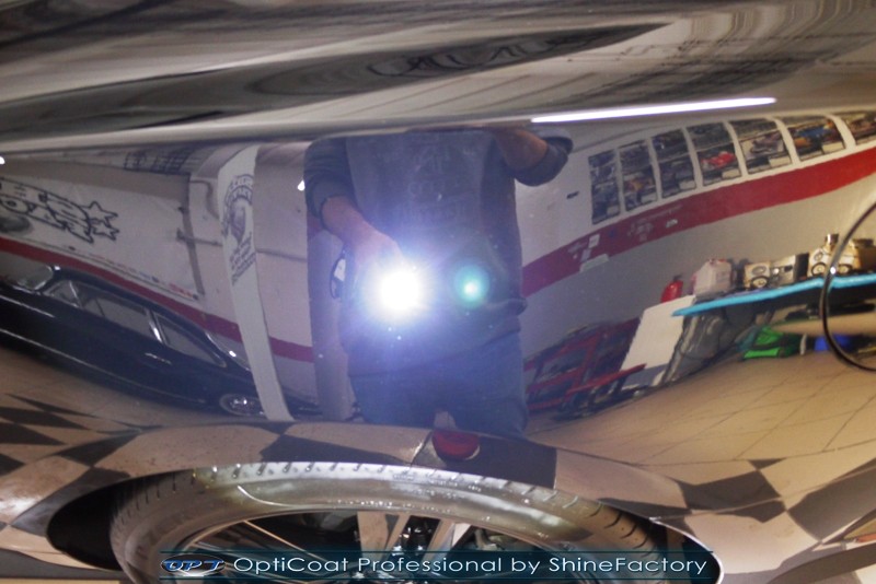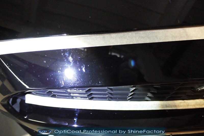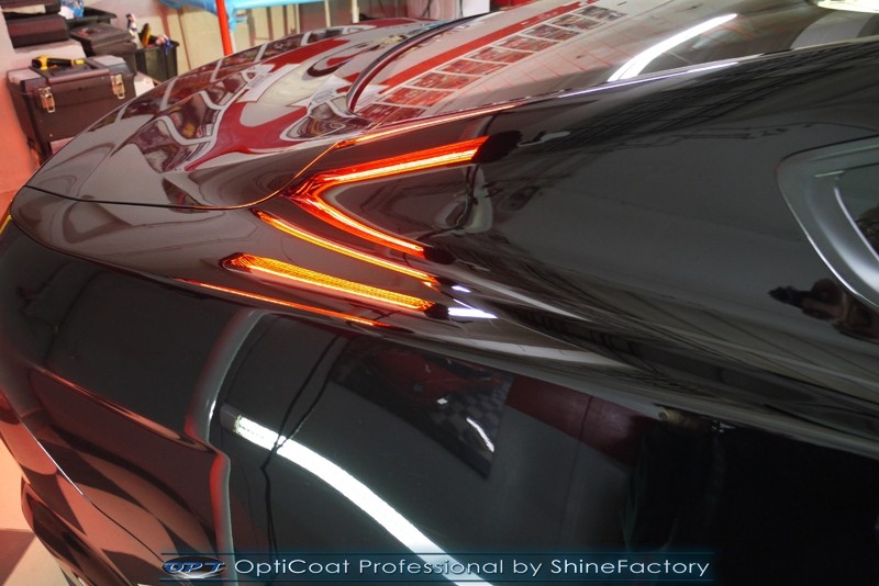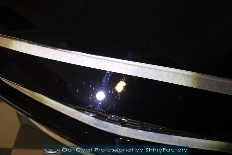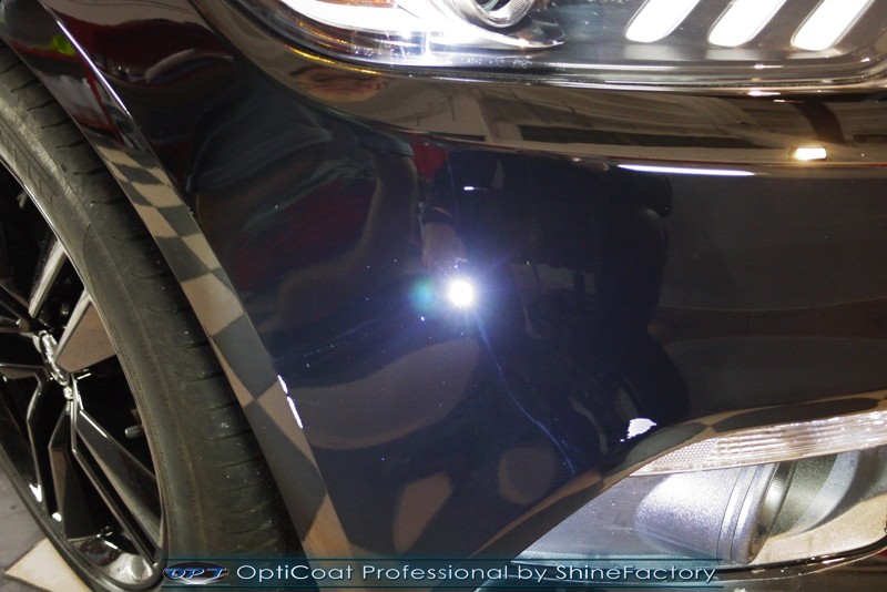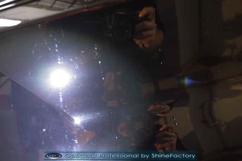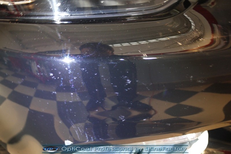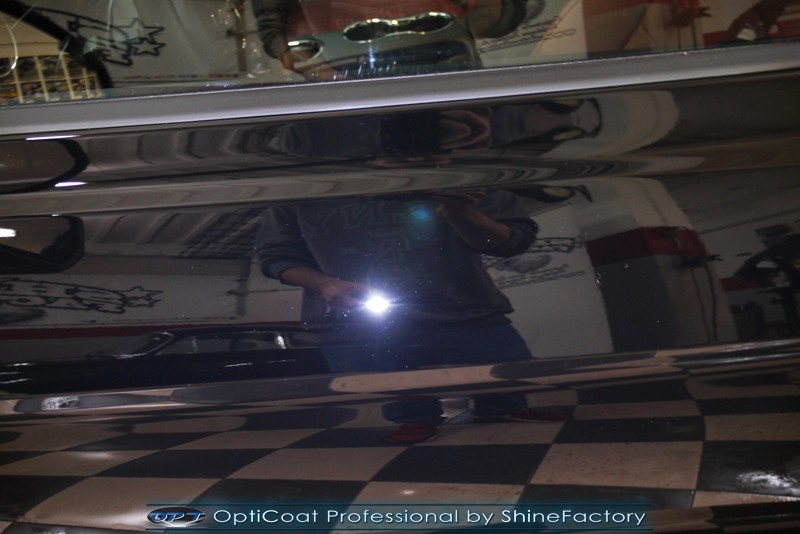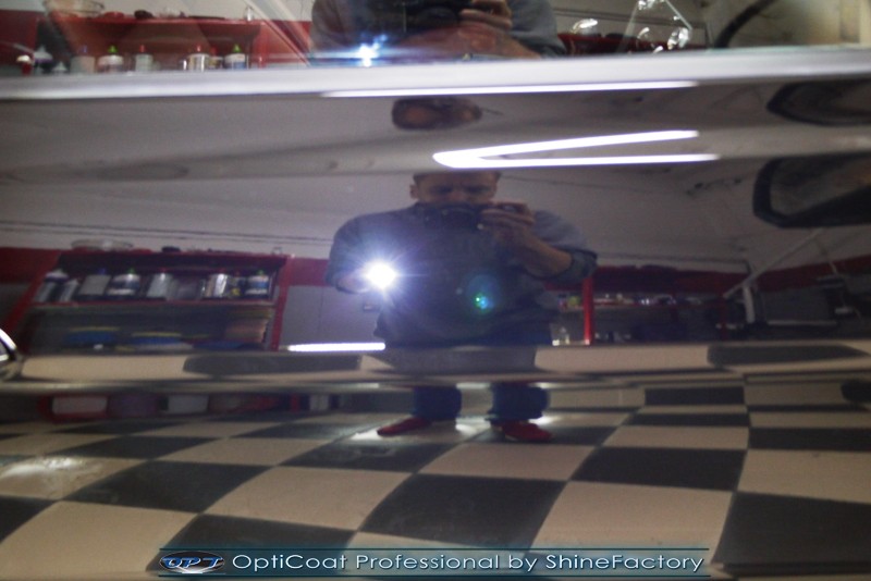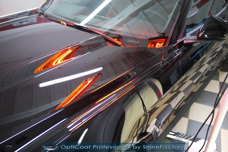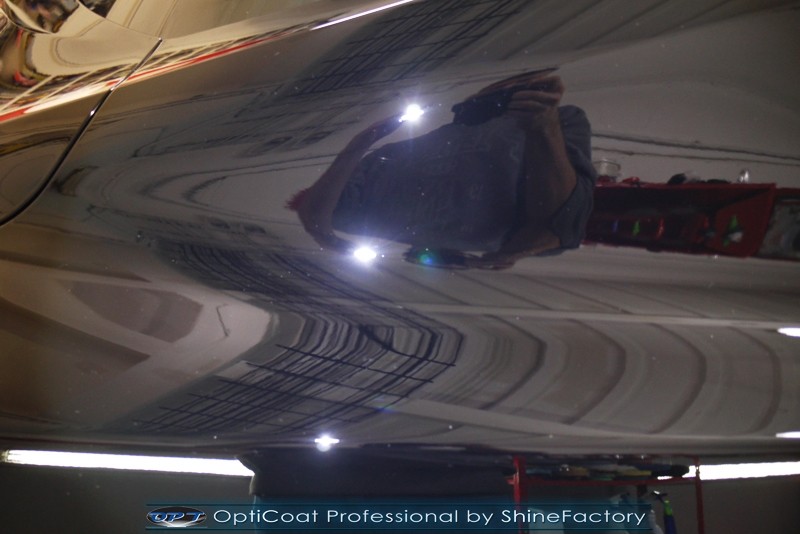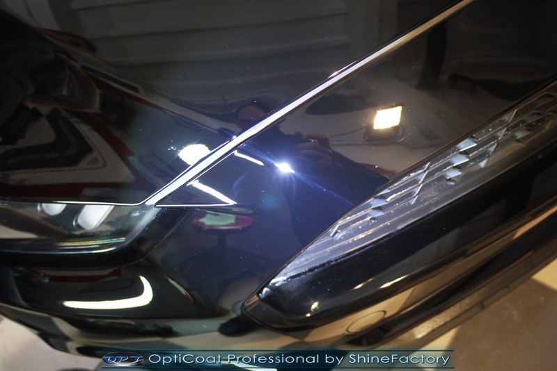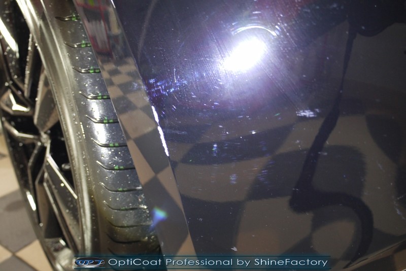 Auto trafiło do nas w celu bezkompromisowego zabezpieczenia najlepszą powłoką ceramiczną 9H+ Optimum Professional. Oczywiście, prócz samego lakieru, mieliśmy zająć się każdym innym detalem auta. Prace zaczęliśmy od detailingu nadkoli oraz wnętrza felg. Następnie całe auto zostało dokładnie oczyszczone z zabrudzeń oraz pozostawionych transportowych zabezpieczeń. Następnie przed aplikacją powłoki musieliśmy niestety już dość mocno skorygować piękny lakier z bardzo delikatnym ziarnem metalicznym, usunęliśmy mikrorysy oraz zajęliśmy się fontem auta z masą b. głębokich wżerów po owadach, które zniszczyły w kilka dni niezabezpieczony niczym lakier auta. Następnie, po dokładnym przygotowaniu i odtłuszczeniu powierzchni przeszliśmy do aplikacji pakietu powłok ochronnych. Zabezpieczyliśmy felgi kwarcem, szyby powłoką hydrofobową, na wszelkie inne detale oraz oczywiście lakier trafiła wielowarstwowa dwuskładnikowa powłoka ceramiczna 9H+, certyfikowana przez TUV Optimum Professional/GlossCoat. Finalnie wszystkie powłoki zostały utwardzone lampami IR w odpowiedniej temperaturze. Oczywiście, także całe wnętrze w każdym detalu, wraz ze skórami, zostało zabezpieczone wybranymi z rynku kosmetykami oraz woskami. Po kilkudniowym zabiegu auto zyskało perfekcyjną prezentację godną temu coupe oraz trwałą mocną ochronę. Zapraszamy do fotorelacji z prac nad ciekawym autem!