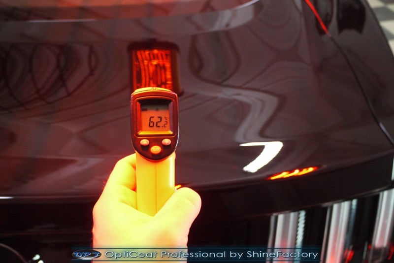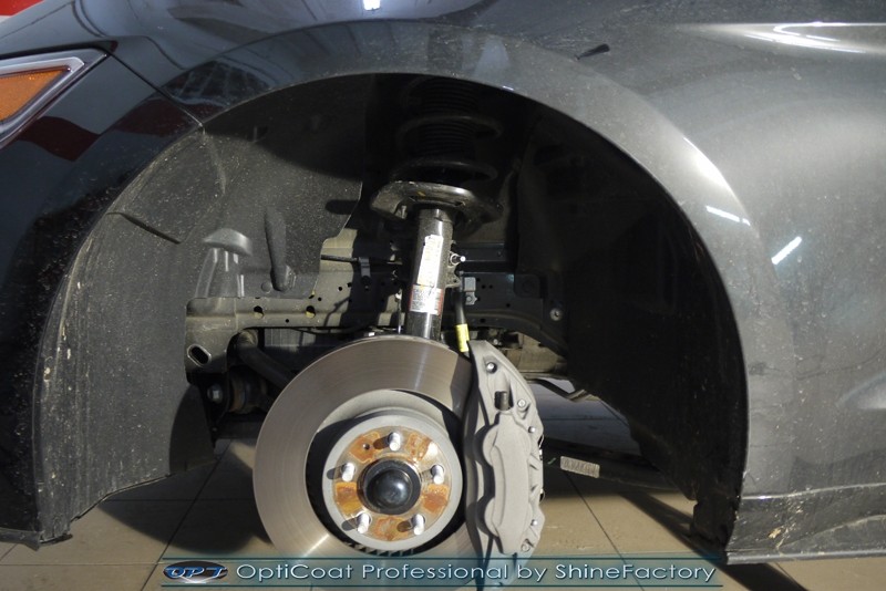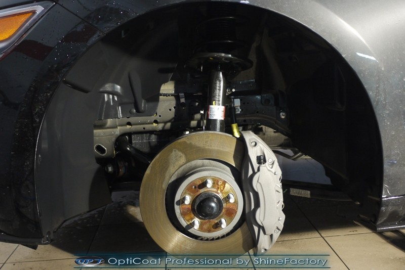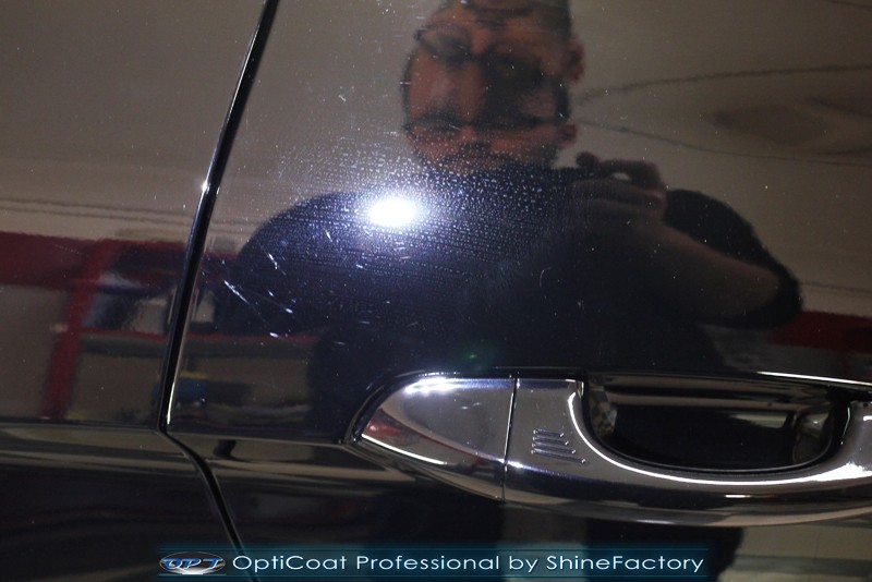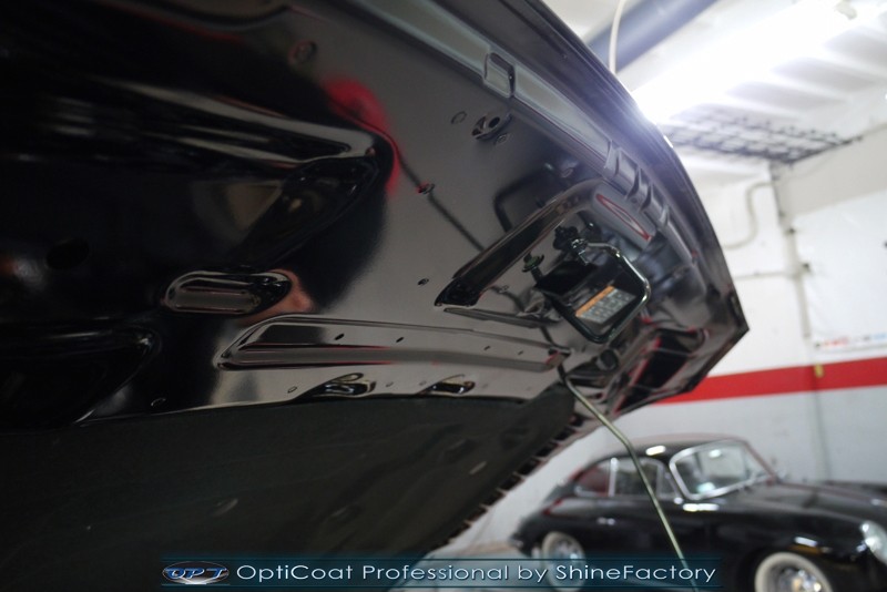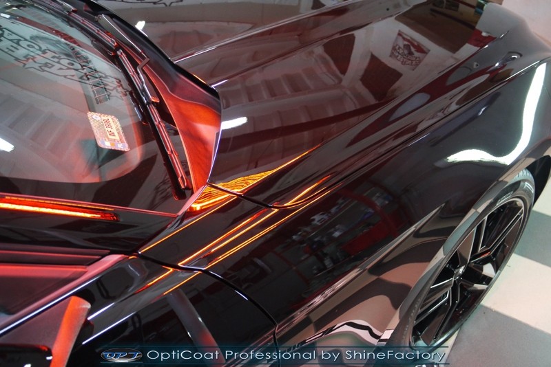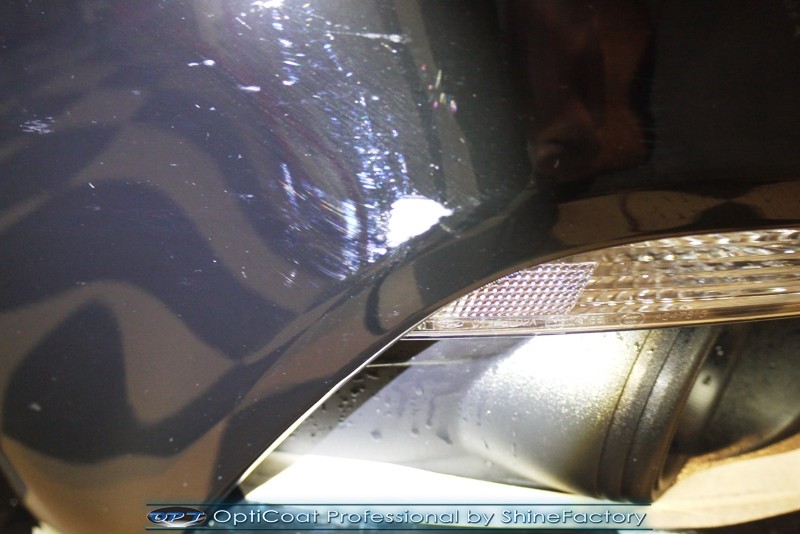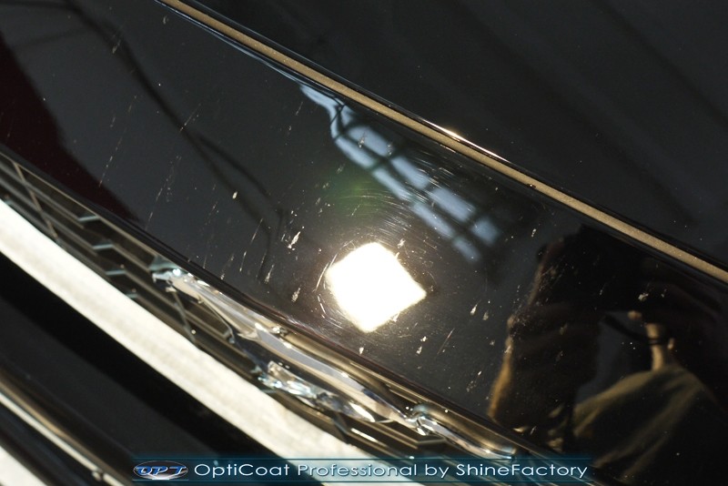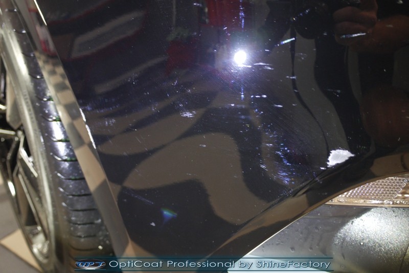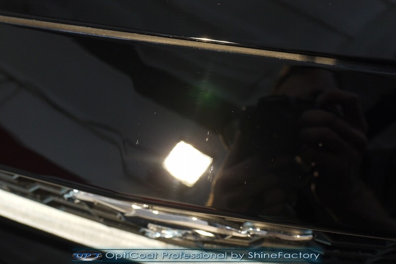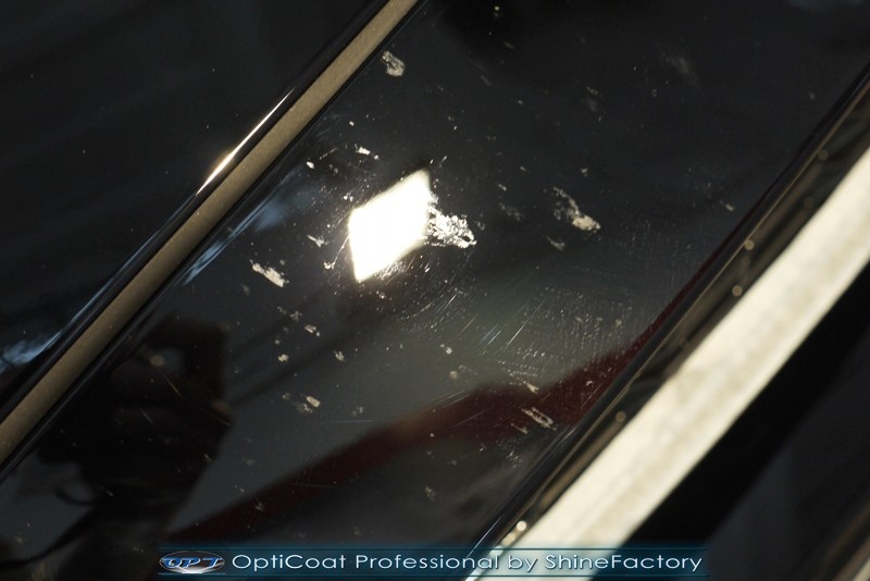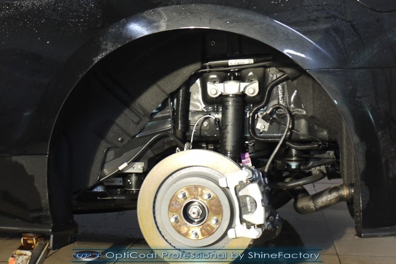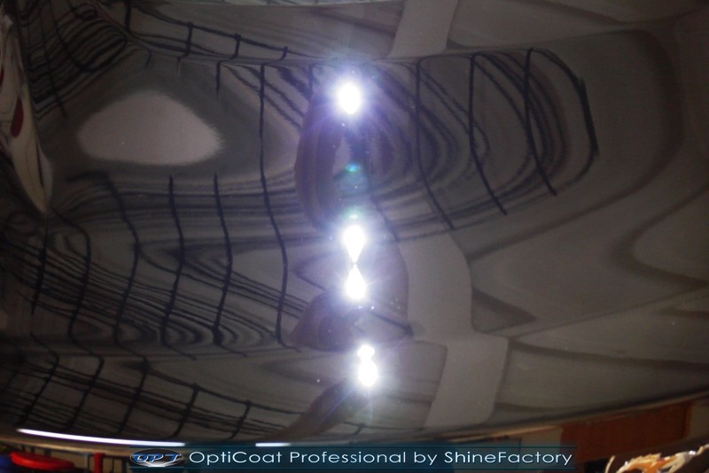 Auto trafiło do nas w celu bezkompromisowego zabezpieczenia najlepszą powłoką ceramiczną 9H+ Optimum Professional. Oczywiście, prócz samego lakieru, mieliśmy zająć się każdym innym detalem auta. Prace zaczęliśmy od detailingu nadkoli oraz wnętrza felg. Następnie całe auto zostało dokładnie oczyszczone z zabrudzeń oraz pozostawionych transportowych zabezpieczeń. Następnie przed aplikacją powłoki musieliśmy niestety już dość mocno skorygować piękny lakier z bardzo delikatnym ziarnem metalicznym, usunęliśmy mikrorysy oraz zajęliśmy się fontem auta z masą b. głębokich wżerów po owadach, które zniszczyły w kilka dni niezabezpieczony niczym lakier auta. Następnie, po dokładnym przygotowaniu i odtłuszczeniu powierzchni przeszliśmy do aplikacji pakietu powłok ochronnych. Zabezpieczyliśmy felgi kwarcem, szyby powłoką hydrofobową, na wszelkie inne detale oraz oczywiście lakier trafiła wielowarstwowa dwuskładnikowa powłoka ceramiczna 9H+, certyfikowana przez TUV Optimum Professional/GlossCoat. Finalnie wszystkie powłoki zostały utwardzone lampami IR w odpowiedniej temperaturze. Oczywiście, także całe wnętrze w każdym detalu, wraz ze skórami, zostało zabezpieczone wybranymi z rynku kosmetykami oraz woskami. Po kilkudniowym zabiegu auto zyskało perfekcyjną prezentację godną temu coupe oraz trwałą mocną ochronę. Zapraszamy do fotorelacji z prac nad ciekawym autem!