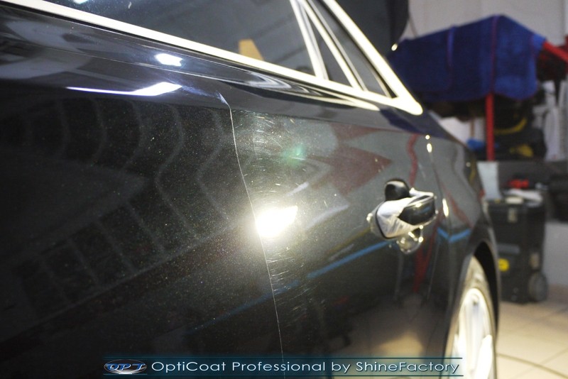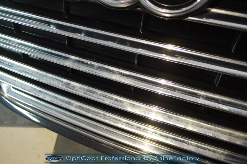 Tym razem zapraszamy do fotorelacji z doprowadzenia powrotnego idealnego stanu Audi A8 po kilku latach mocnego użytkowania. Autem zajęliśmy się maksymalnie kompleksowo, rozpoczęliśmy od zajęcia się nadkolami oraz wnętrzem kół. Następnie całe nadwozie auta zostało bardzo dokładnie i dogłębnie oczyszczone. Lakier, przez klika dni poddawany był korekcie czyli usunięciu wszelkich niedoskonałości (mikrorysy, zmatowienia, wżery po owadach i ptasich odchodach) aby uzyskać maksymalnie dobry końcowy efekt wizualny. W między czasie kilkudniowych prac z lakierem zajmowaliśmy się także bardzo dokładnie mocno zabrudzonym wnętrzem, wypraliśmy ekstrakcyjnie podłogi, oczyściliśmy i zabezpieczyliśmy skóry i wszelkie inne elementy wnętrza. Nie zapomnieliśmy, także zająć się komorą silnika. Po długiej korekcie lakieru, zajęciu się wszystkimi detalami na zewnątrz jak skorygowanie kloszy lamp, elementów dekoracyjnych, chromowanych itp całe auto zostało zabezpieczone pakietem powłok ceramicznych, głównie powłoką 9H++ OptiCoat Professional z dodatkową warstwą GlossCoat, co zapewniło maksymalną możliwą ochronę oraz perfekcyjny wygląd. Teraz utrzymanie auta w idealnej prezentacji będzie banalnie łatwe. Zapraszamy do bardzo szerokiej fotorelacji.