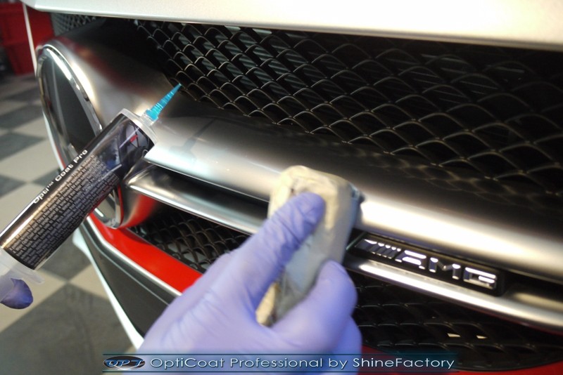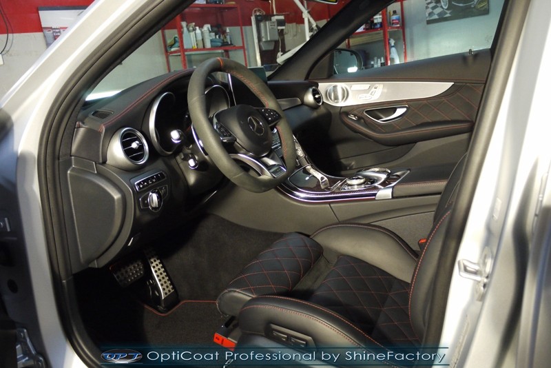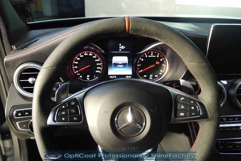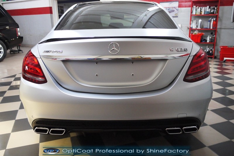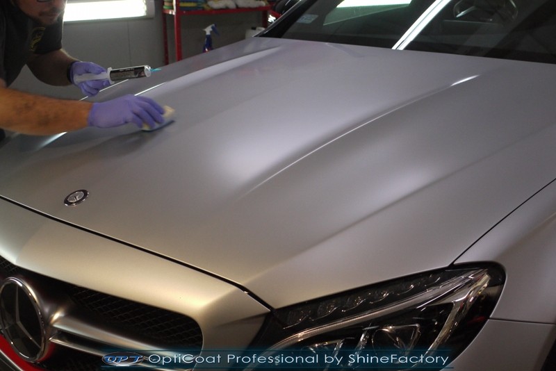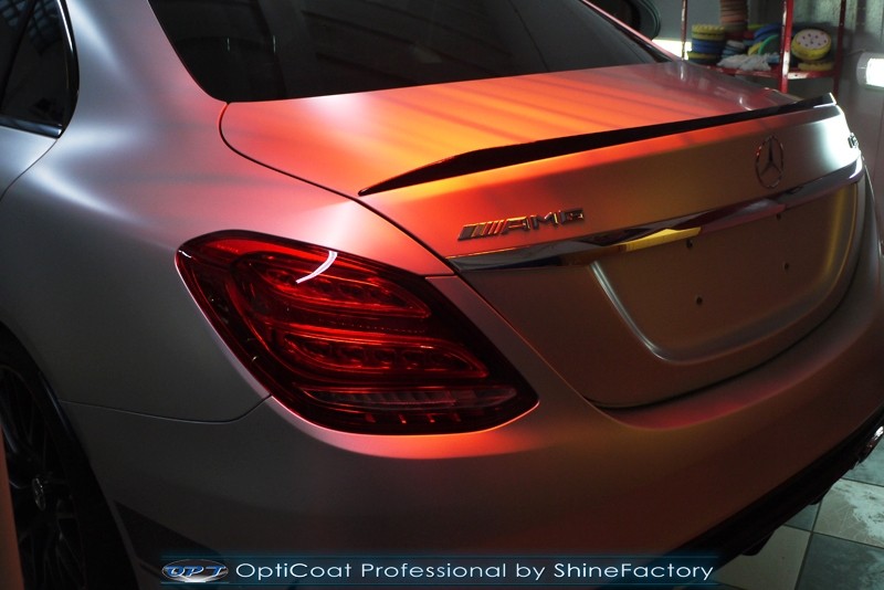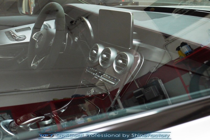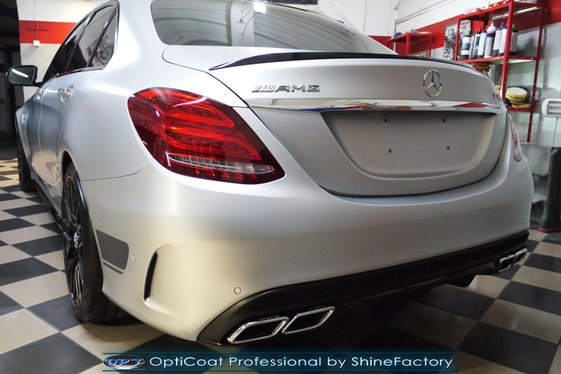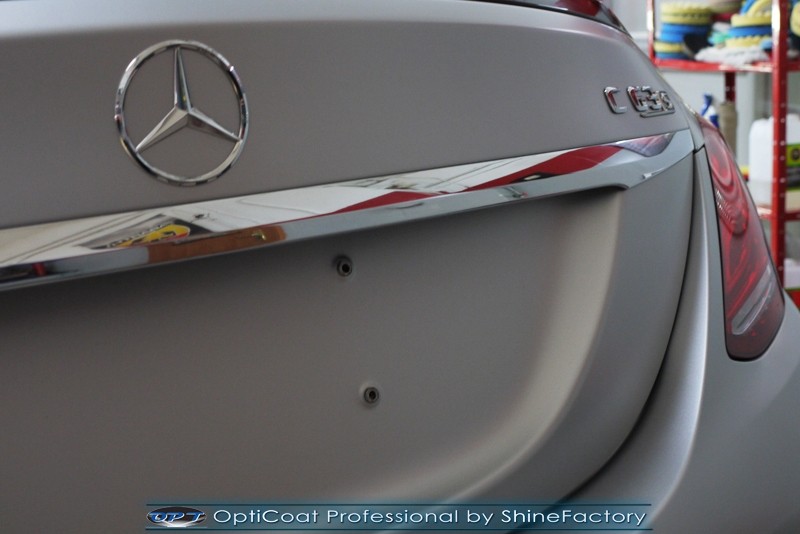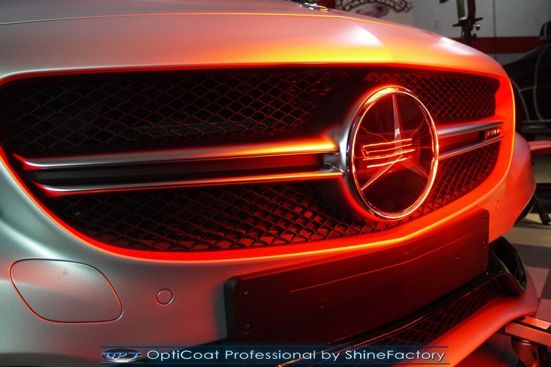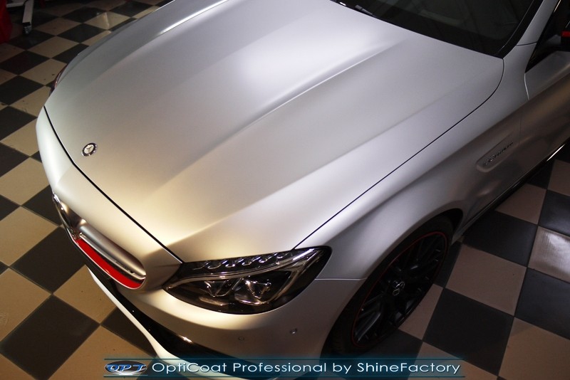 Witamy! Dziś zapraszamy do szerokiej fotorelacji z zabezpieczenia najnowszego modelu Mercedesa C63 AMG S Edition 1 w specyficznym matowym lakierze IridiumSilber. Wymagane było maksymalnie dobre zabezpieczenie każdego detalu auta w pakiecie NewShine. Zdecydowaliśmy się zabezpieczyć każdy element auta (szyby, chromy, felgi, klosze lamp, detale itp) najlepszymi powłokami ceramicznymi/kwarcowymi z rynku, sam lakier testowaną w laboratoryjny sposób przez TUV powłoką ceramiczną OptiCoat Professional. Oczywiście najpierw auto musiało zostać w specjalistyczny sposób dokładnie oczyszczone i poprawnie przygotowane pod aplikację powłoki. Następnie w po precyzyjnym zaaplikowaniu powłoki OC PRO lakier pokryliśmy dodatkową warstwą GlossCoat która zapewniła maksymalny efekt działania, śliskość lakieru na wiele lat. Finalnie pakiet powłok został wygrzany w odpowiedniej temperaturze lampami IR. Oczywiście całe wnętrze zostało zabezpieczone różnymi kosmetykami w najdrobniejszym detalu wraz z zaimpregnowaniem delikatnych skór. Nie zapomnieliśmy, także o zabezpieczeniu nadkoli, wnętrza felg czy komory silnika. Mercedes po kilku dniach prac nabrał maksymalnej możliwej ochrony co zapewni zminimalizowane brudzenie oraz banalne utrzymanie auta w perfekcyjnym stanie na wiele lat. Zapraszamy do szerokiej fotorelacji i zdjęć efektu końcowego!