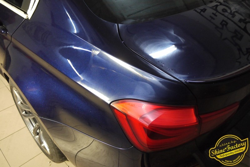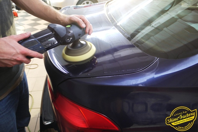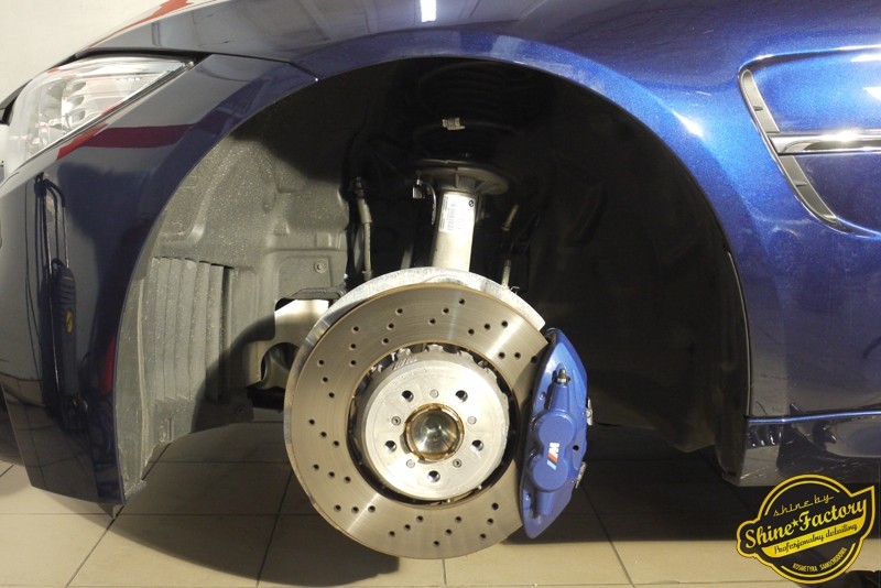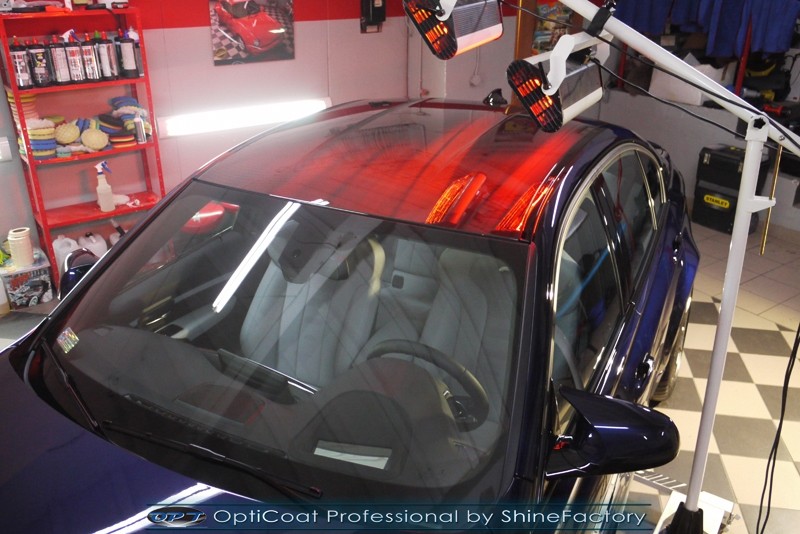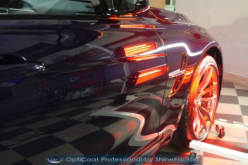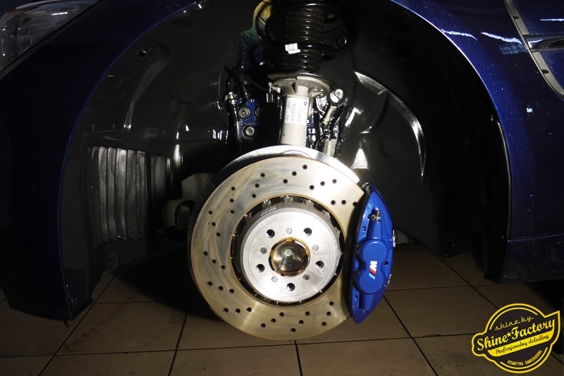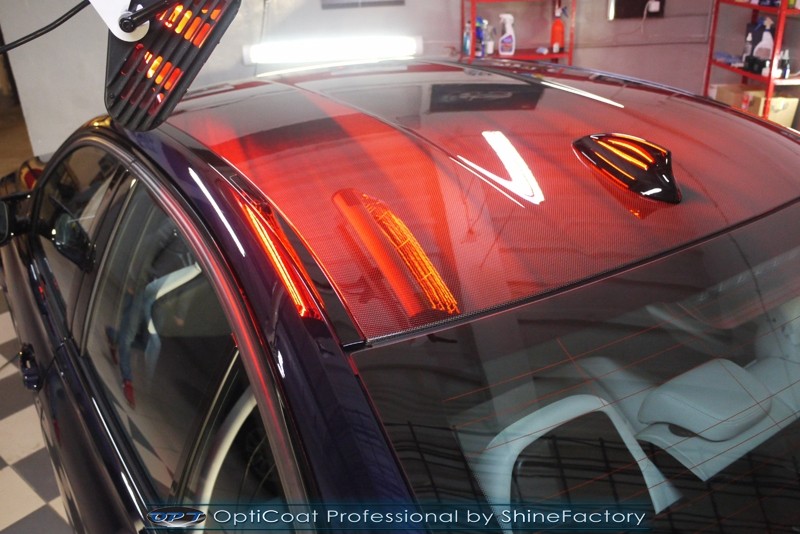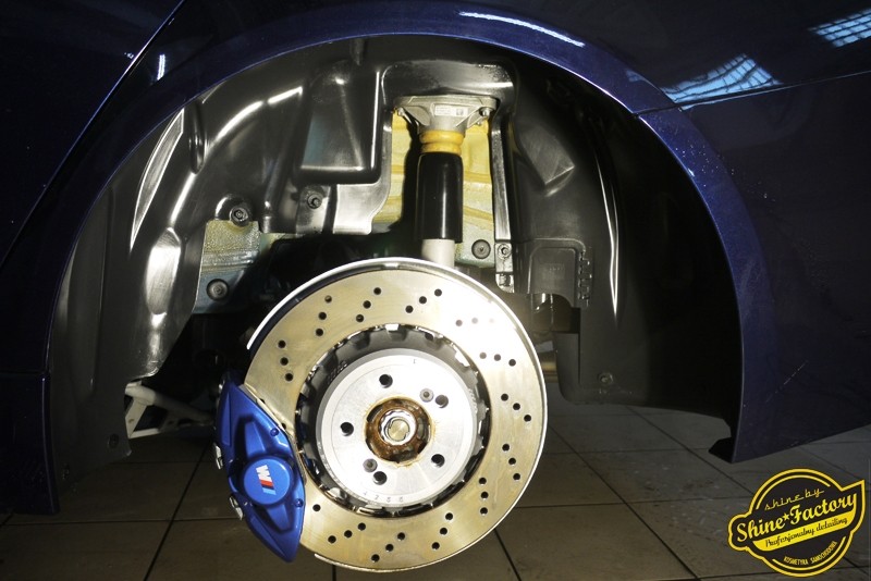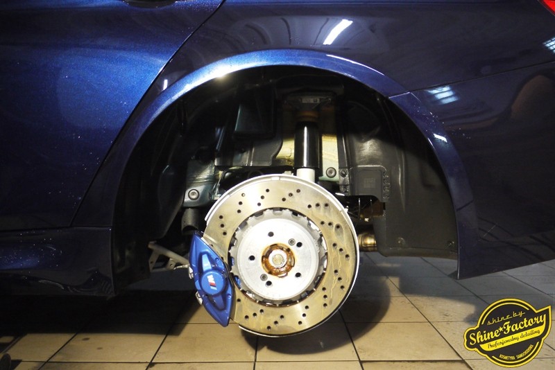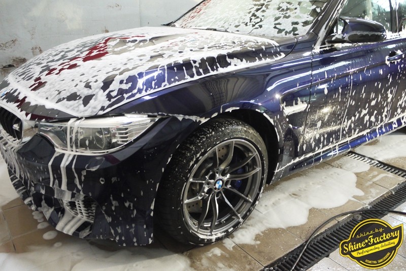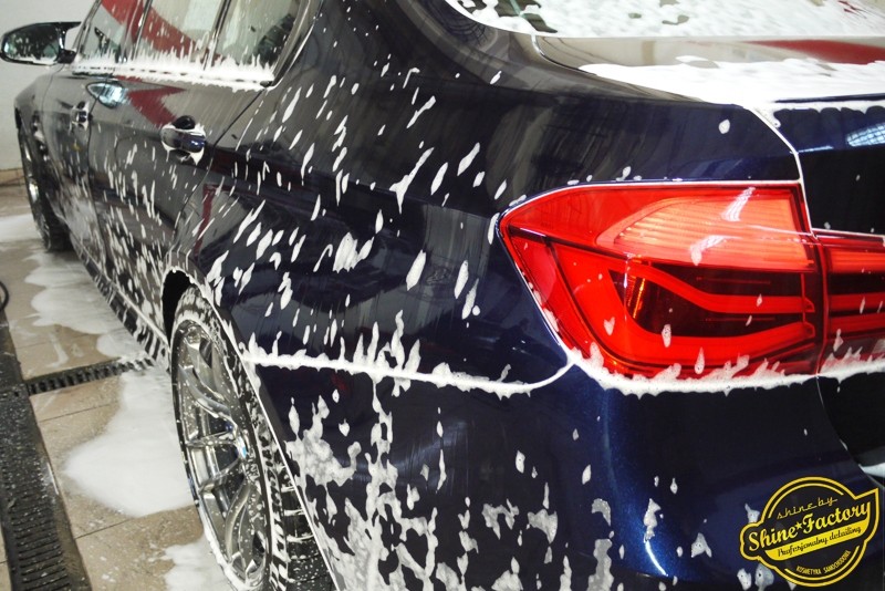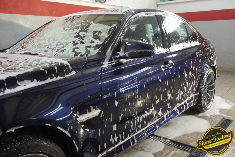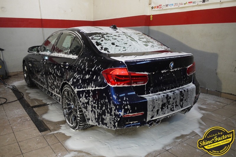 Witamy ponownie! Dziś pragniemy przedstawić Państwu fotorelację z prac nad najnowszym BMW M3. Ten piekielnie piękny i szybki sedan trafił do nas w celu zabezpieczenia pakietem powłok ochronnych. Pierwszorzędnie zdjęliśmy z auta koła aby dokładnie przeprowadzić detailing nadkoli, zacisków hamulcowych oraz wnętrza felg. Następnie po dogłębnym oczyszczeniu (już ze sporej ilości naleciałości) oraz inspekcji okazało się, iż niestety musimy delikatnie poprawić stan lakieru przed położeniem ceramiki. Po korekcie i doprowadzeniu do ideału tego pięknego indywidualnego koloru lakieru zaaplikowaliśmy powłokę ceramiczną certyfikowaną przez TUV- Optimum Professional. Następnie zabezpieczyliśmy wszelkie inne detale jak felgi auta, el. nielakierowane, szyby powłoką hydrofobową, klosze lamp itp itd. Finalnie całe auto zostało wygrzane lampami IR. Oczywiście całe wnętrze zostało zabezpieczone różnymi kosmetykami w najdrobniejszym detalu wraz z zaimpregnowaniem delikatnych skór. Nie zapomnieliśmy także o zabezpieczeniu komory silnika oraz nawoskowania robiącej wrażenie karbonowej rozpórki. M3 po kilku dniach prac nabrało krystalicznego połysku, prezentacji idealnie nowego auta oraz co najważniejsze najlepszej ochrony co zapewni zminimalizowane brudzenie oraz banalne utrzymanie auta w perfekcyjnym stanie. Zapraszamy do szerokiej fotorelacji i zdjęć efektu końcowego!