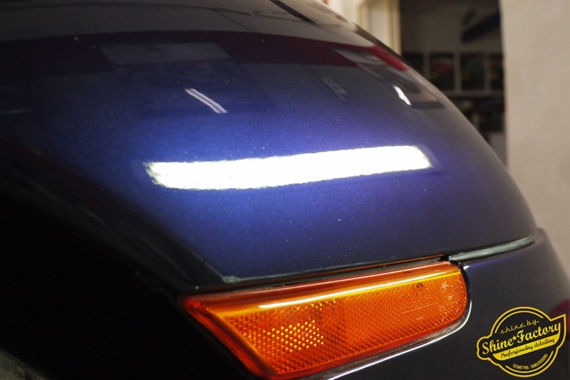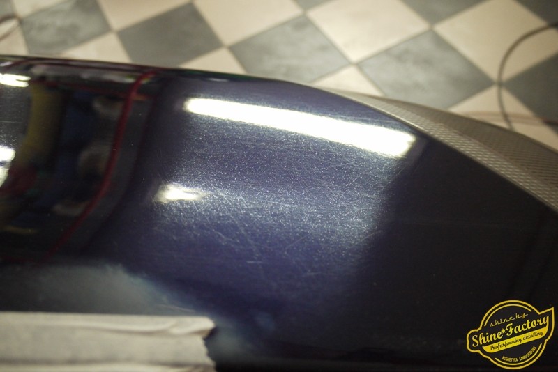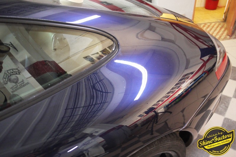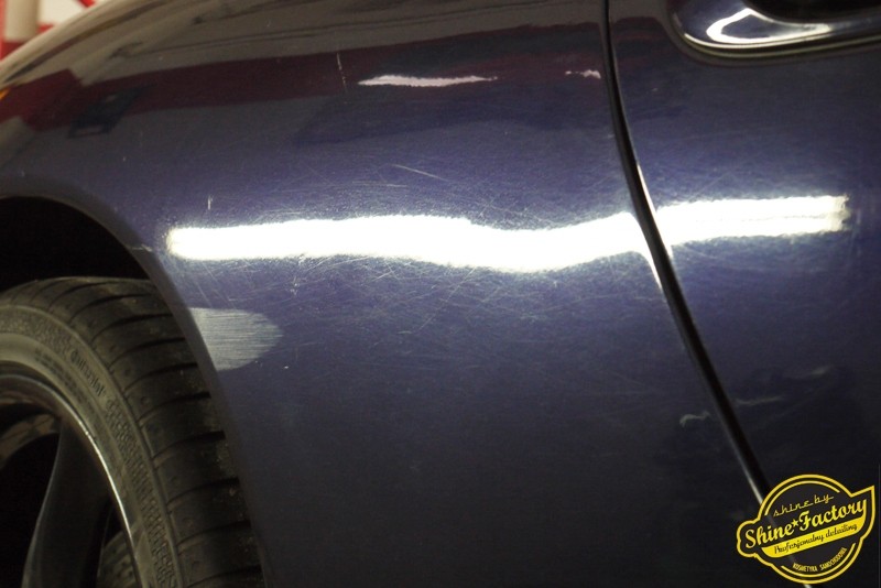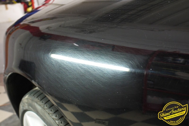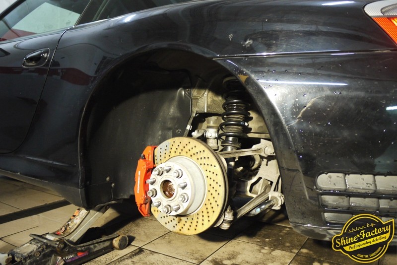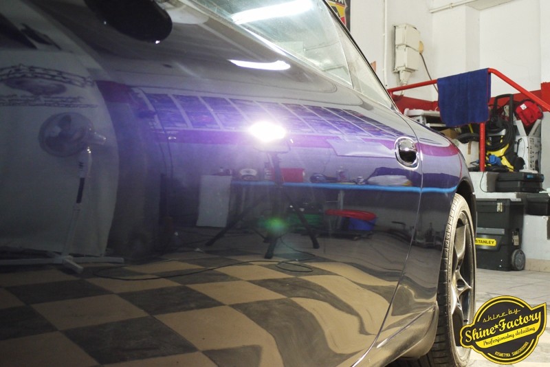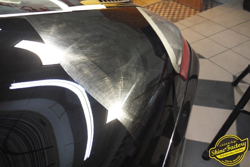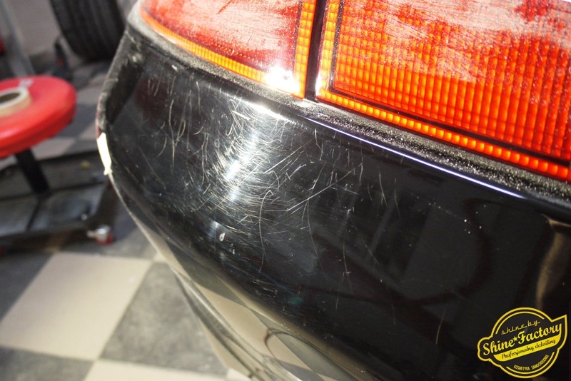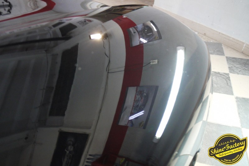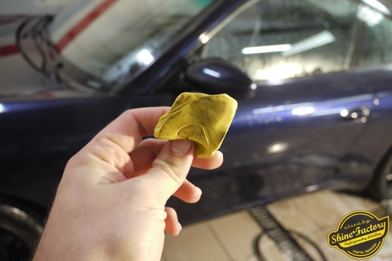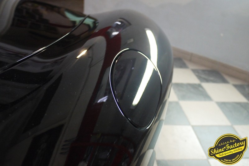 Tym razem chcemy zaprosić Was do pełnej fotorelacji z bardzo czaso i pracochłonnego projektu nad Porsche 996. Auto dotarło do nas w straszliwym stanie, czarny lakier stał się szaro-matowy, posiadał mnóstwo płytszych i głębszych zarysowań oraz ogólne bardzo mocne zmatowienie. Dość rzadki widok, wymagający b. dużego doświadczenia w pracach nad renowacją. Naszym zadaniem było przeprowadzenie maksymalnego pakietu prac, oczywiście doprowadzenie lakieru do idealnego stanu oraz zabezpieczenie najlepszym pakietem powłok ceramicznych. Standardowo rozpoczęliśmy od zdjęcia kół, detailingu nadkoli oraz felg oraz dogłębnego oczyszczenia całego nadwozia. Następnie przeszliśmy do kilkudniowej wielostopniowej korekty zmasakrowanego lakieru oraz wszystkich innych możliwych detali auta jak plastiki, klosze lamp, uszczelki itp. Po usunięciu wszelkich niedoskonałości na Porsche zaaplikowaliśmy pakiet powłok, sam lakier został zabezpieczony naszą topową powłoką Optimum Professional certyfikowaną przez TUV, oczywiście finalnie całe auto zostało utwardzone specjalnymi promiennikami. W międzyczasie prac z lakierem zajmowaliśmy się, także bardzo dokładnie mocno zabrudzonym wnętrzem, wypraliśmy ekstrakcyjnie podłogi, oczyściliśmy i zabezpieczyliśmy skóry i wszelkie inne elementy wnętrza. Nie zapomnieliśmy, także zająć się komorą silnika. Zapraszamy do obejrzenia pełnej fotorelacji z metamorfozy tego auta!