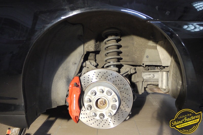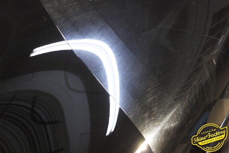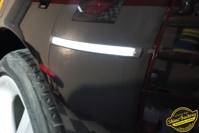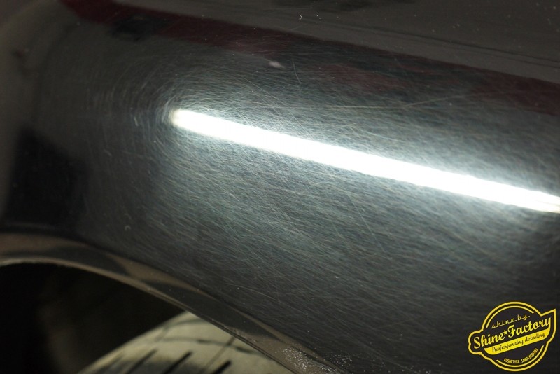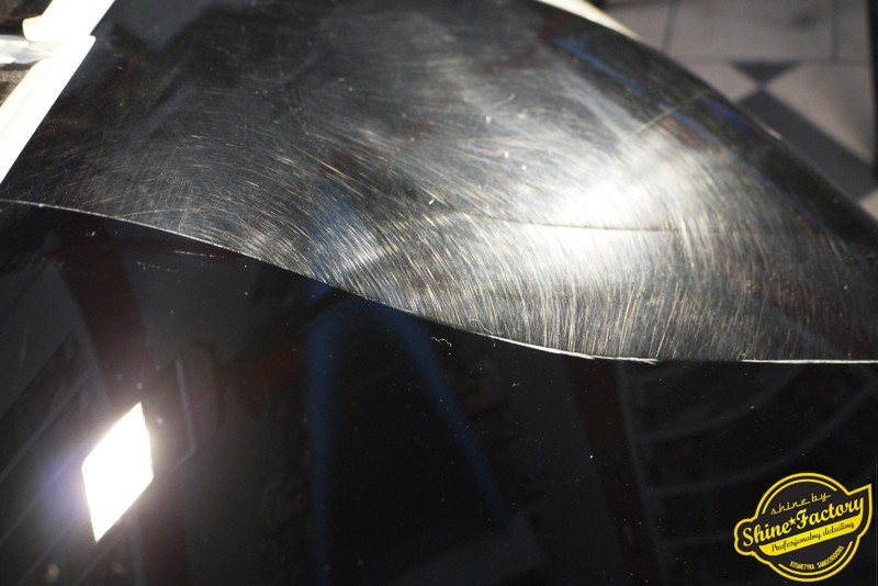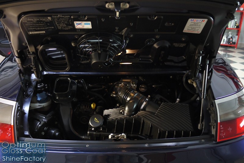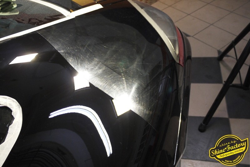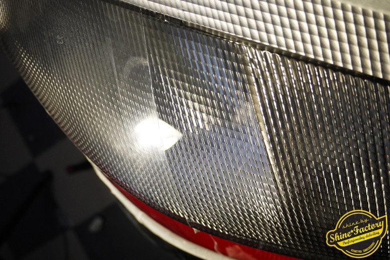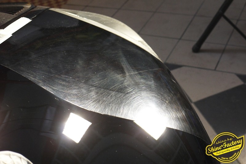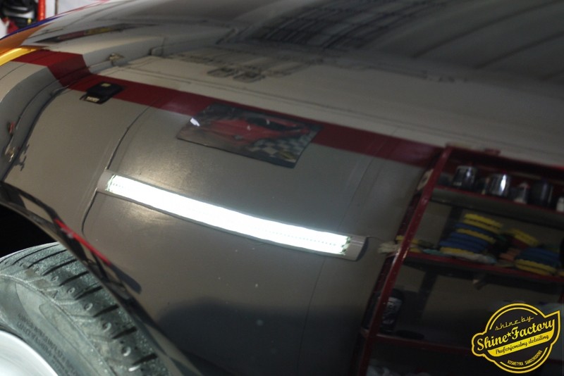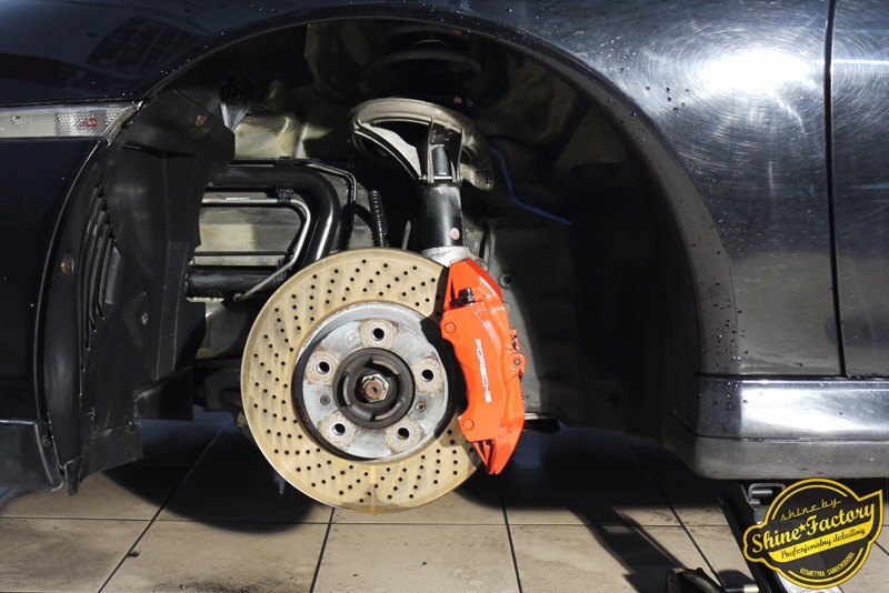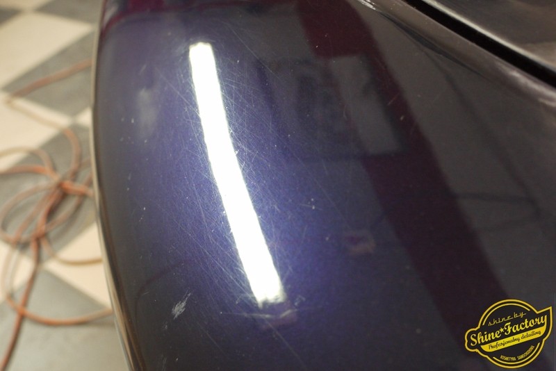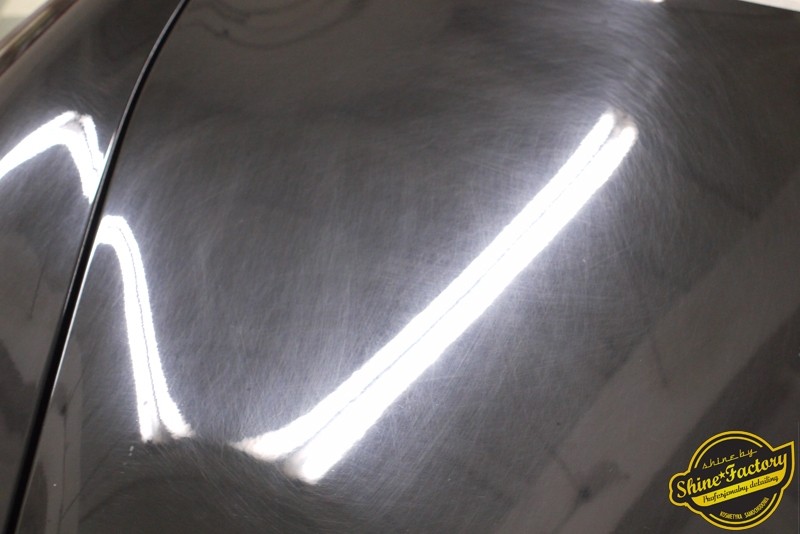 Tym razem chcemy zaprosić Was do pełnej fotorelacji z bardzo czaso i pracochłonnego projektu nad Porsche 996. Auto dotarło do nas w straszliwym stanie, czarny lakier stał się szaro-matowy, posiadał mnóstwo płytszych i głębszych zarysowań oraz ogólne bardzo mocne zmatowienie. Dość rzadki widok, wymagający b. dużego doświadczenia w pracach nad renowacją. Naszym zadaniem było przeprowadzenie maksymalnego pakietu prac, oczywiście doprowadzenie lakieru do idealnego stanu oraz zabezpieczenie najlepszym pakietem powłok ceramicznych. Standardowo rozpoczęliśmy od zdjęcia kół, detailingu nadkoli oraz felg oraz dogłębnego oczyszczenia całego nadwozia. Następnie przeszliśmy do kilkudniowej wielostopniowej korekty zmasakrowanego lakieru oraz wszystkich innych możliwych detali auta jak plastiki, klosze lamp, uszczelki itp. Po usunięciu wszelkich niedoskonałości na Porsche zaaplikowaliśmy pakiet powłok, sam lakier został zabezpieczony naszą topową powłoką Optimum Professional certyfikowaną przez TUV, oczywiście finalnie całe auto zostało utwardzone specjalnymi promiennikami. W międzyczasie prac z lakierem zajmowaliśmy się, także bardzo dokładnie mocno zabrudzonym wnętrzem, wypraliśmy ekstrakcyjnie podłogi, oczyściliśmy i zabezpieczyliśmy skóry i wszelkie inne elementy wnętrza. Nie zapomnieliśmy, także zająć się komorą silnika. Zapraszamy do obejrzenia pełnej fotorelacji z metamorfozy tego auta!