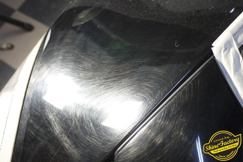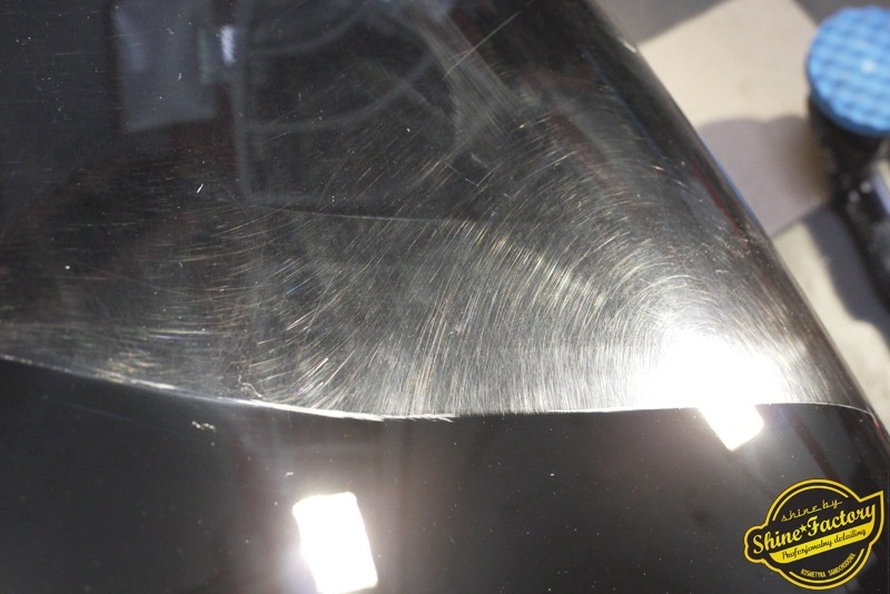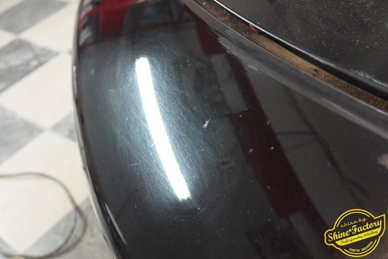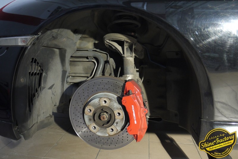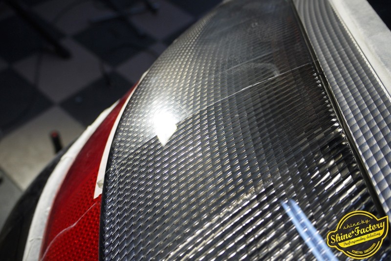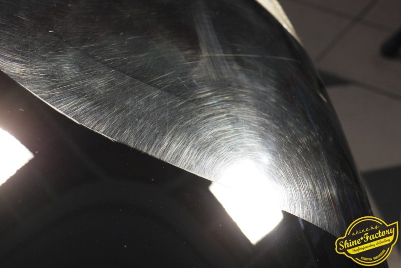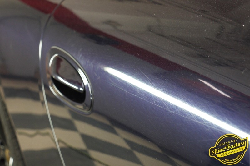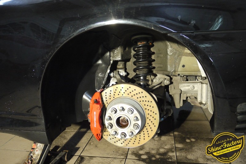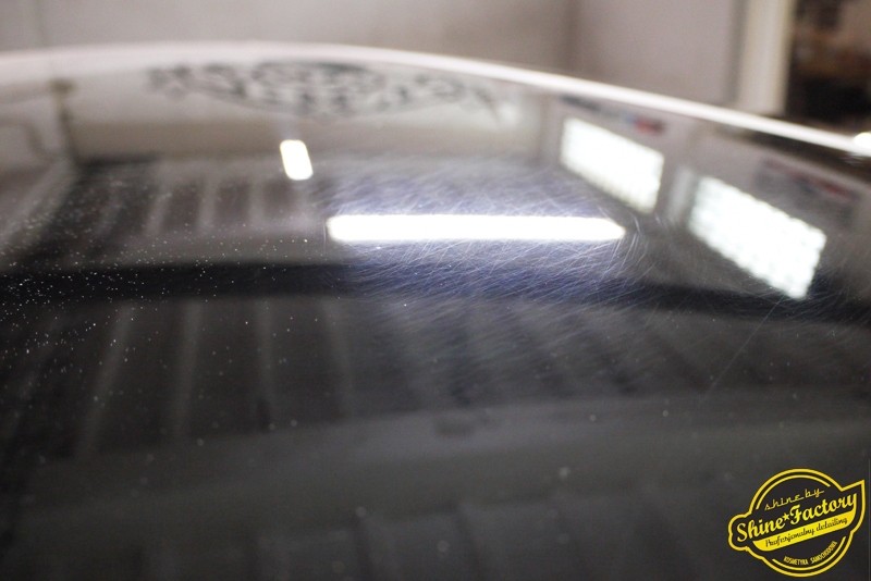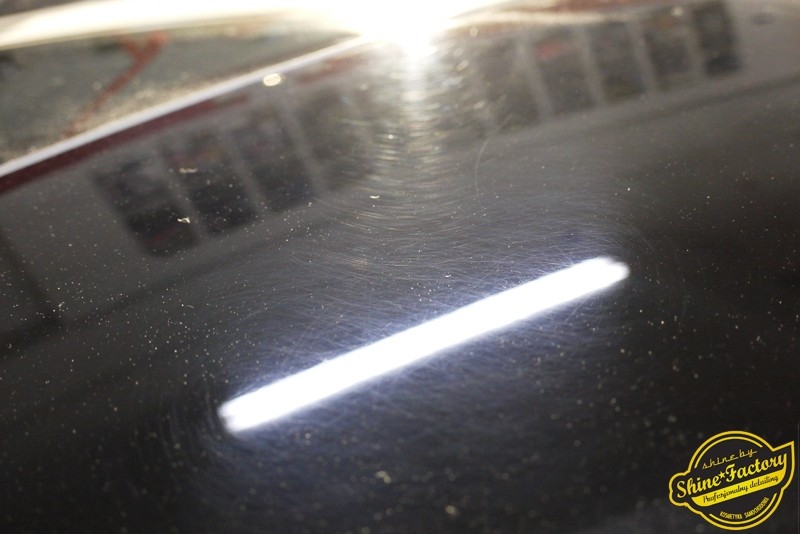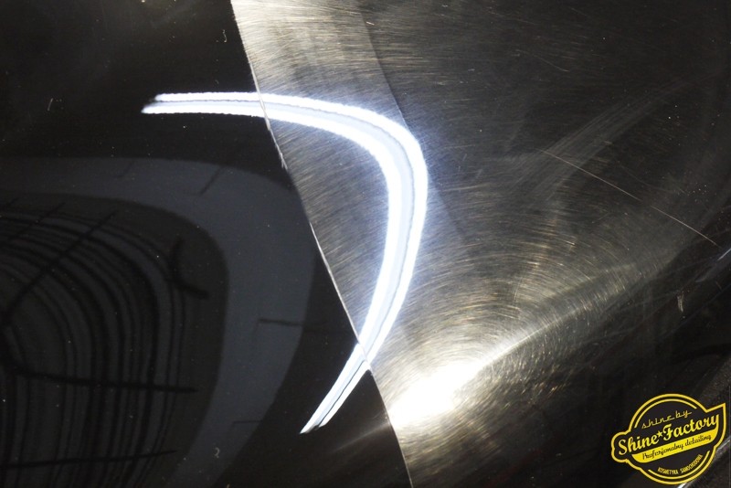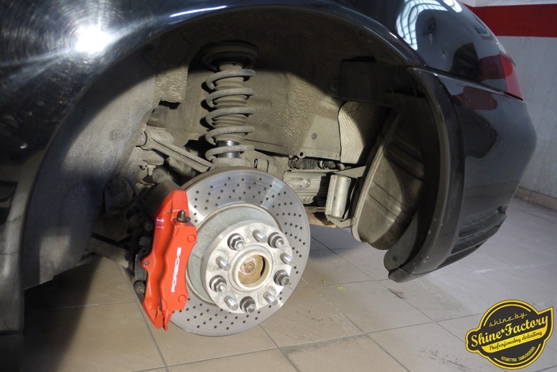 Tym razem chcemy zaprosić Was do pełnej fotorelacji z bardzo czaso i pracochłonnego projektu nad Porsche 996. Auto dotarło do nas w straszliwym stanie, czarny lakier stał się szaro-matowy, posiadał mnóstwo płytszych i głębszych zarysowań oraz ogólne bardzo mocne zmatowienie. Dość rzadki widok, wymagający b. dużego doświadczenia w pracach nad renowacją. Naszym zadaniem było przeprowadzenie maksymalnego pakietu prac, oczywiście doprowadzenie lakieru do idealnego stanu oraz zabezpieczenie najlepszym pakietem powłok ceramicznych. Standardowo rozpoczęliśmy od zdjęcia kół, detailingu nadkoli oraz felg oraz dogłębnego oczyszczenia całego nadwozia. Następnie przeszliśmy do kilkudniowej wielostopniowej korekty zmasakrowanego lakieru oraz wszystkich innych możliwych detali auta jak plastiki, klosze lamp, uszczelki itp. Po usunięciu wszelkich niedoskonałości na Porsche zaaplikowaliśmy pakiet powłok, sam lakier został zabezpieczony naszą topową powłoką Optimum Professional certyfikowaną przez TUV, oczywiście finalnie całe auto zostało utwardzone specjalnymi promiennikami. W międzyczasie prac z lakierem zajmowaliśmy się, także bardzo dokładnie mocno zabrudzonym wnętrzem, wypraliśmy ekstrakcyjnie podłogi, oczyściliśmy i zabezpieczyliśmy skóry i wszelkie inne elementy wnętrza. Nie zapomnieliśmy, także zająć się komorą silnika. Zapraszamy do obejrzenia pełnej fotorelacji z metamorfozy tego auta!
