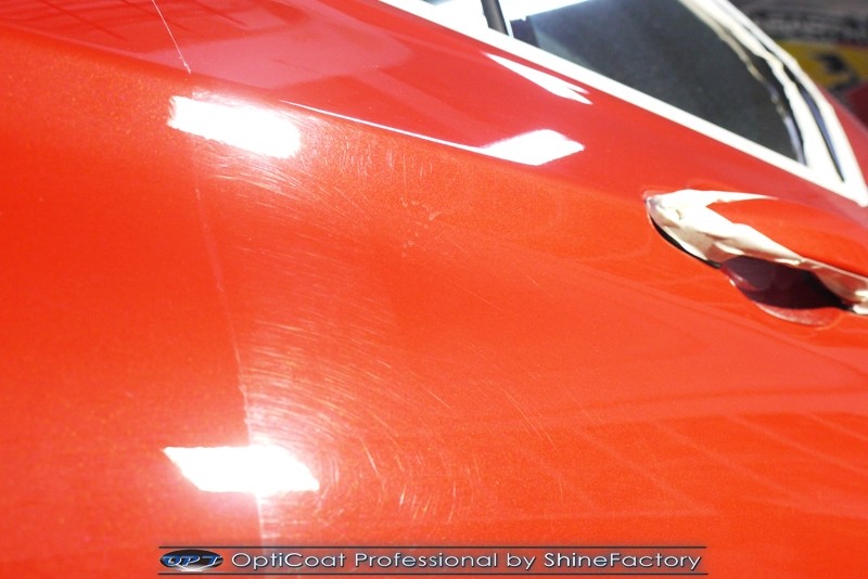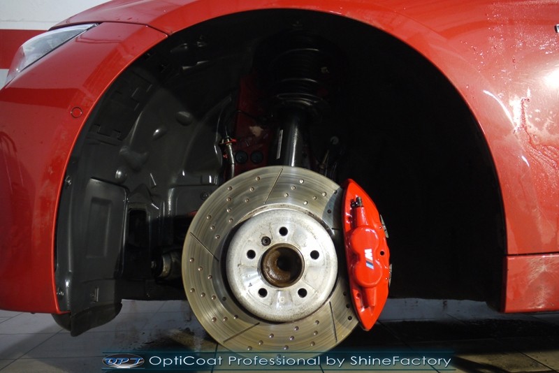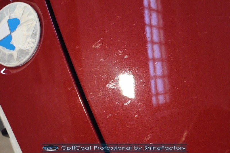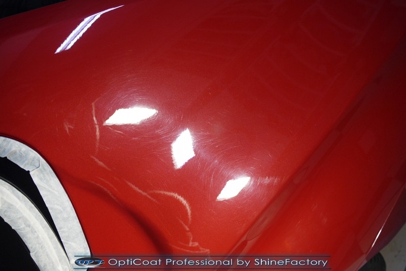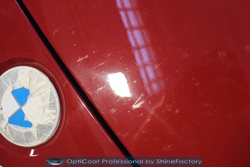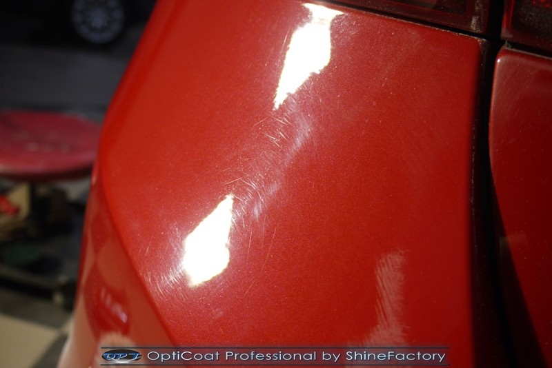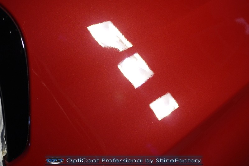 Tym razem chcemy zaprosić Państwa do fotorelacji z prac nad BMW serii 3 w czerwonym metalicznym kolorze, który po pracy nabrał niewiarygodnego efektu wizualnego. Oczywiście kilkudniowe prace zaczęliśmy od ściągnięcia kół, detailingu wnętrza felg oraz nadkoli. Następnie po dogłębnym oczyszczeniu nadwozia przeszliśmy do gruntownej korekty mocno zniszczonego lakieru i innych detali jak klosze lamp. Po kilku długich dniach usunęliśmy wszelkie niedoskonałości, zmatowienie, mniejsze i większe rysy dzięki czemu uzyskaliśmy klarowny i przejrzysty lakier z mocno widocznym ziarnem metaliku. Finalnie pokryliśmy auto prawdopodobnie najlepszą powłoka ochronna na rynku, testowaną przez TUV ceramiką OptiCoat Professional 9H++ oraz dodatkową warstwą GlossCoat. Zajęliśmy się także komorą silnika oraz wnętrzem auta gdzie oczyściliśmy i zabezpieczyliśmy wszystkie mocno zabrudzone elementy głównie skupiając uwagę na skórach. Po zajęciu się i zabezpieczeniu pakietem powłok wszystkich innych elementów jak klosze lamp, el. chromowane czy nielakierowany, felgi itp auto zyskało perfekcyjny wygląd i trwałą ochronę. Zapraszamy do bardzo szerokiej i ciekawej fotorelacji.