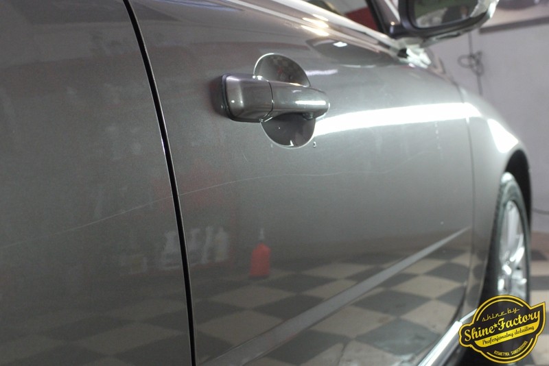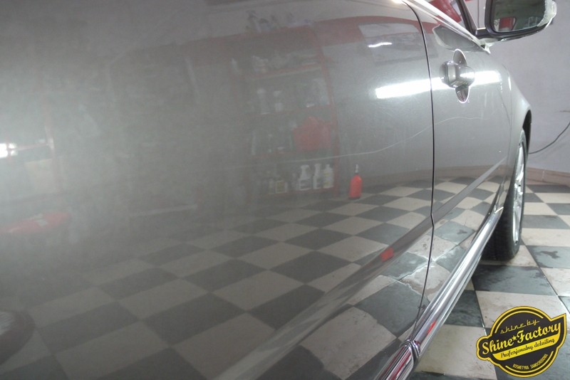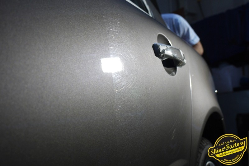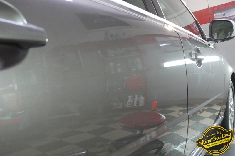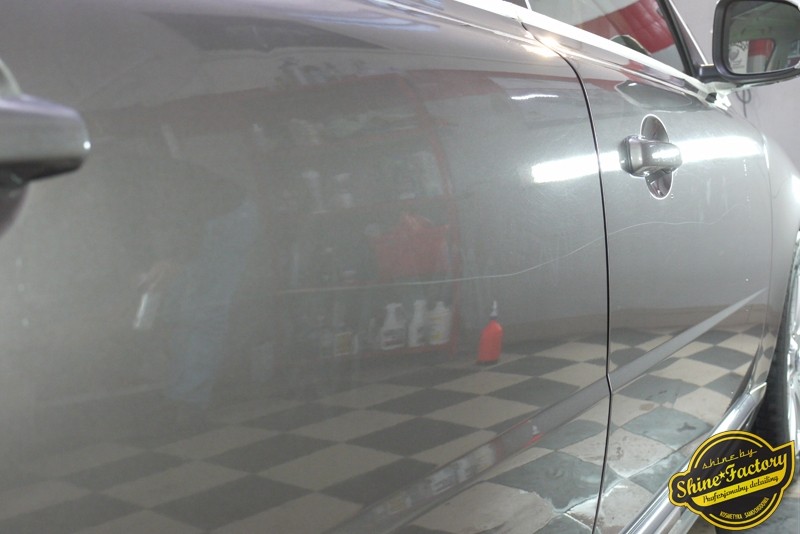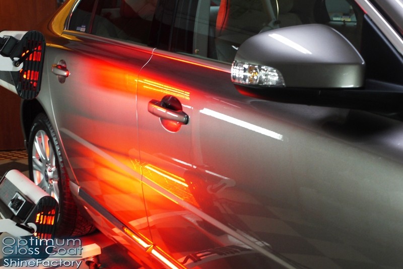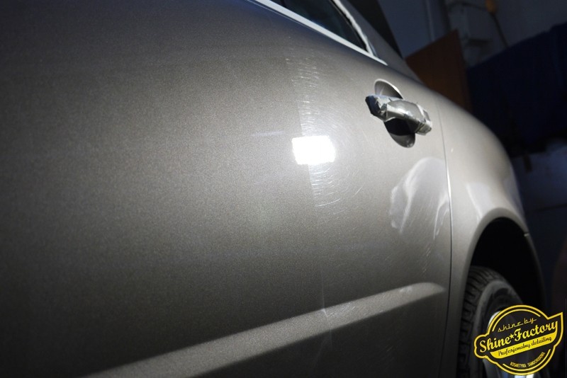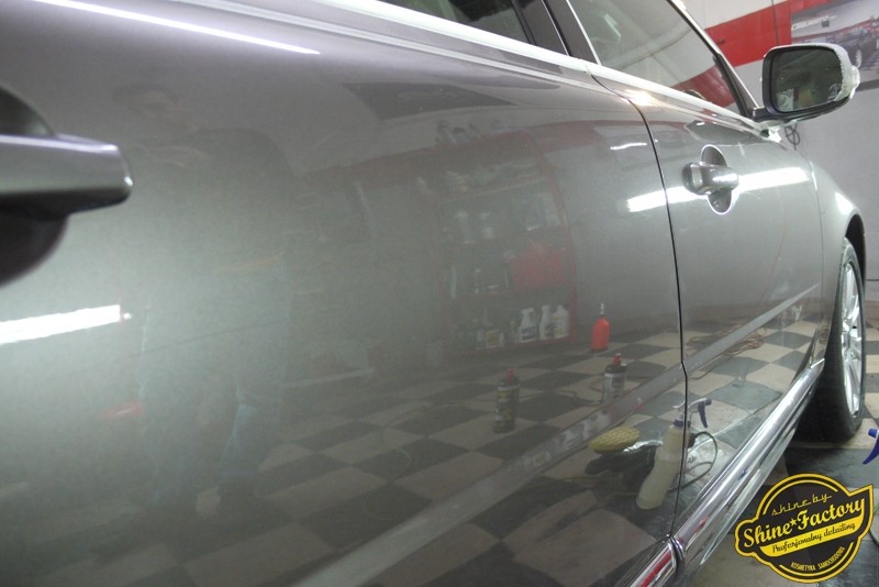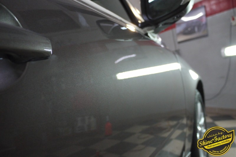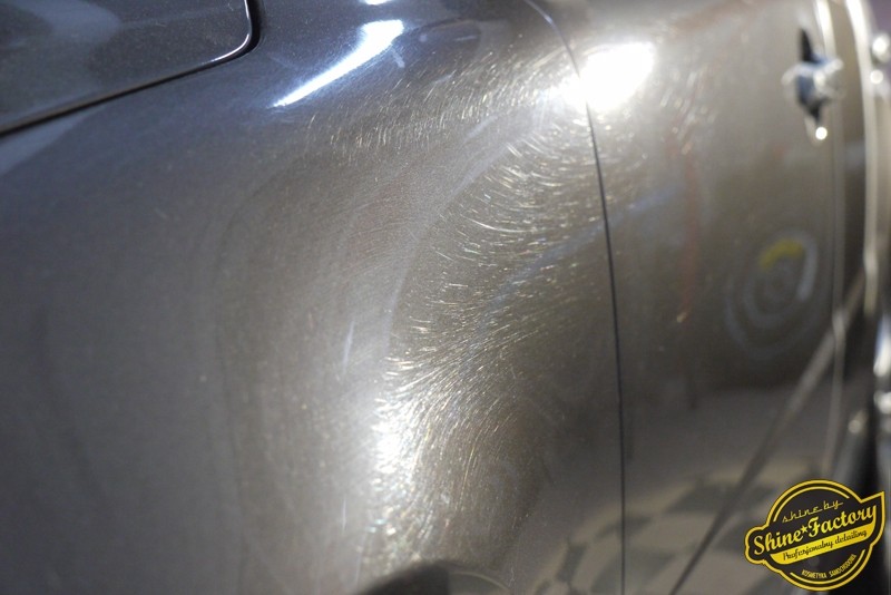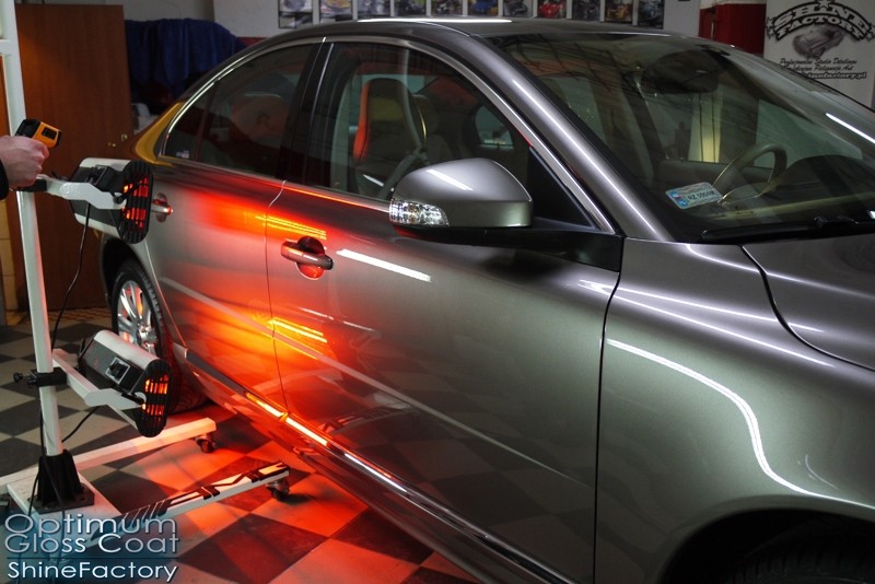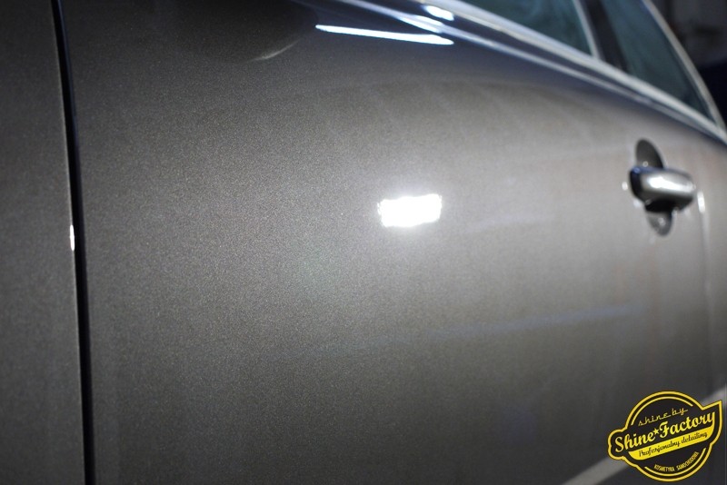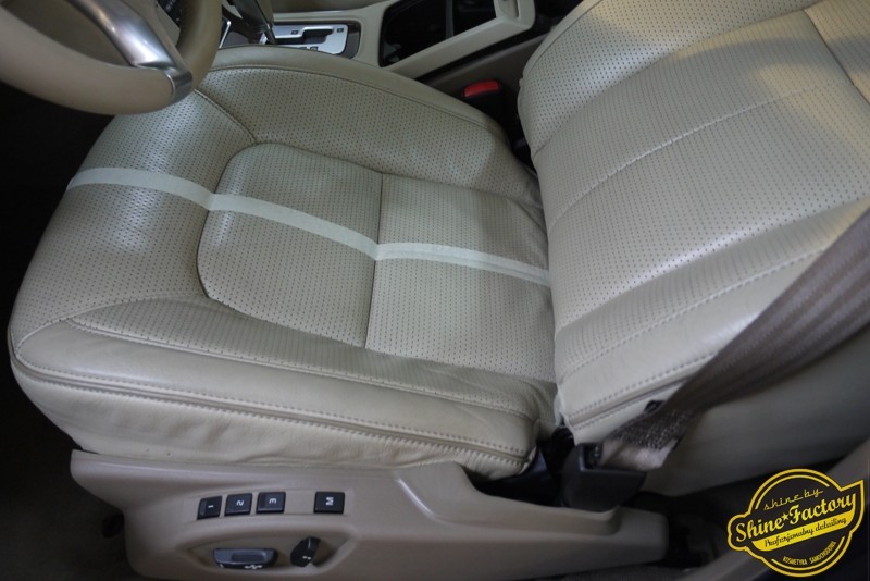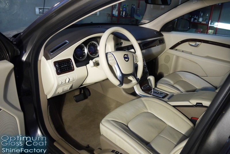 Volvo S80 zagościło do nas zaraz po zakupie w celu przeprowadzenia określonych prac, między innymi renowacji zniszczonych skór oraz dokładnego detailingu wnętrza, doprowadzenia do ideału zużytego lakieru, usunięcia kilku głębszych zarysowań oraz zabezpieczenia na przyszłe lata użytkowania. Pierwszorzędnie zabraliśmy się za renowację skóry na kierownicy, podłokietniku oraz gałce zmiany biegów gdzie wytarta skóra została odnowiona i polakierowana pod fabryczny kolor. Następnie po dokładnym oczyszczeniu nadwozia przeprowadziliśmy pełna korektę lakieru usuwając wszystkie niedoskonałości, mikrorysy/zmatowienia itp, zniwelowaliśmy maksymalnie także głęboką rysę idącą przez cały prawy bok auta. Osobnym rozdziałem był dokładny detailing całego jasnego wnętrza, skóry i wszystkie inne elementy zostały oczyszczone i zaimpregnowane wybranymi z rynku kosmetykami. W celu finalnej ochrony, każdy elementy z zewnątrz zaaplikowaliśmy pakiet powłok ochronnych, sam lakier został zabezpieczony powłoką Optimum GlossCoat. Zapraszamy do ciekawej relacji.