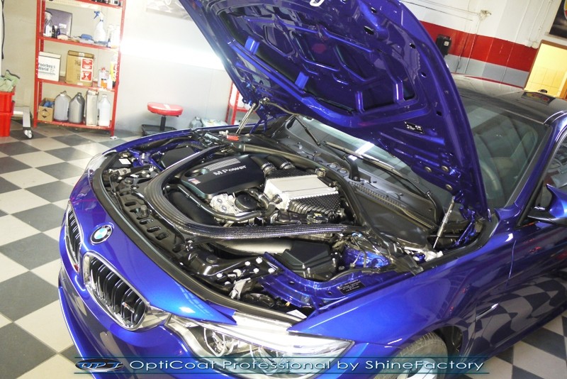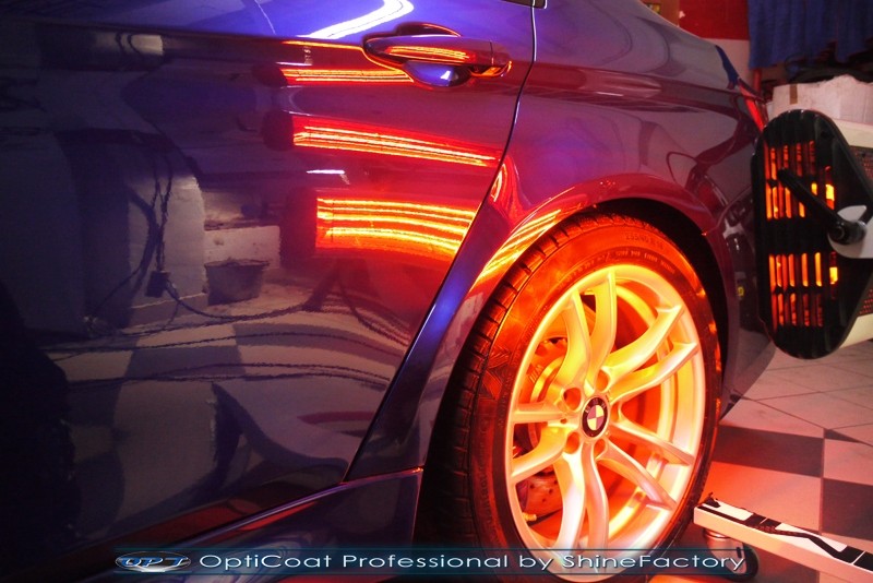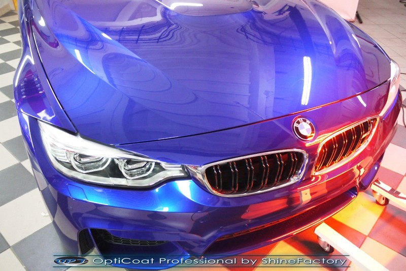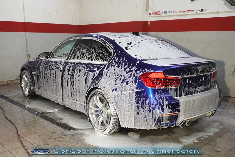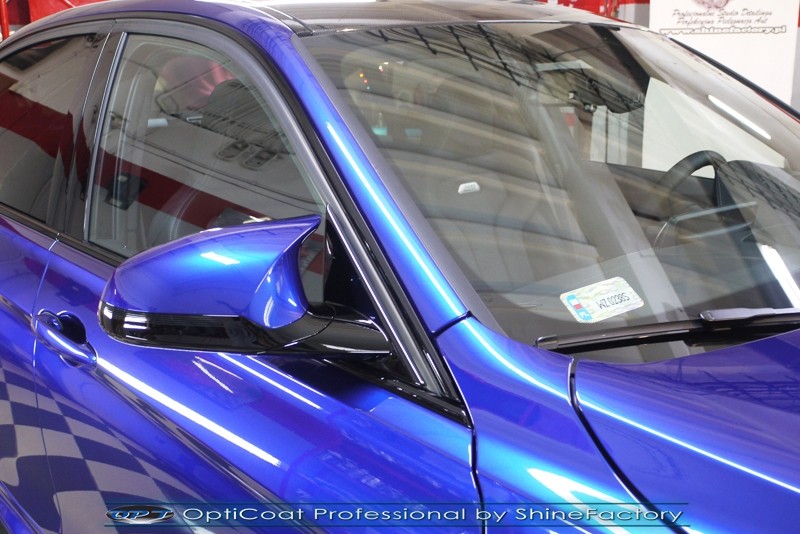Witamy Was ponownie! Pragniemy zaprosić do szerokiej fotorelacji z zabezpieczenia przepięknie skonfigurowanego nowego BMW serii M3 w mocno indywidualnym lakierze San Marino Blau, znanym z modelu M6. Wymagane było maksymalnie dobre zabezpieczenie każdego detalu auta w pakiecie NewShine. Zdecydowaliśmy się zabezpieczyć, każdy element auta najlepszymi powłokami z rynku, sam lakier testowaną w laboratoryjny sposób przez TUV powłoką ceramiczną OptiCoat Professional. Oczywiście najpierw auto musiało zostać w specjalistyczny sposób dokładnie oczyszczone, następnie koniecznością przed aplikacją tak zaawansowanego zabezpieczenia konieczne było skorygowanie niedoskonałości pozostawionych przez salon/fabrykę. Po korekcie, dokładnym przygotowaniu i odtłuszczeniu na całe auto zaaplikowaliśmy w skomplikowany natryskowy sposób powłokę ceramiczną 9H+ opartą na SiC OptiCoat Professional połączoną z powłoką GlossCoat zapewniając maksymalną grubość i efektywność działania na wiele lat. Oczywiście całe wnętrze zostało zabezpieczone różnymi kosmetykami w najdrobniejszym detalu wraz z zaimpregnowaniem delikatnych skór. Nie zapomnieliśmy, także o zabezpieczeniu nadkoli, wnętrza felg czy komory silnika. BMW po kilku dniach prac nabrało maksymalnego połysku i ekspozycji bogatego ziarna metaliku oraz co najważniejsze najlepszej ochrony co zapewni zminimalizowane brudzenie oraz banalne utrzymanie auta w perfekcyjnym stanie na wiele lat. Zapraszamy do szerokiej fotorelacji i zdjęć efektu końcowego! Film z efektu wizualnego- https://www.youtube.com/watch?v=V3IXBTiah8A