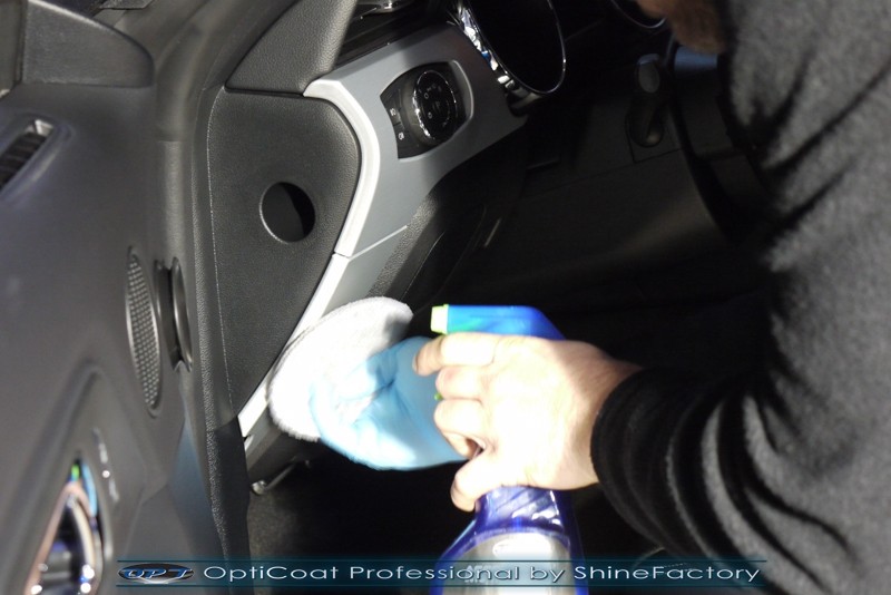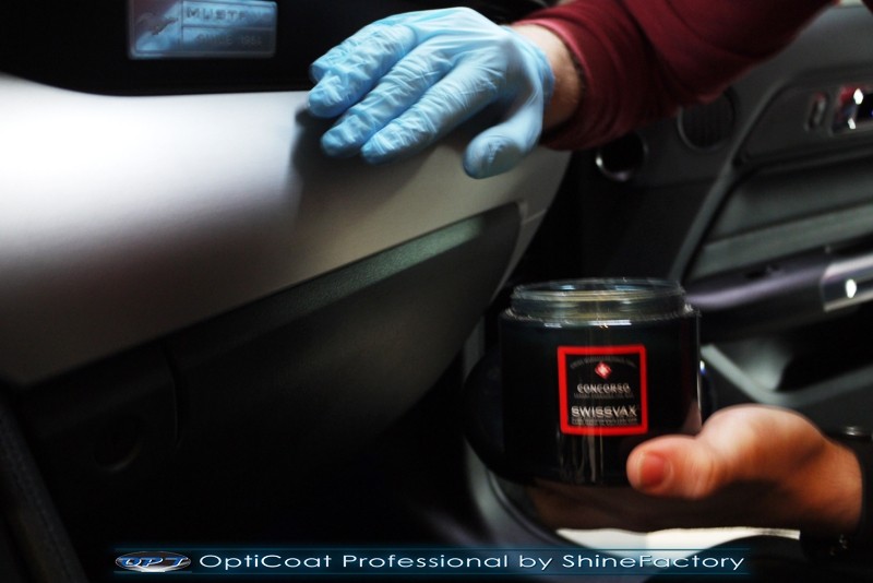 Dziś chcemy przedstawić relację z przykładowego idealnego zabezpieczenia nowego auta. Nowy Ford Mustang GT Cabrio, trafił do nas zaraz po wyjeździe z salonu, w celu jak najmocniejszego zabezpieczenia każdego elementu auta. Prace zaczęliśmy od detailingu nadkoli oraz wnętrza felg. Następnie całe auto zostało dokładnie oczyszczone z zabrudzeń oraz fabrycznych zabezpieczeń. Lakier ogólnie w bardzo dobrym stanie posiadał tylko miejscowe uszkodzenia, które delikatnie poprawiliśmy i mogliśmy spokojnie dokładnie odtłuścić lakier i przejść do aplikacji powłok na każdy element auta jak lakier, szyby, plastiki, felgi czy materiałowy dach. Na całe auto zaaplikowaliśmy w skomplikowany natryskowy sposób grubą warstwę kompozytu ceramicznego 9H+ opartego na SiC Optimum OptiCoat Professional połączoną z powłoką GlossCoat, która zapewniła maksymalny połysk i ochronę na wiele długich lat skutecznego działania. Po aplikacji, całe auto zostało wygrzane lampami IR w odpowiedniej temperaturze w celu utwardzenia powłok. Oczywiście zajęliśmy się także komorą 5 litrowego silnika V8 oraz wnętrzem auta, zaimpregnowaliśmy okalające całe wnętrze skóry, nawoskowaliśmy el. lakierowane oraz winylowe/plastikowe. Zapraszamy do bardzo ciekawej fotorelacji.