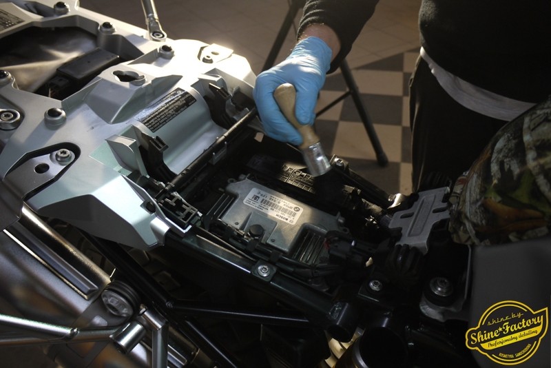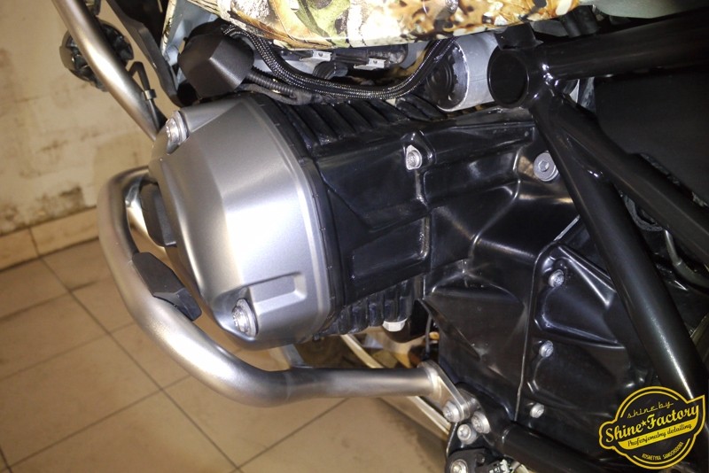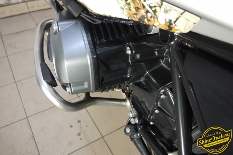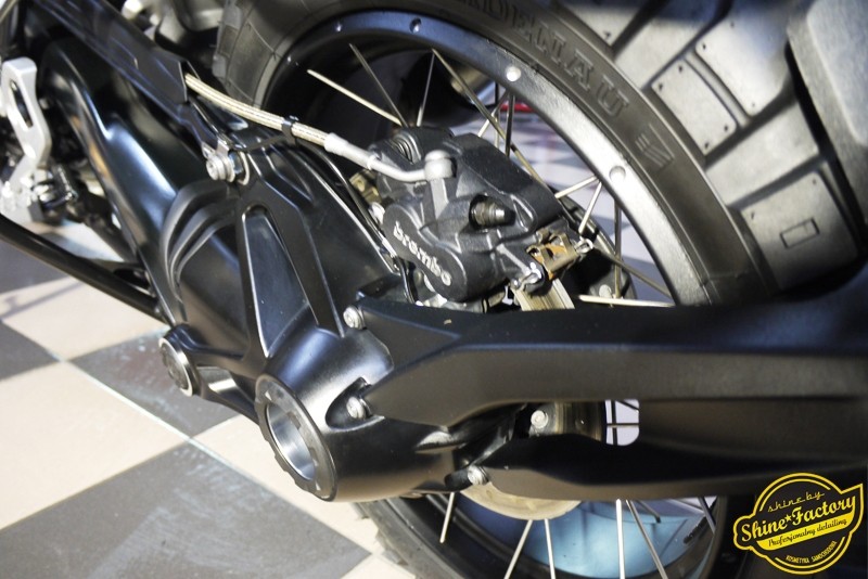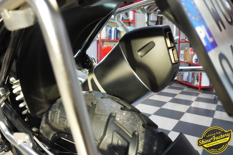 Motocykl BMW 1200 GS trafił do nas w celu dokładnego detailingu, usunięcia śladów i wżerów po niewłaściwym myciu i finalnie został zabezpieczony pakietem powłok ochronnych. Prace rozpoczęliśmy oczywiście od bardzo dokładnego oczyszczenia wszelkich elementów i detali motocykla. Następnie mozolnie usunęliśmy wszystkie wżery z elementów lakierowanych oraz aluminiowych. Po dokładnym odświeżeniu każdego detalu zaaplikowaliśmy pakiet powłok kwarcowych/ ceramicznych, dzięki czemu nadaliśmy najlepszą możliwą ochronę przed warunkami atmosferycznymi i drogowymi. Teraz mycie i utrzymywanie motocykla w idealnym stanie będzie maksymalnie proste. Zapraszamy do pełnej fotorelacji ze zdjęciami z prac oraz efektu końcowego.