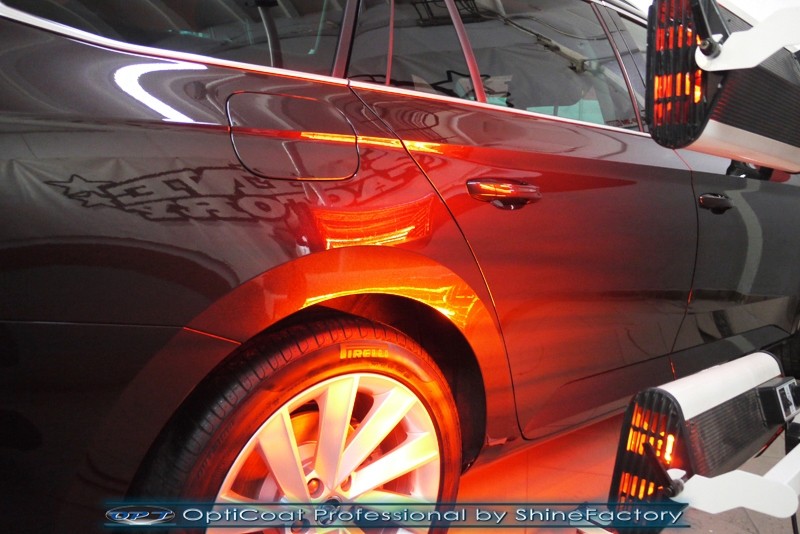 Witamy. Tym razem chcemy przedstawić kilka zdjęć z zabezpieczenia nowego auta pakietem powłok ochronnych. Prace nad Skodą zaczęliśmy oczywiście o dokładnego oczyszczenia z naleciałości i zabezpieczeń fabrycznych, następnie przygotowaliśmy powierzchnię lakieru pod aplikację ceramiki delikatnie polerując go oraz bardzo mocno odtłuszczając. Kolejną czynnością było zaaplikowanie pakietu powłok na auto, zabezpieczyliśmy specjalną powłoką hydrofobową szyby, felgi, el. nielakierowane oraz oczywiście lakier powłoką OptiCoat Professional certyfikowaną przez TUV. Dzięki temu spotęgowaliśmy połysk lakieru oraz nadaliśmy mu wieloletnią ochroną najwyższej jakości.