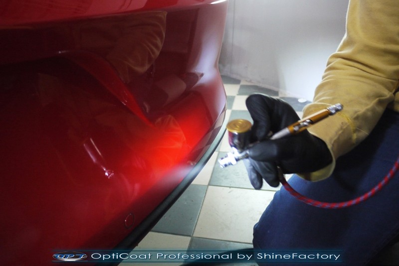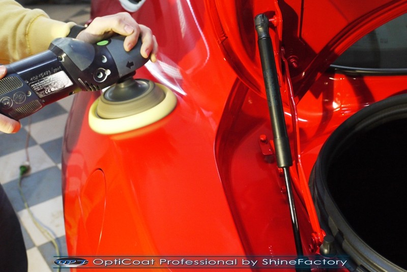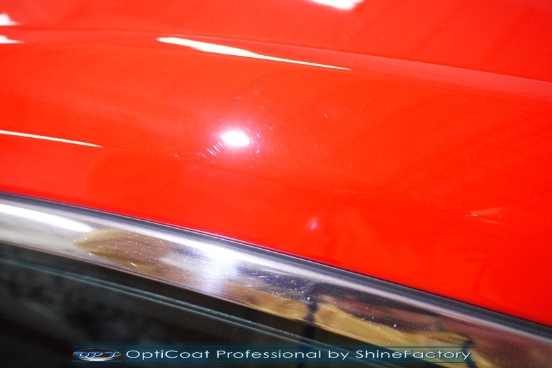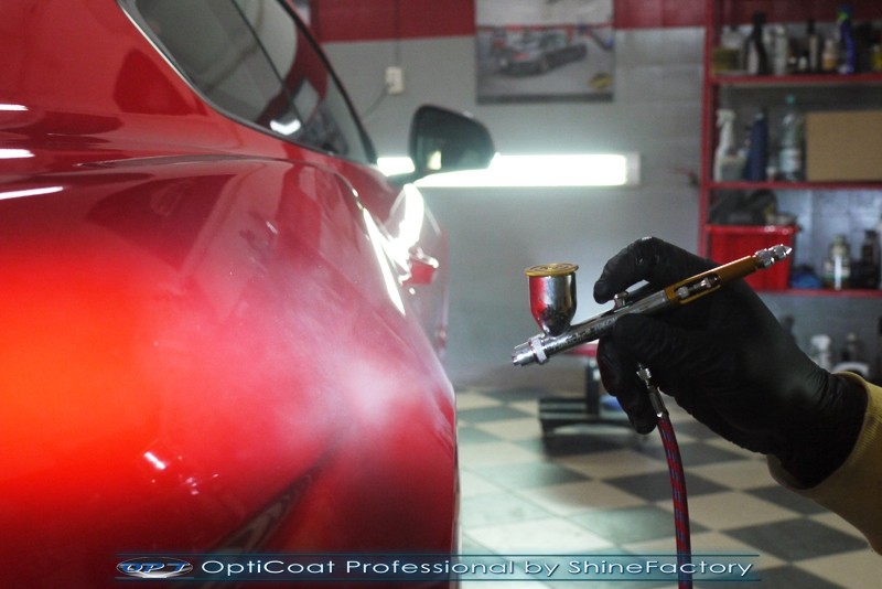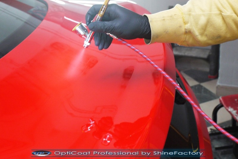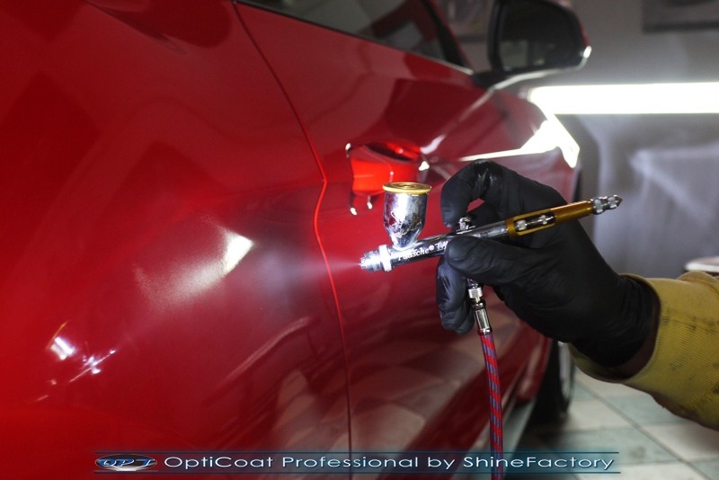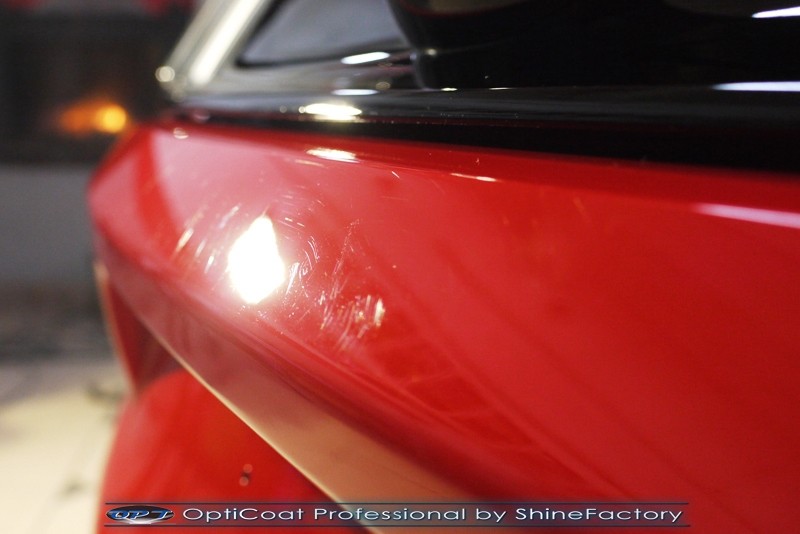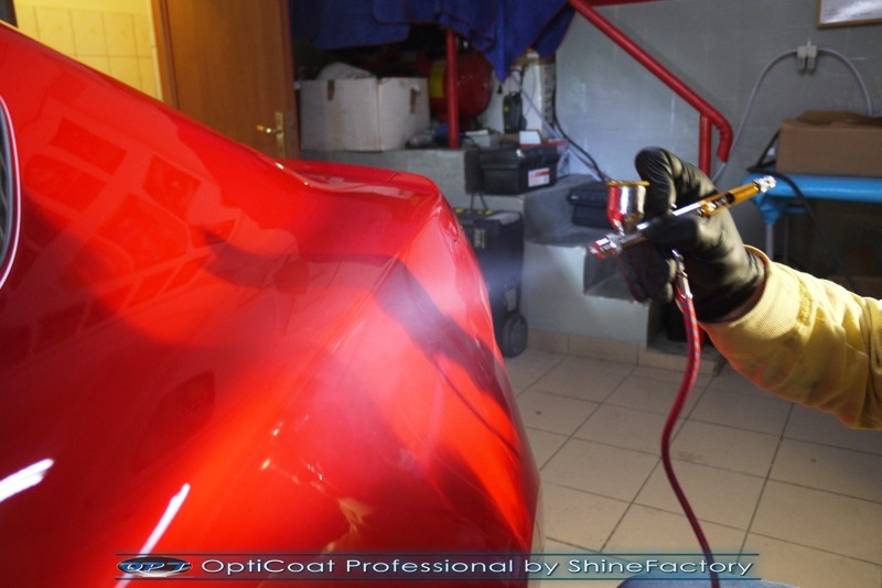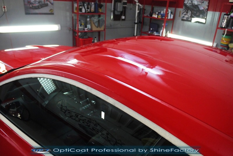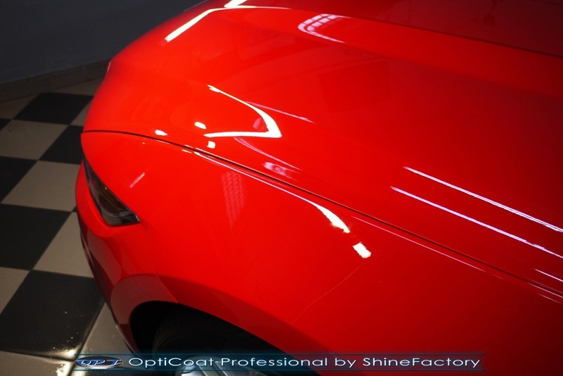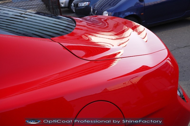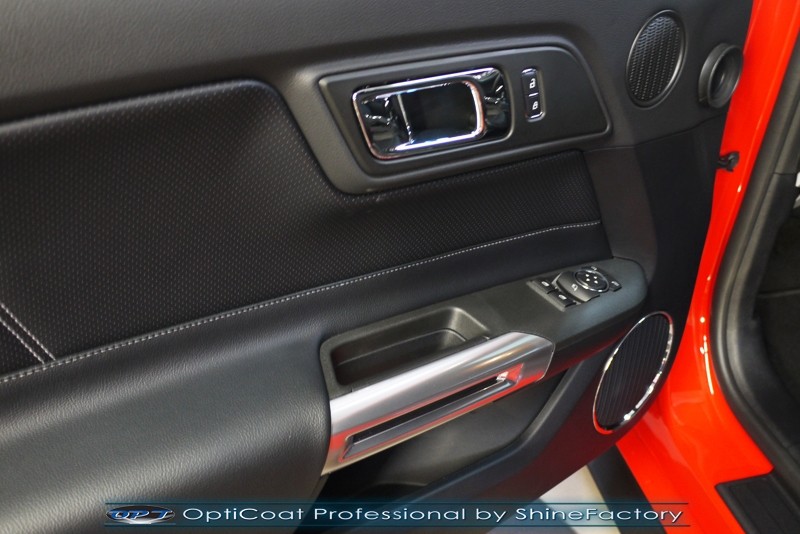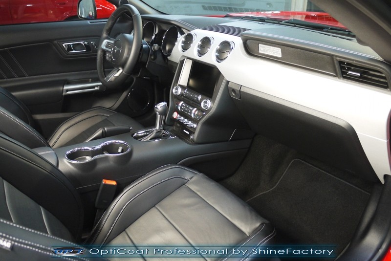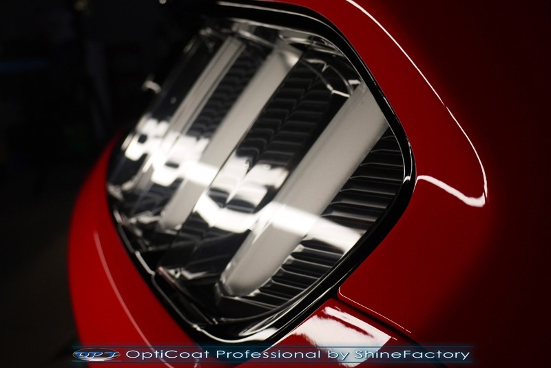 Witamy! Dziś zapraszamy do fotorelacji z zabezpieczenia nowego Forda Mustanga, który został nam powierzony przez naszego stałego klienta w celu jak najgrubszego i jak najmocniejszego możliwego zabezpieczenia powłoką ceramiczną. Zdecydowaliśmy się zabezpieczyć każdy element auta najlepszymi powłokami z rynku, sam lakier, aby uzyskać jak najgrubszą warstwę w natryskowy sposób, testowaną w laboratoryjnie przez TUV ceramiką OptiCoat Professional. Oczywiście najpierw auto musiało zostać w specjalistyczny sposób dokładnie oczyszczone, następnie koniecznością przed aplikacją tak zaawansowanego zabezpieczenia konieczne było skorygowanie niedoskonałości pozostawionych w kilku miejscach przez salon/fabrykę. Po dokładnym przygotowaniu i odtłuszczeniu oraz precyzyjnym natryskowym zaaplikowaniu powłoki OC PRO lakier pokryliśmy dodatkową warstwą GlossCoat, która zapewniła maksymalny połysk i śliskość lakieru na wiele lat. Oczywiście całe wnętrze zostało zabezpieczone różnymi kosmetykami w najdrobniejszym detalu wraz z zaimpregnowaniem delikatnych skór. Auto po kilku dniach prac nabrało połysku i maksymalnie krwistej czerwieni oraz co najważniejsze najlepszej ochrony co zapewni zminimalizowane brudzenie oraz banalne utrzymanie auta w perfekcyjnym stanie na wiele lat. Zapraszamy do szerokiej fotorelacji i zdjęć efektu końcowego!