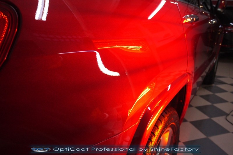 Witamy, tym razem chcemy pokazać relację z zabezpieczenia pakietem powłok niewątpliwie sporego auta jakim jest Jeep Grand Cherokee. Właściciel chciał zabezpieczyć wszystkie zewnętrzne elementy rocznego auta pakietem powłok w celu idealnej prezentacji i ułatwionego utrzymania w idealnym stanie. Oczywiście zaczęliśmy od kilkugodzinnego dokładnego i dogłębnego oczyszczenia nadwozia. Następnie musieliśmy poprawić lakier z niedoskonałości w celu uzyskania jak najlepszego efektu wizualnego i powierzchni pod ceramikę. Finalnie zaaplikowaliśmy na całe auto (felgi, szyby, chromy, klosze lamp, el. niealkierwoane itp) pakiet powłok ochronnych, na sam lakier wyjątkową powłokę 9H+ Optimum OptiCoat Professional potwierdzoną testami TUV, która na końcu została utwardzona w odpowiedniej temp. lampami IR. Po kilkudziesięciu godzinach pracy auto nabrało perfekcyjnego wyglądu, głębokiej połyskliwej metalicznej czerwieni oraz ceramicznej ochrony na bardzo długi czas. Zapraszamy do fotorelacji!