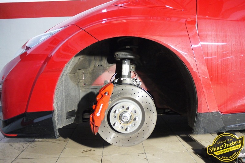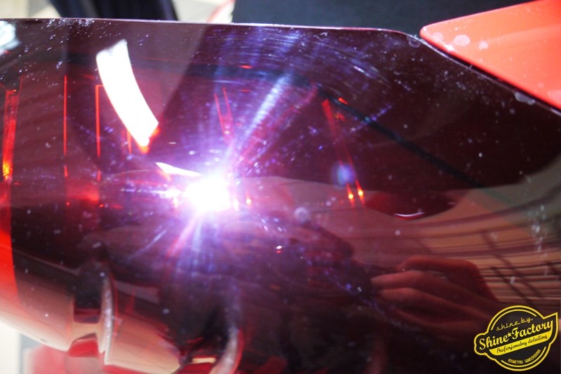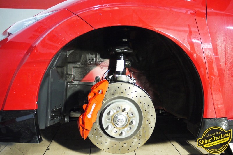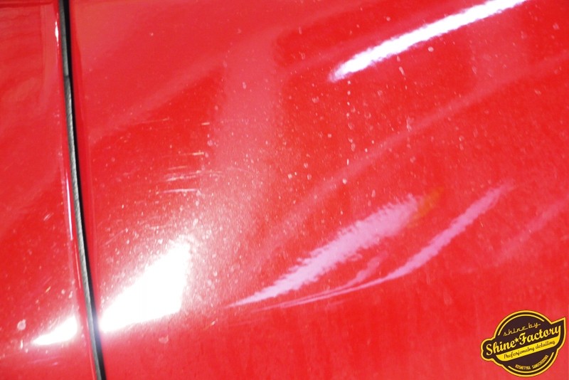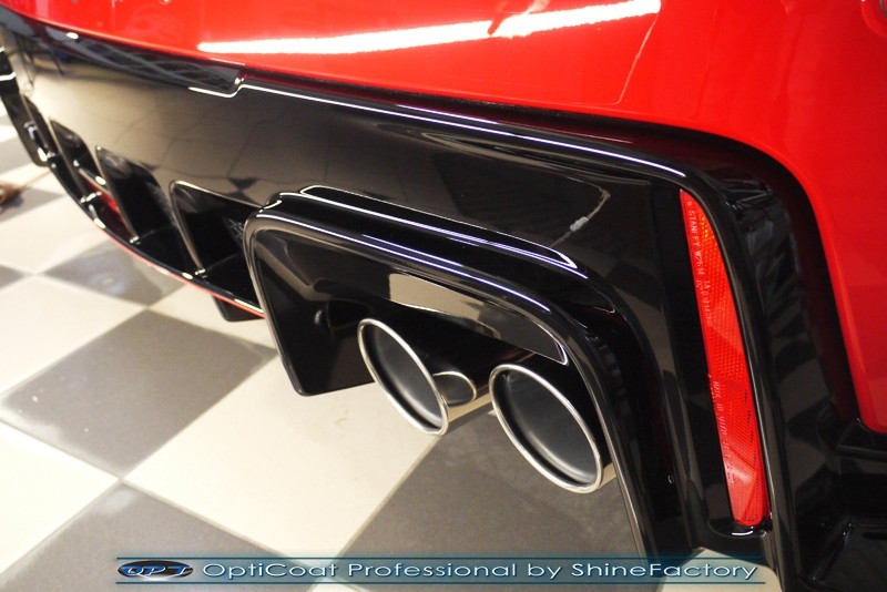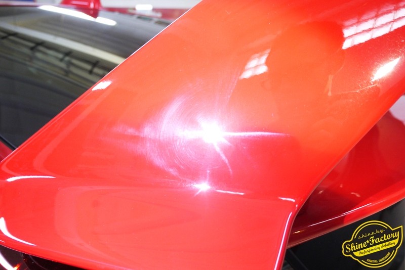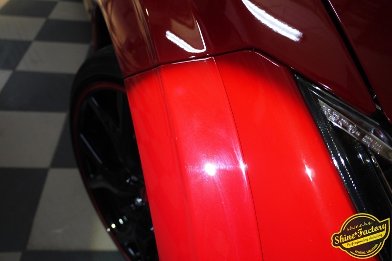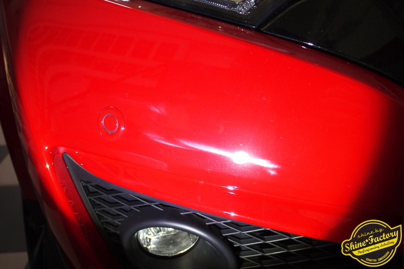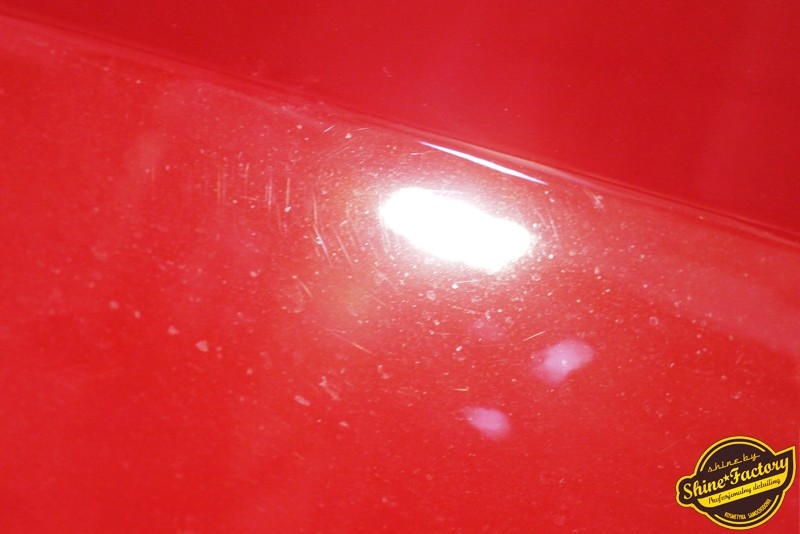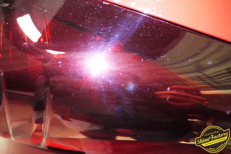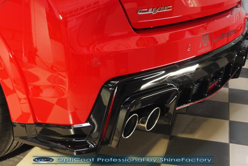 Witamy Was! Zapraszamy do relacji z zabezpieczenia febrycznie nowej, wściekle czerwonej Hondy Civic Typ-R! Auto trafiło do nas w celu szerokiego pakietu zabezpieczenia pakietem powłok ceramicznych. Oczywiście prace rozpoczęliśmy od ściągnięcia z auta kół i zajęcia się felgami oraz nadkolami, następnie przeszliśmy od dokładnego i dogłębnego oczyszczenia oraz glinkowania lakieru. Niestety szybko rzuciła nam się w oczy masa niedoskonałości lakieru, a przede wszystkim matowe placki na całym nadwoziu po zabiegach fabrycznych, musieliśmy go koniecznie poprawić przed aplikacją powłoki ceramicznej. Finalnie zastosowaliśmy wyjątkową powłokę 9H+ Optimum OptiCoat Professional certyfikowaną prze TUV, która na końcu została utwardzona w odpowiedniej temp. lampami IR. Oczywiście zajęliśmy się, także zabezpieczeniem pakietem powłok wszelkich innych elementów jak szyby (tytanową powłoką hydrofobową), felgi, lampy, elementy nielakierowane powłoką DLUX (która odżywiła i nadała efektu hydrofobowego plastikom) czy nawet końcówki wydechu, oczywiście po przygotowaniu i możliwej renowacji. Zajęliśmy się, także komorą 310 konnego silnika oraz całym wnętrzem aby na długo było świeże i matowe. Po kilkudziesięciu godzinach pracy auto nabrało perfekcyjnego wyglądu, krwistej połyskliwej czerwieni oraz ceramicznej ochrony na bardzo długi czas. Zapraszamy do szerokiej fotorelacji!