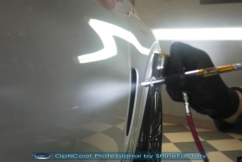 Dziś zapraszamy do obszernej fotorelacji z prac nad perłowo białym BMW X5 w bardzo mocnej wersji M50d. Po kilkudziesięciu tysiącach km przebiegu, właściciel powierzył nam auto w celu doprowadzenia do ponownego salonowego stanu oraz możliwie najlepszego zabezpieczenia ceramicznego. BMW przeszło nasz najszerszy pakiet prac dlatego też zaczęliśmy od detailngu felg i nadkoli oraz dogłębnego oczyszczenia lakieru z mnóstwa naleciałości jak smoła, soki z drzew, opiłki metaliczne itp itd. Następnie przystąpiliśmy do najbardziej czasochłonnego i najważniejszego etapu prac czyli korekty lakieru, usunęliśmy wszelkie niedoskonałości, mikrorysy i zmatowienie, po kilku dniach prac nabrał idealnego wyglądu oraz był gotowy do zabezpieczanie powłoką ceramiczną. Finalnie zastosowaliśmy grubą warstwę powłoki 9H+ Optimum OptiCoat Professional potwierdzoną testami TUV zaaplikowaną w natryskowy sposób, pokrywając ją dla maksymalnego efektu wizualnego powłoką GlossCoat. Oczywiście zajęliśmy się także zabezpieczeniem pakietem powłok wszelkich innych elementów jak szyby, felgi, elementy nielakierowane, klosze lamp itp itd. Nie zapomnieliśmy także o dokładnym detailingu wszelkich elementów wnętrza (głownie czyszczenie i impregnacja jasnych skór, pranie dywanów), bagażnika oraz całej komory silnika. Po kilkudziesięciu godzinach pracy kilku osób auto nabrało perfekcyjnego wyglądu oraz najlepszej z możliwej ochrony co zminimalizuje brudzenie się auta oraz uczyni mycie banalnie łatwym. Zapraszamy do bardzo szerokiej fotorelacji!