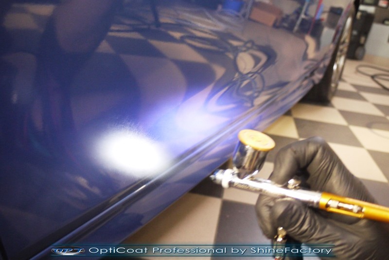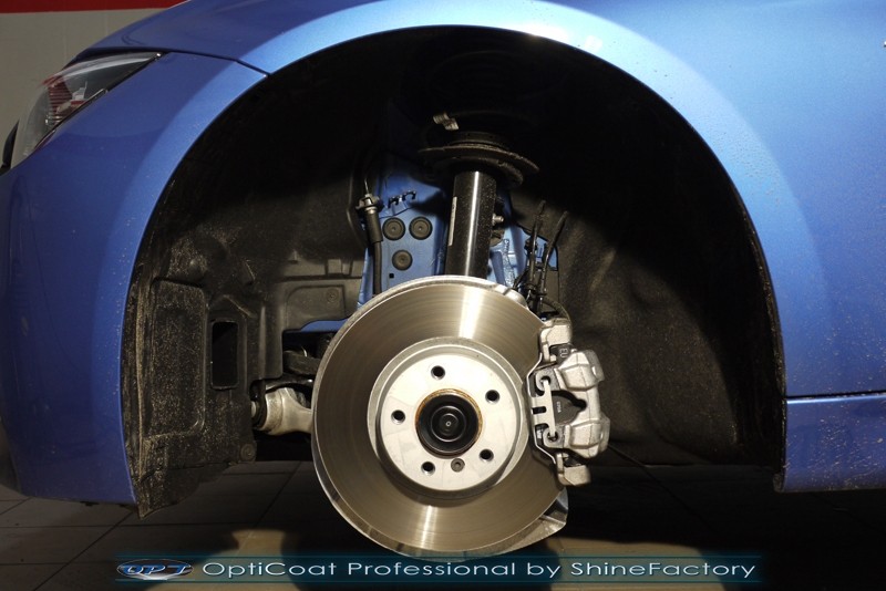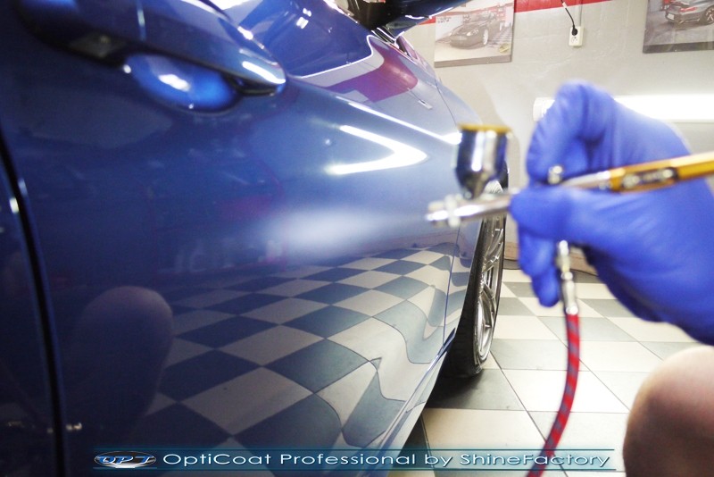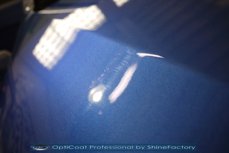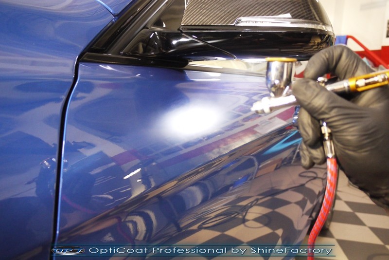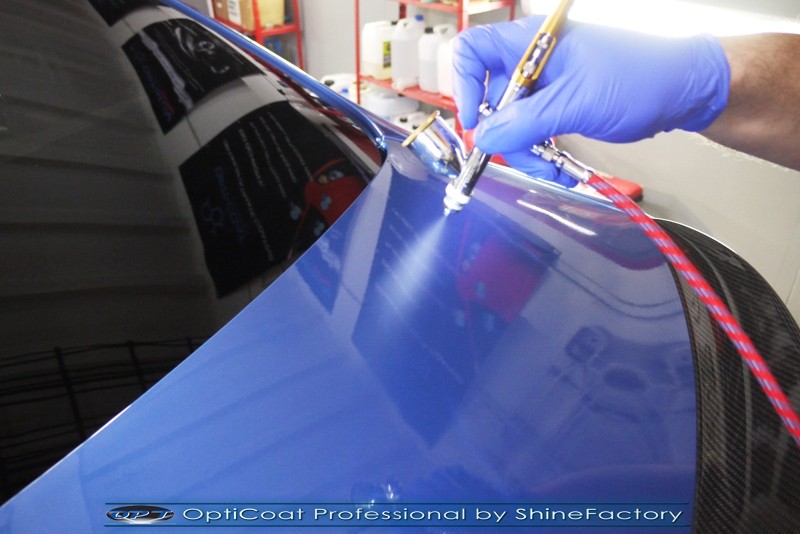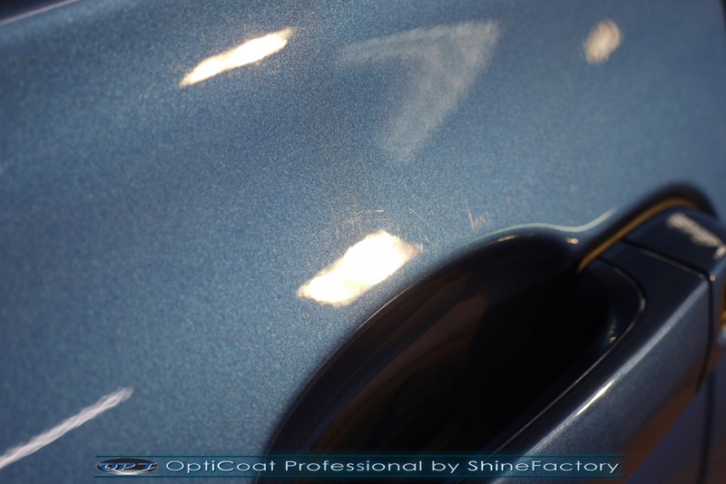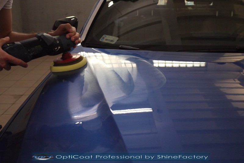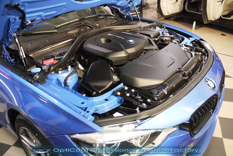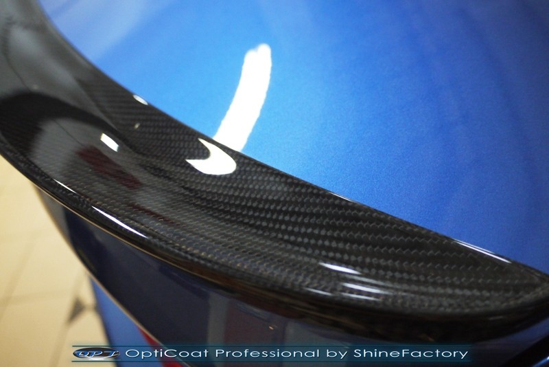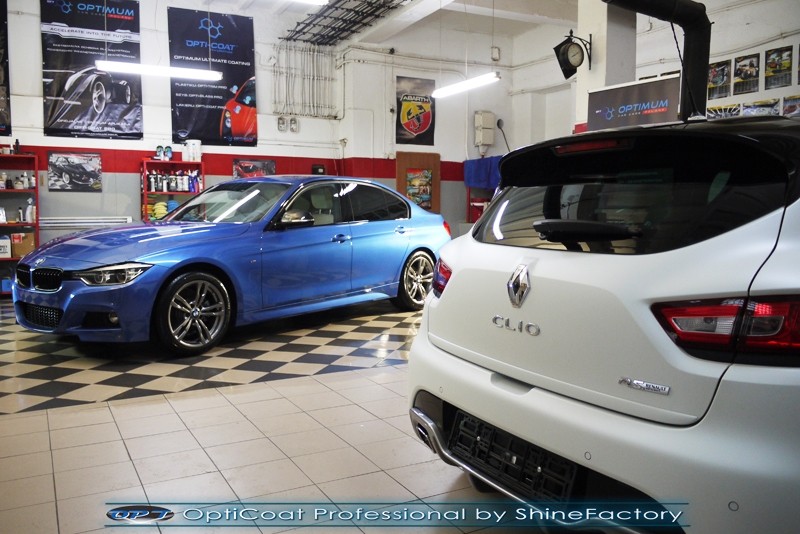 Dziś zapraszamy do relacji z zabezpieczenia fabrycznie nowego BMW serii 3 w charakterystycznym pięknym lakierze Estoril Blue. Auto trafiło do nas w celu szerokiego pakietu zabezpieczenia pakietem powłok ceramicznych. Oczywiście prace rozpoczęliśmy od ściągnięcia z auta kół i zajęcia się felgami oraz nadkolami, następnie przeszliśmy do dokładnego i dogłębnego oczyszczenia oraz glinkowania lakieru. Następnie poprawiliśmy niedoskonałości pofabryczne oraz zaaplikowaliśmy w natryskowy sposób grubą warstwę powłoki 9H+ Optimum OptiCoat Professional potwierdzoną testami TUV, pokrywając ją dla maksymalnego efektu wizualnego powłoką GlossCoat, która na końcu została utwardzona w odpowiedniej temp. lampami IR. Oczywiście zajęliśmy się, także zabezpieczeniem pakietem powłok wszelkich innych elementów jak szyby (tytanową powłoką hydrofobową), felgi, lampy, elementy nielakierowane powłoką DLUX czy nawet końcówki wydechu. Zajęliśmy się, także komorą silnika oraz całym wnętrzem skupiając się na impregnacji jasnych skór aby na długo były czyste i matowe. Po kilkudziesięciu godzinach pracy auto nabrało perfekcyjnego wyglądu, głębi koloru oraz co najważniejsze najmocniejszej ceramicznej ochrony na bardzo długi czas. Zapraszamy do szerokiej fotorelacji!
