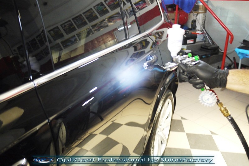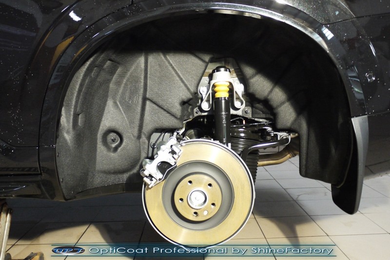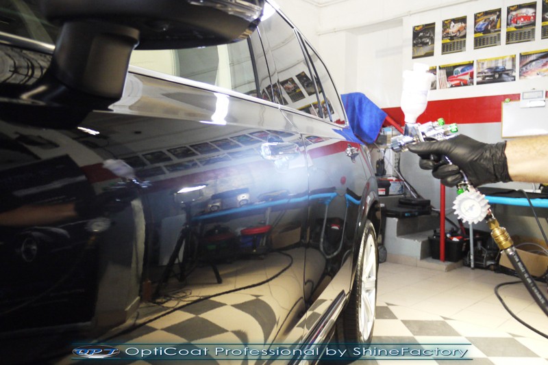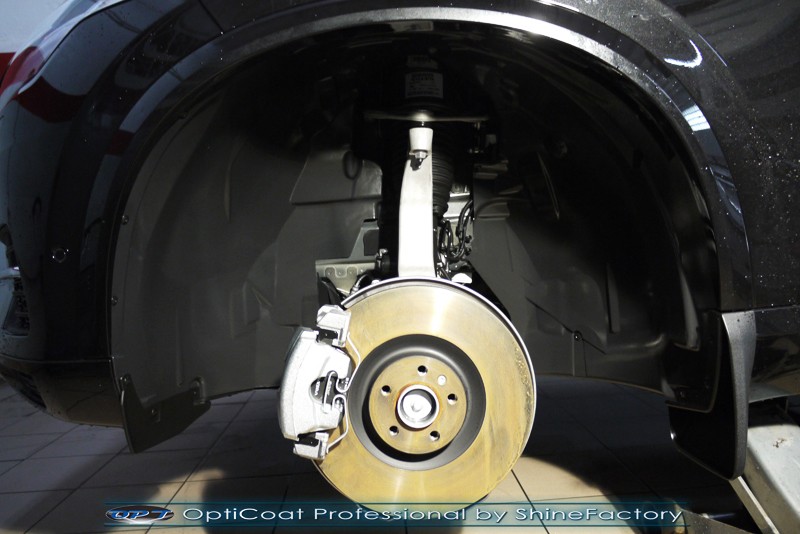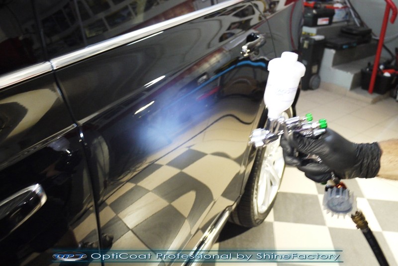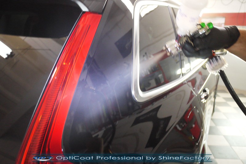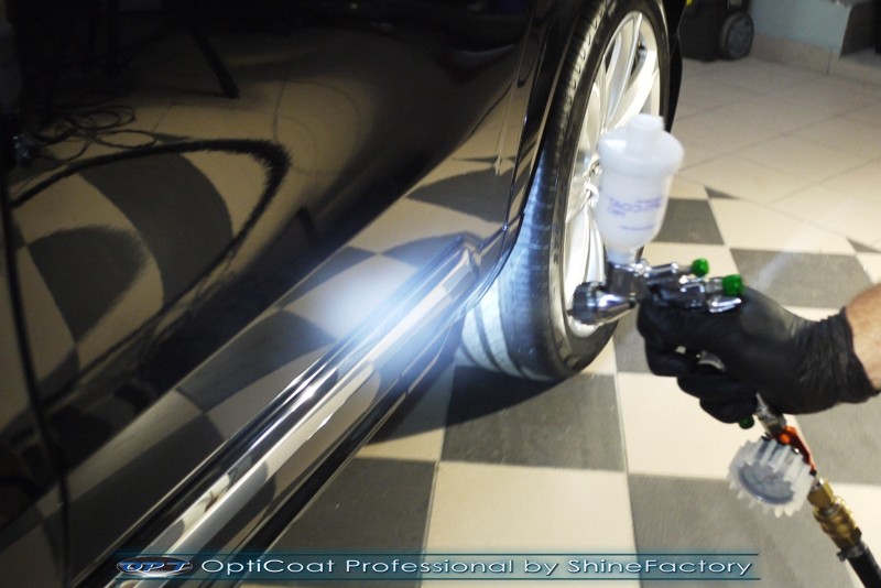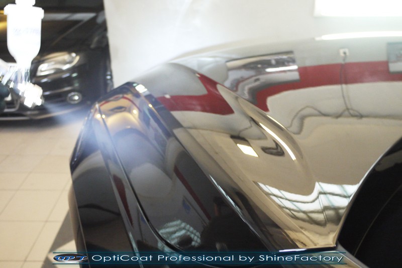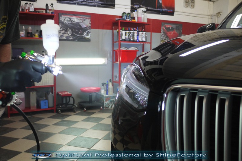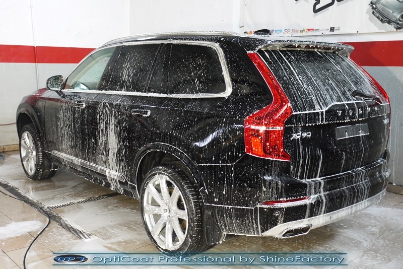 Dziś chcemy przedstawić relację z przykładowego idealnego zabezpieczenia nowego auta. Nowe Volvo XC90 w pięknym metalicznym czarnym lakierze zostało nam powierzone zaraz po wyjeździe z salonu w celu jak najmocniejszego zabezpieczenia każdego elementu auta. Prace zaczęliśmy od detailingu nadkoli oraz wnętrza felg, zabezpieczyliśmy powłokami zaciski hamulcowe oraz felgi od wewnątrz. Następnie całe auto zostało dokładnie oczyszczone z zabrudzeń oraz fabrycznych zabezpieczeń. Lakier ogólnie posiadający miejscowe uszkodzenia, został poddany lekkiej korekcie oraz dokładnie odtłuszczony. Następnie przeszliśmy do aplikacji powłok na każdy element auta jak lakier, szyby, plastiki, felgi itp itd. Najważniejsze, na sam lakier zaaplikowaliśmy w skomplikowany natryskowy sposób maksymalnie grubą warstwę kompozytu ceramicznego (100% powłoki na aucie) 9H+ opartego na SiC Optimum OptiCoat Professional połączoną z powłoką GlossCoat, która zapewniła maksymalny połysk i ochronę na bardzo długi czas. Po aplikacji, całe auto zostało wygrzane lampami IR w odpowiedniej temperaturze w celu utwardzenia powłok. Oczywiście zajęliśmy się także komorą silnika oraz wnętrzem auta, które zabezpieczyliśmy kosmetykami z najwyższej półki a jasne skóry porządnie zaimpregnowaliśmy. Zapraszamy do ciekawej fotorelacji.