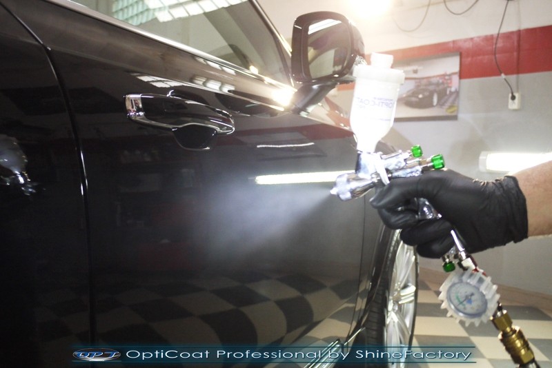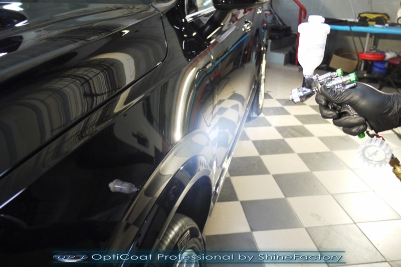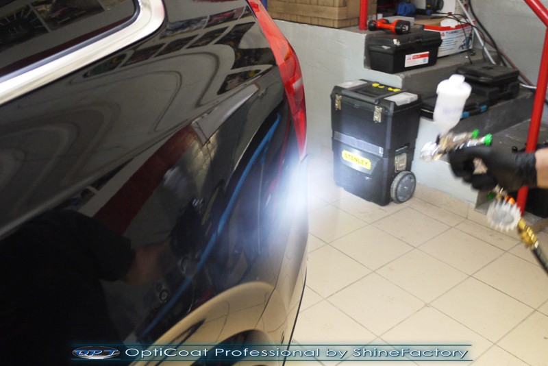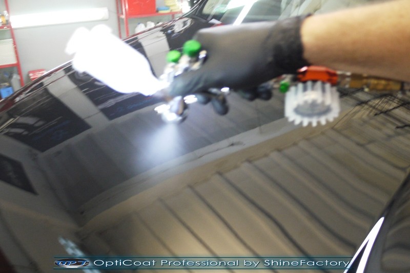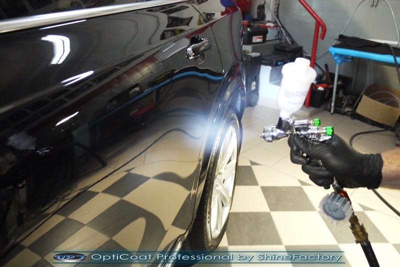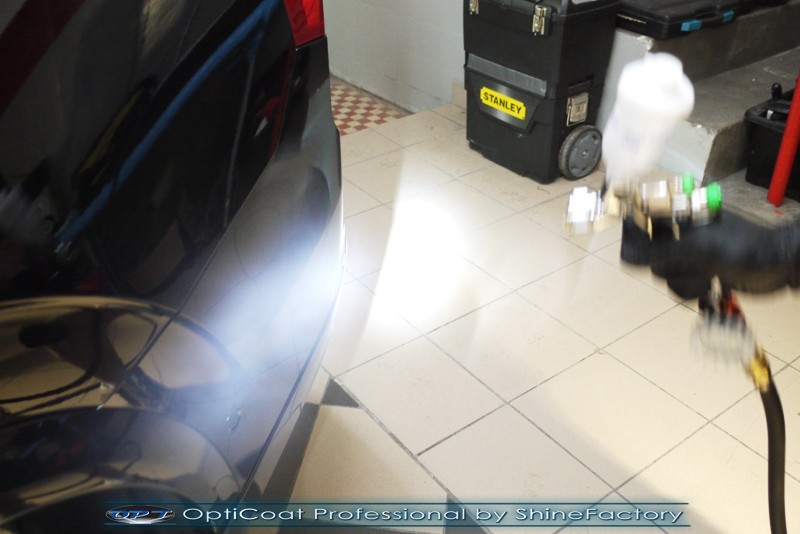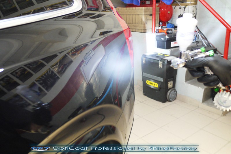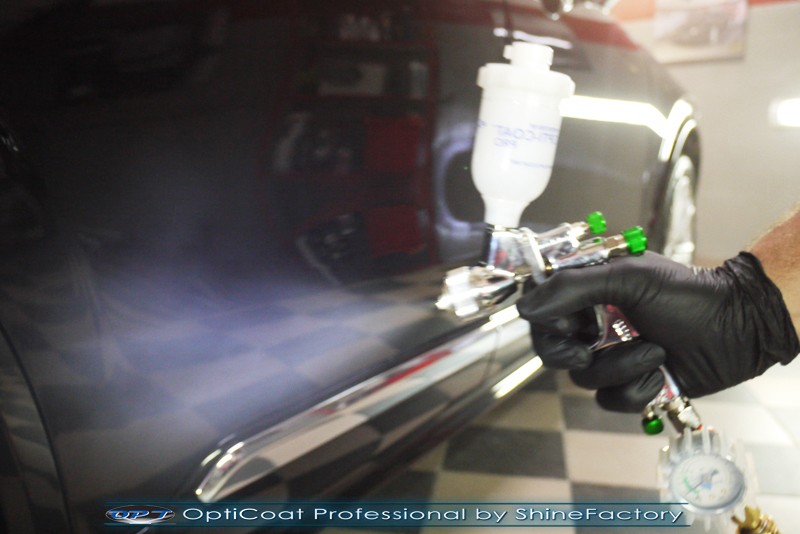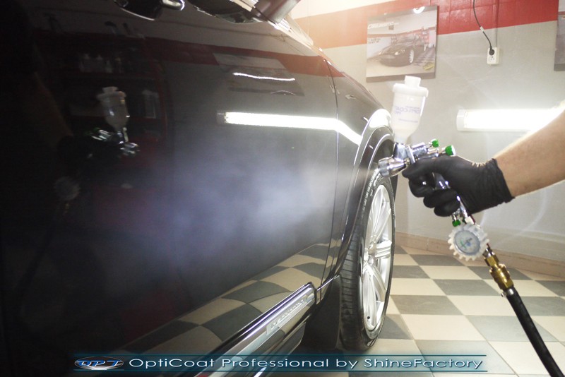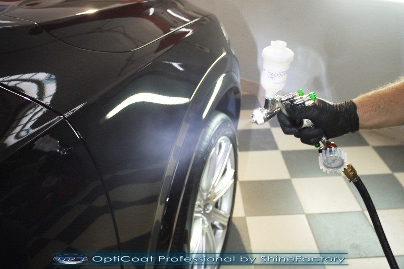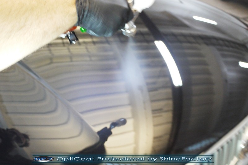 Dziś chcemy przedstawić relację z przykładowego idealnego zabezpieczenia nowego auta. Nowe Volvo XC90 w pięknym metalicznym czarnym lakierze zostało nam powierzone zaraz po wyjeździe z salonu w celu jak najmocniejszego zabezpieczenia każdego elementu auta. Prace zaczęliśmy od detailingu nadkoli oraz wnętrza felg, zabezpieczyliśmy powłokami zaciski hamulcowe oraz felgi od wewnątrz. Następnie całe auto zostało dokładnie oczyszczone z zabrudzeń oraz fabrycznych zabezpieczeń. Lakier ogólnie posiadający miejscowe uszkodzenia, został poddany lekkiej korekcie oraz dokładnie odtłuszczony. Następnie przeszliśmy do aplikacji powłok na każdy element auta jak lakier, szyby, plastiki, felgi itp itd. Najważniejsze, na sam lakier zaaplikowaliśmy w skomplikowany natryskowy sposób maksymalnie grubą warstwę kompozytu ceramicznego (100% powłoki na aucie) 9H+ opartego na SiC Optimum OptiCoat Professional połączoną z powłoką GlossCoat, która zapewniła maksymalny połysk i ochronę na bardzo długi czas. Po aplikacji, całe auto zostało wygrzane lampami IR w odpowiedniej temperaturze w celu utwardzenia powłok. Oczywiście zajęliśmy się także komorą silnika oraz wnętrzem auta, które zabezpieczyliśmy kosmetykami z najwyższej półki a jasne skóry porządnie zaimpregnowaliśmy. Zapraszamy do ciekawej fotorelacji.
